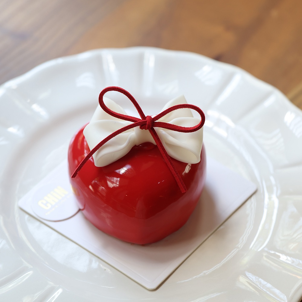 开心果杏桃慕斯,浓郁开心果芝士,自制开心果酱,杏桃酱,可爱蝴蝶结🎀装饰。