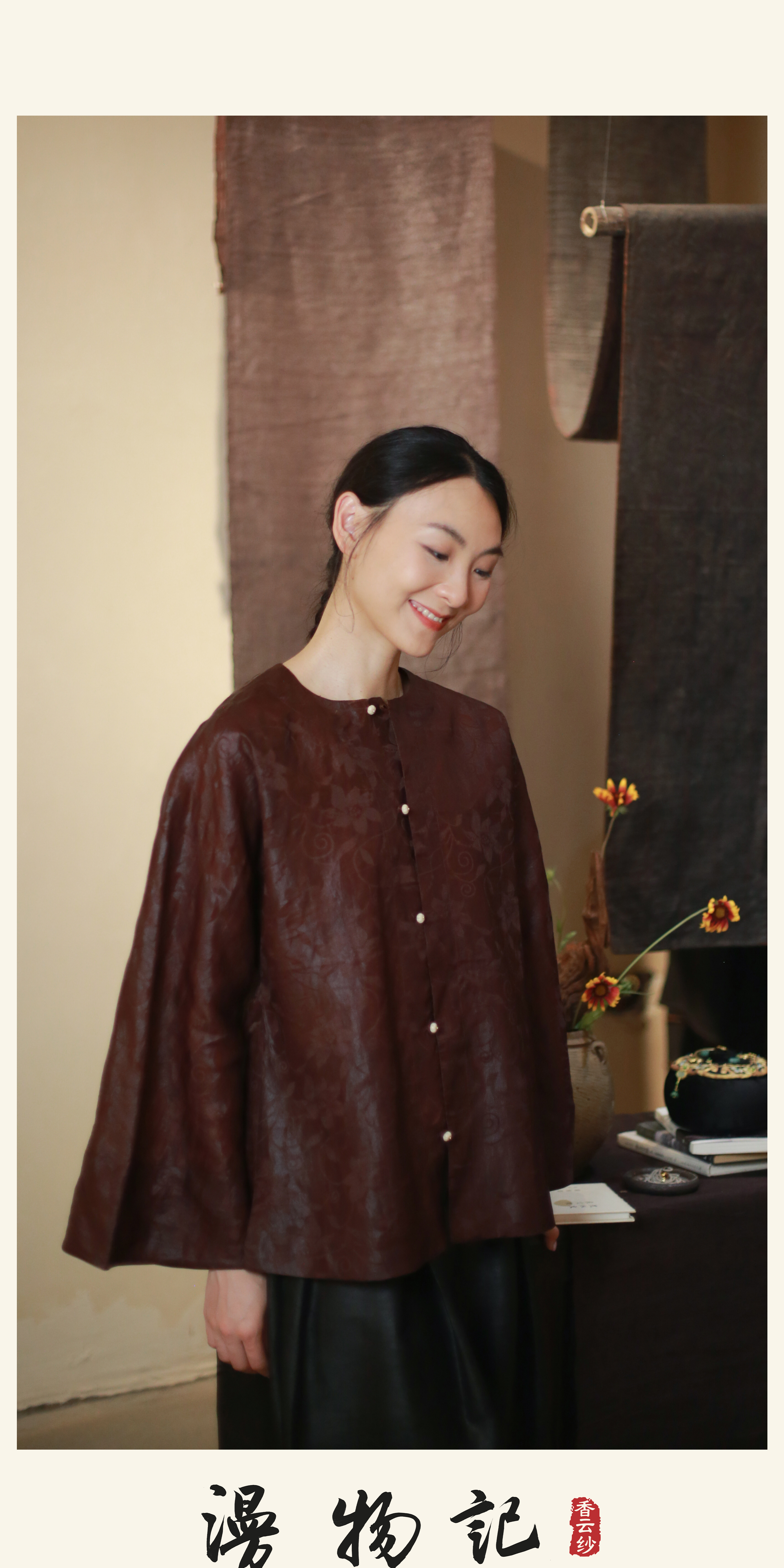 漫物记四经绞罗红云纱圆领斜襟祥云扣袍子xys-096