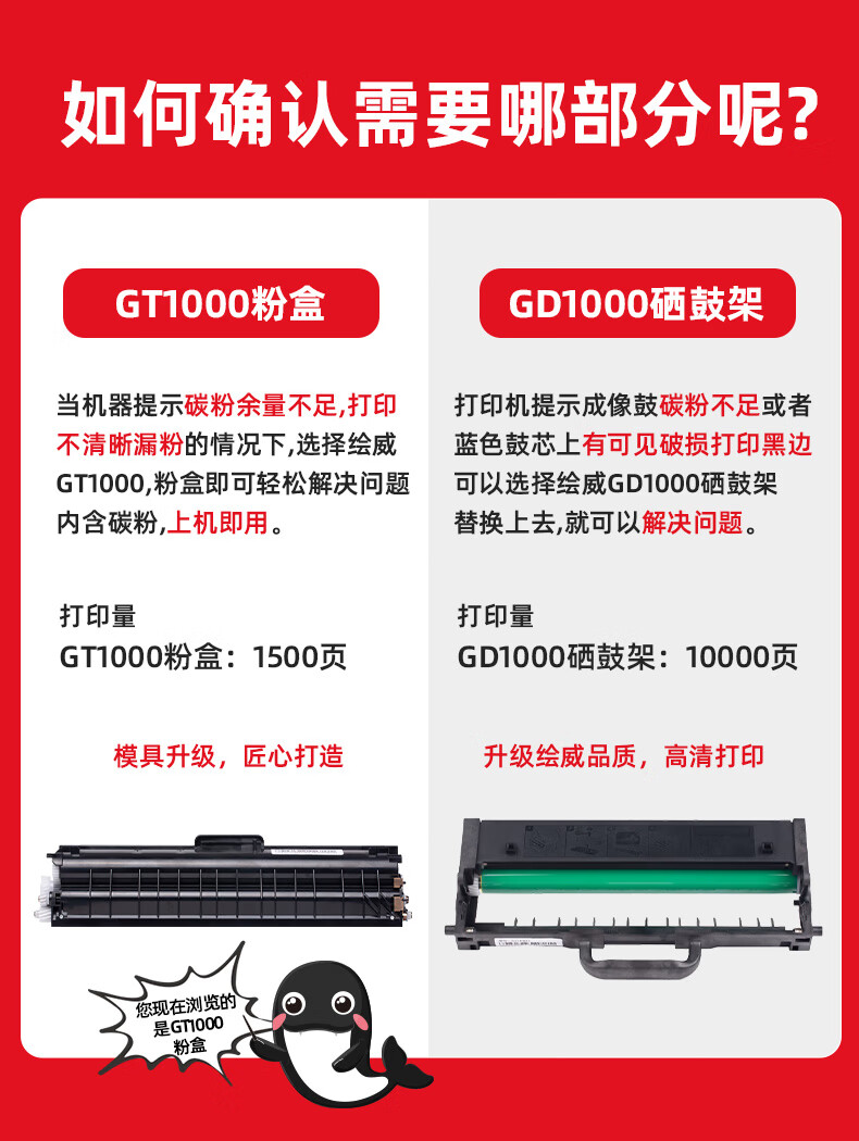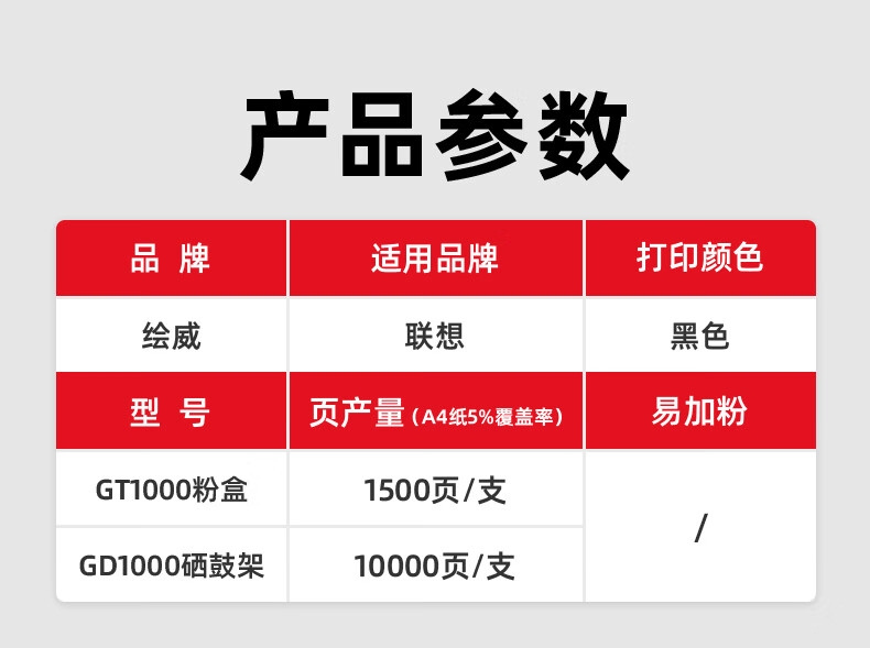 绘威 GT1000易加粉粉盒、GD1000硒鼓架、GT1000碳粉 适用联想/Lenovo M200DW/M260DW 至像激光多功能一体机