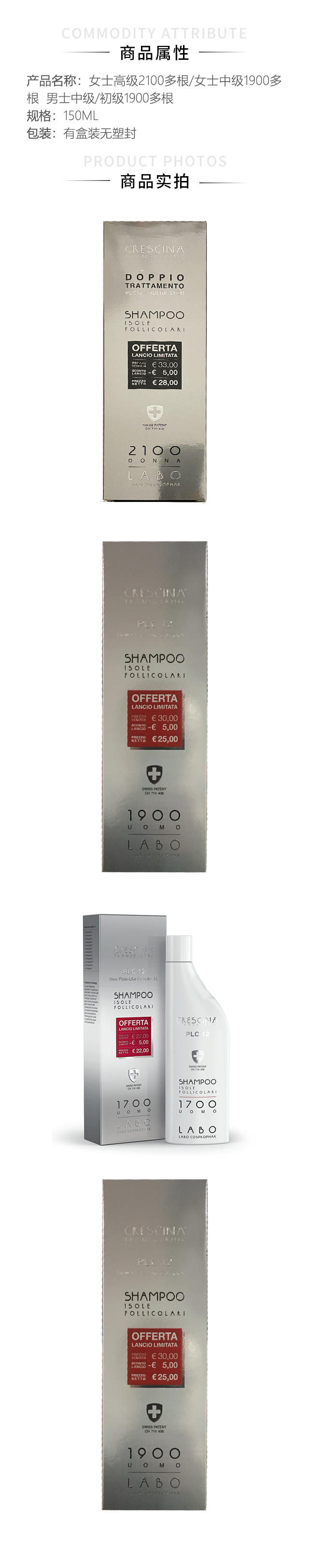 【新品】LABO防脱生发洗发水 女士高级2100多根/女士中级1900多根 男士中级1900多根/初级1700多根 150ml(预售45天,欧洲直发)