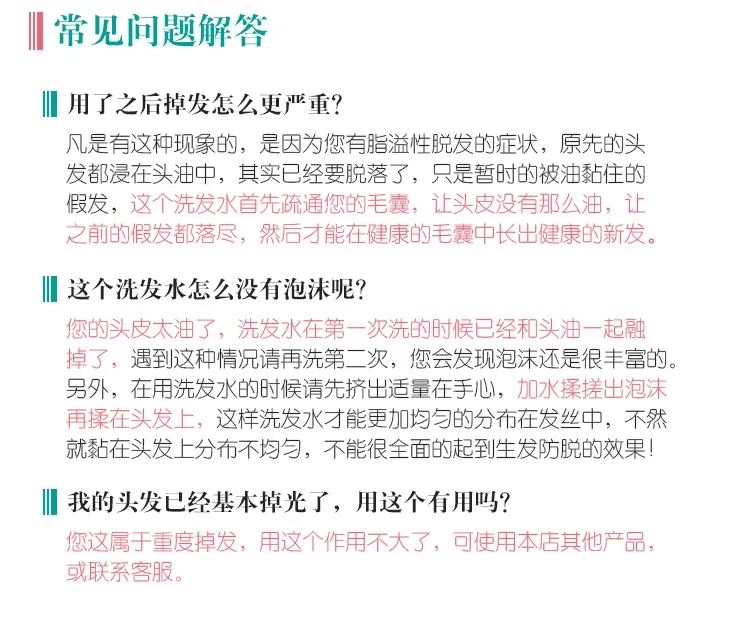 洗发水分男女款,根据掉发程度分不同段数浓度: