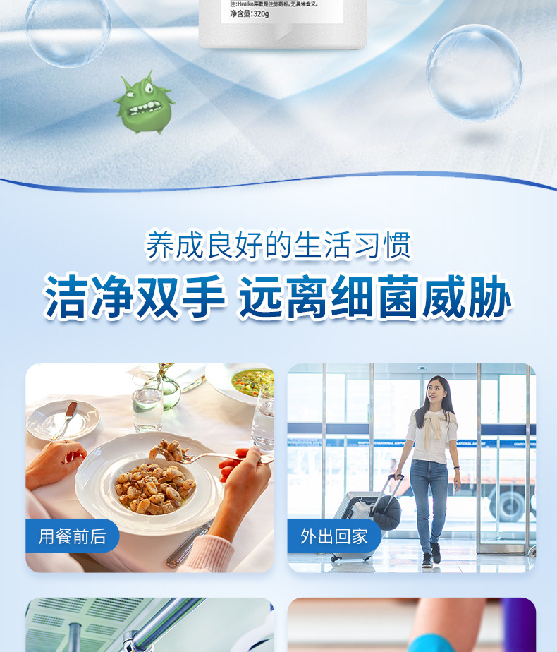 隆力奇泡沫洗手液淡雅白茶香持久留香320ml透明色洁净酒店民宿