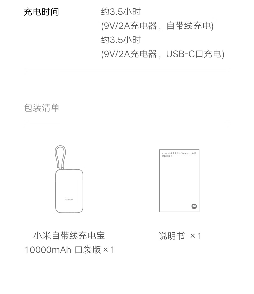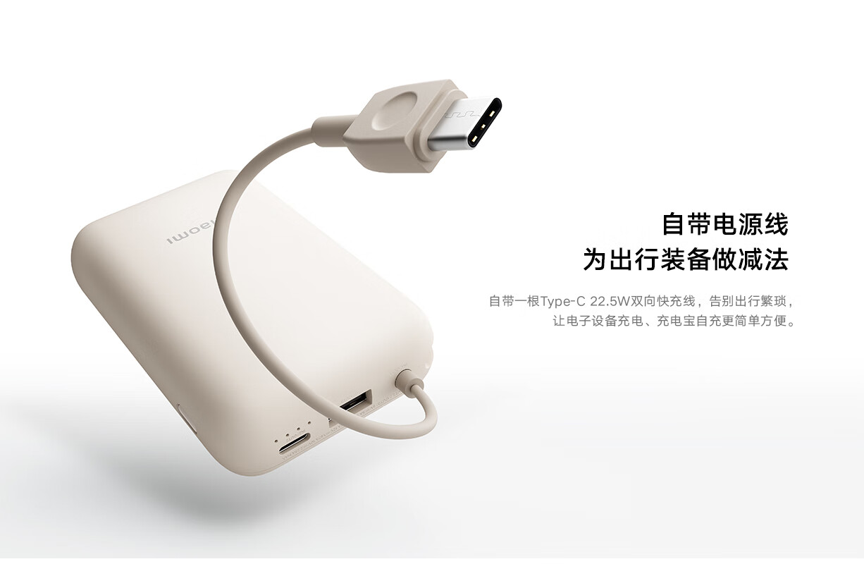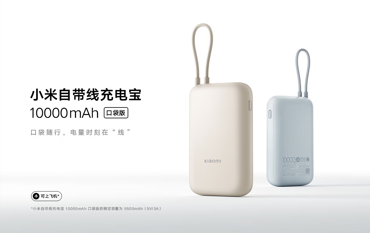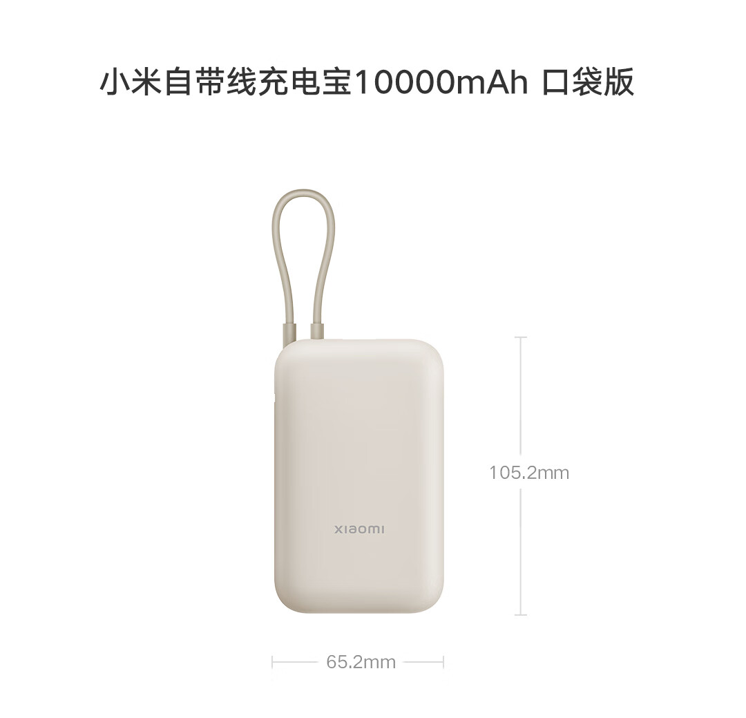 小米(MI)小米充电宝移动电源 10000 自带线双向快充口袋版 电源 灰蓝色