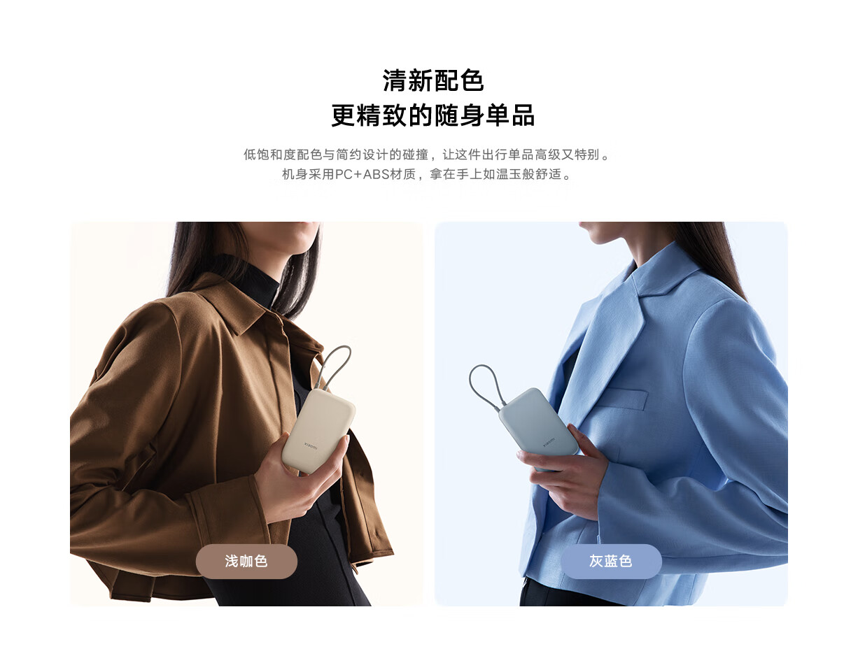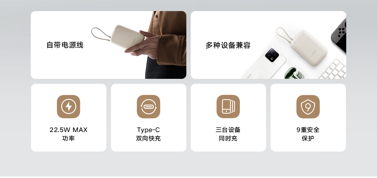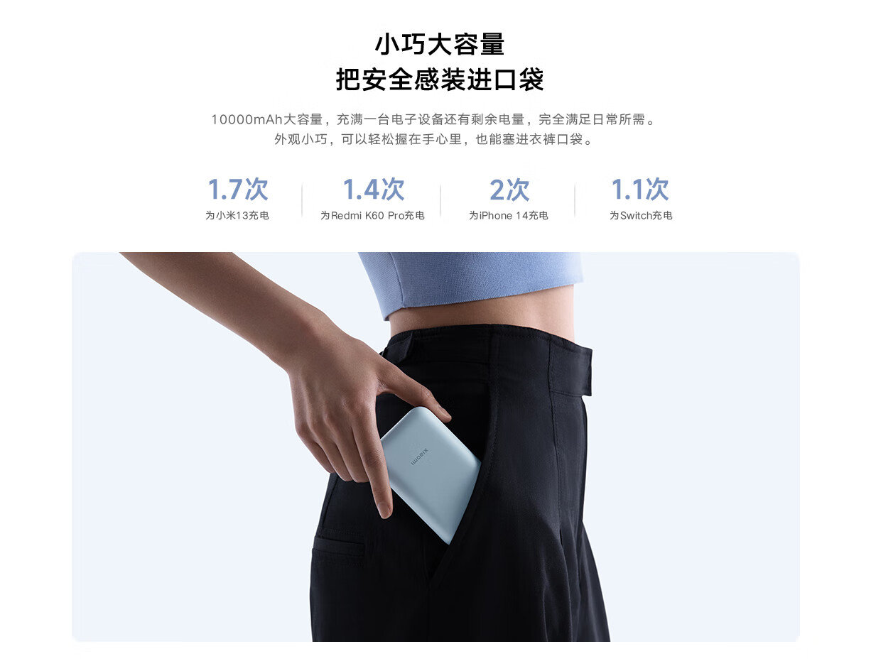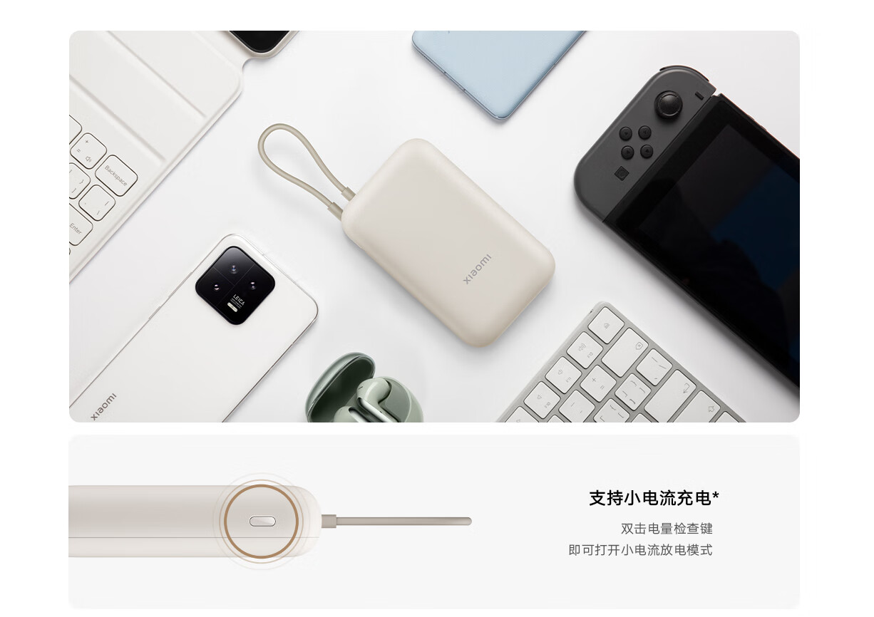 小米(MI)小米充电宝移动电源 10000 自带线双向快充口袋版 电源 灰蓝色