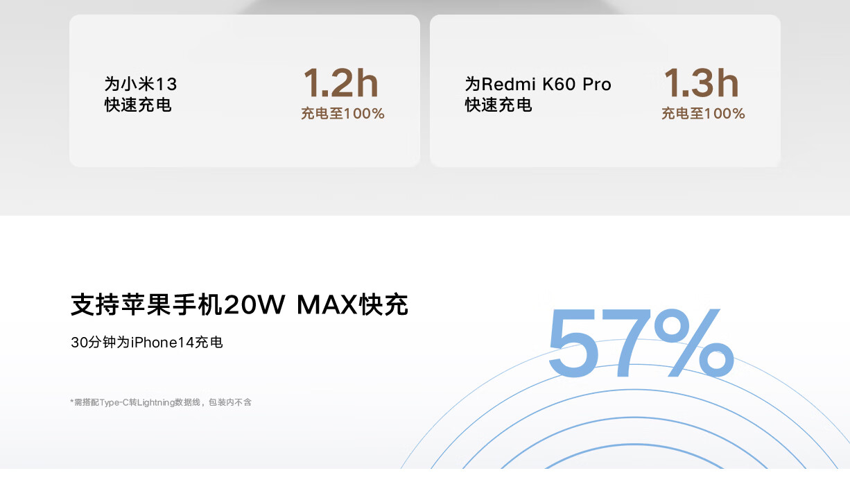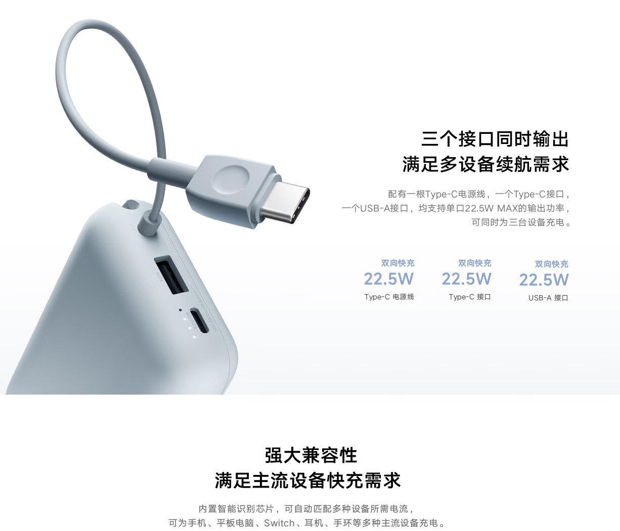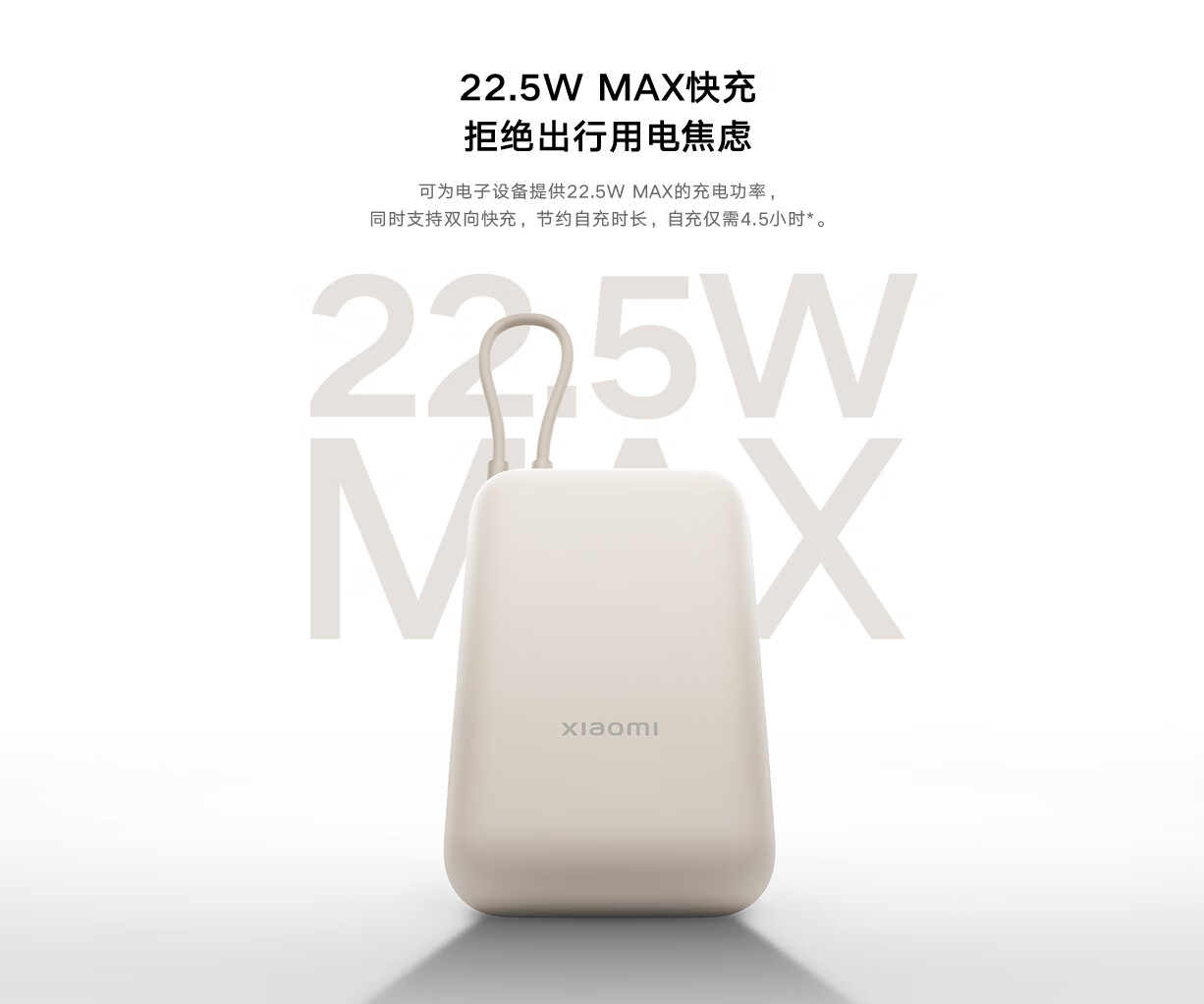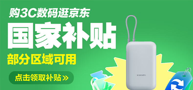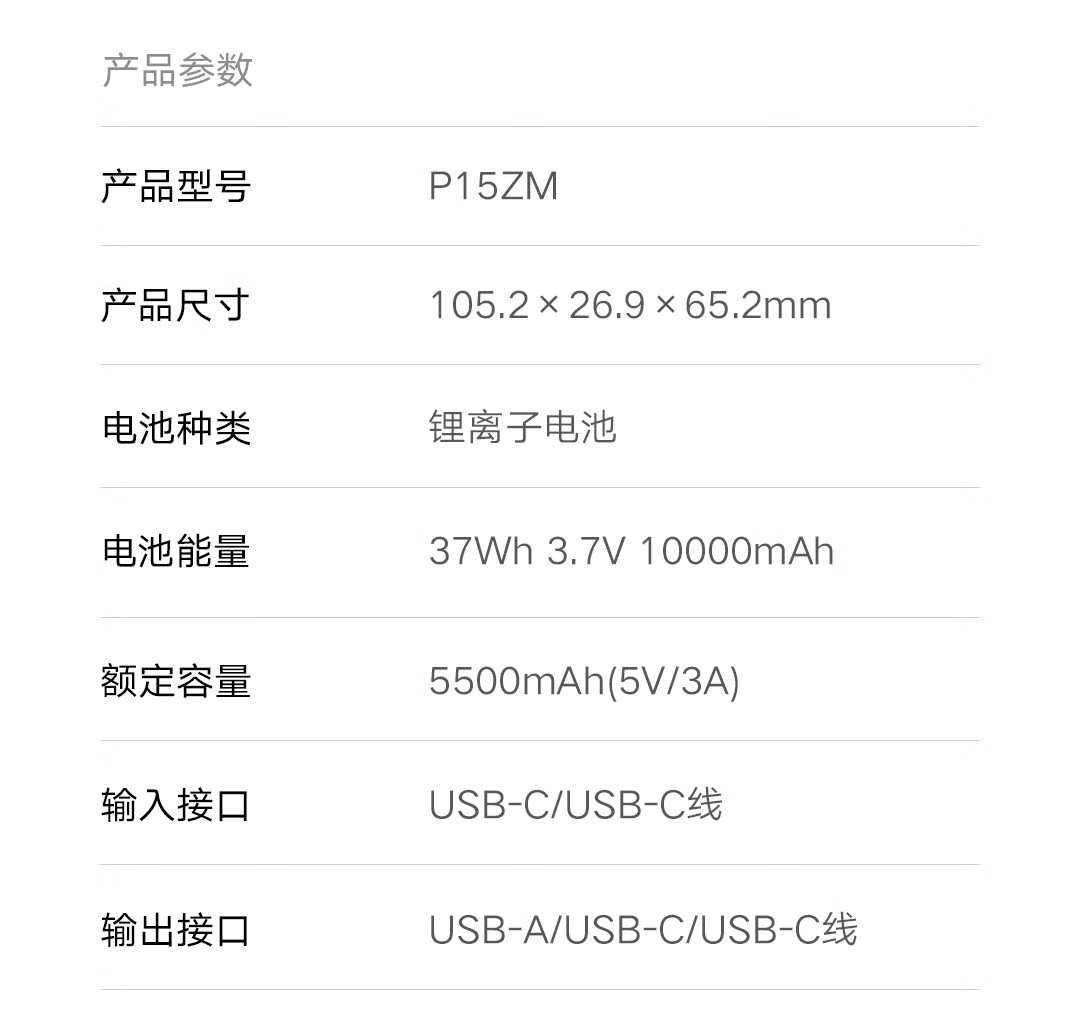小米(MI)小米充电宝移动电源 10000 自带线双向快充口袋版 电源 灰蓝色