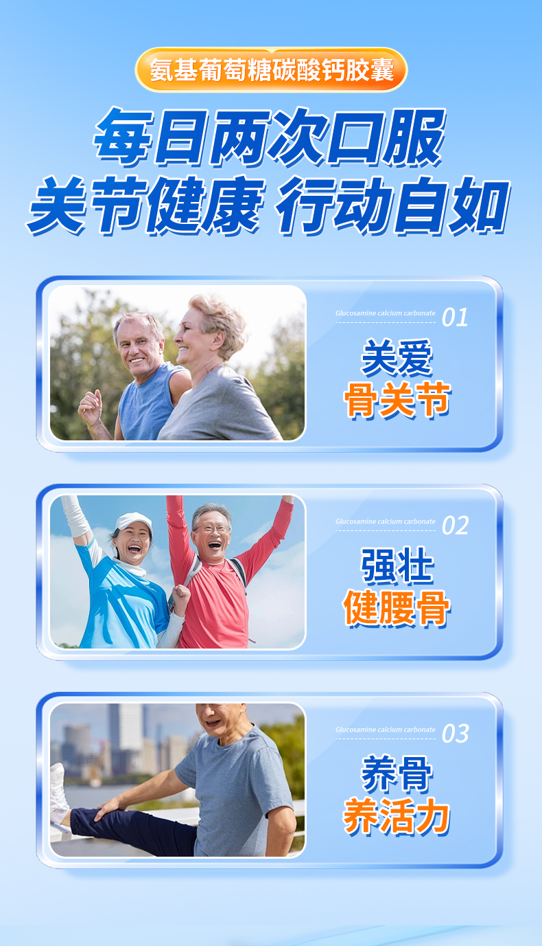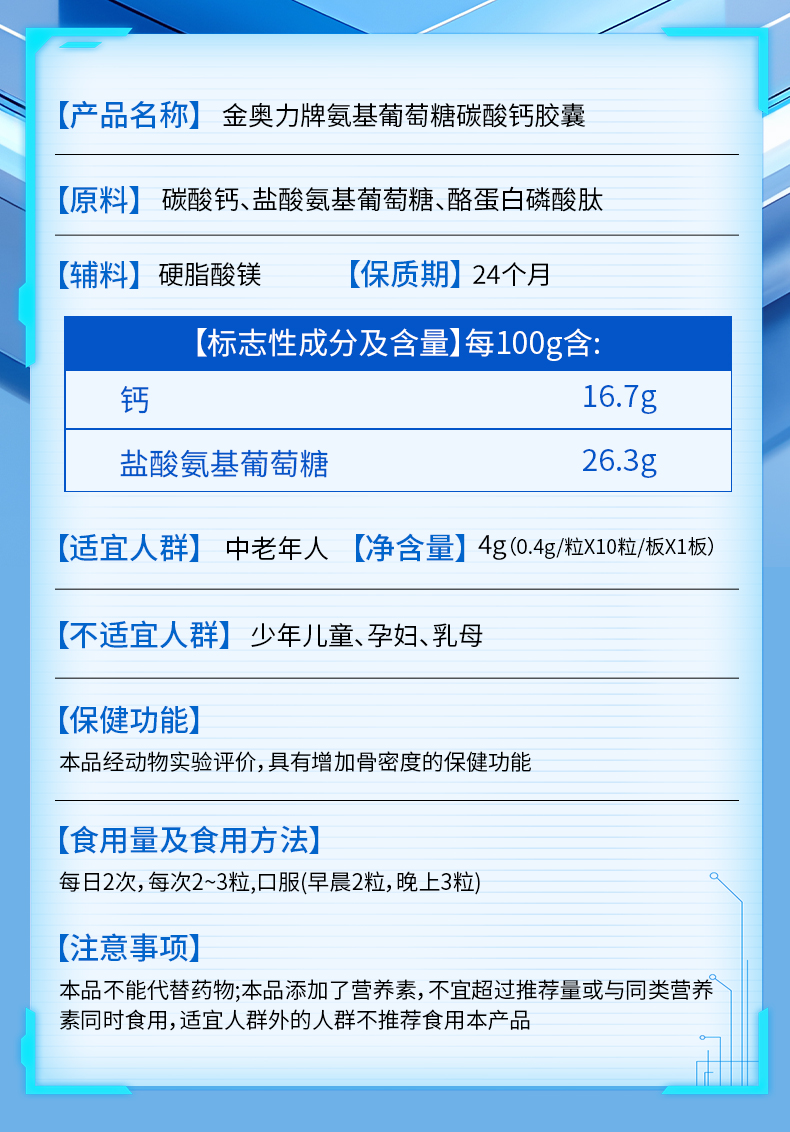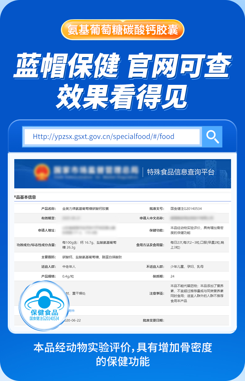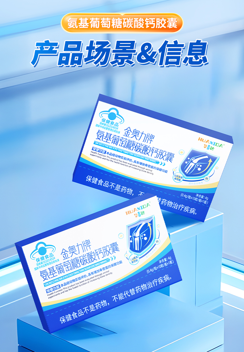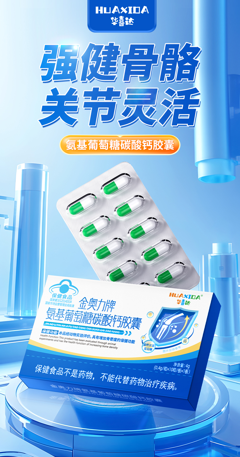 华喜达金奥力牌氨基葡萄糖碳酸钙胶囊中老年增加骨密度护关节