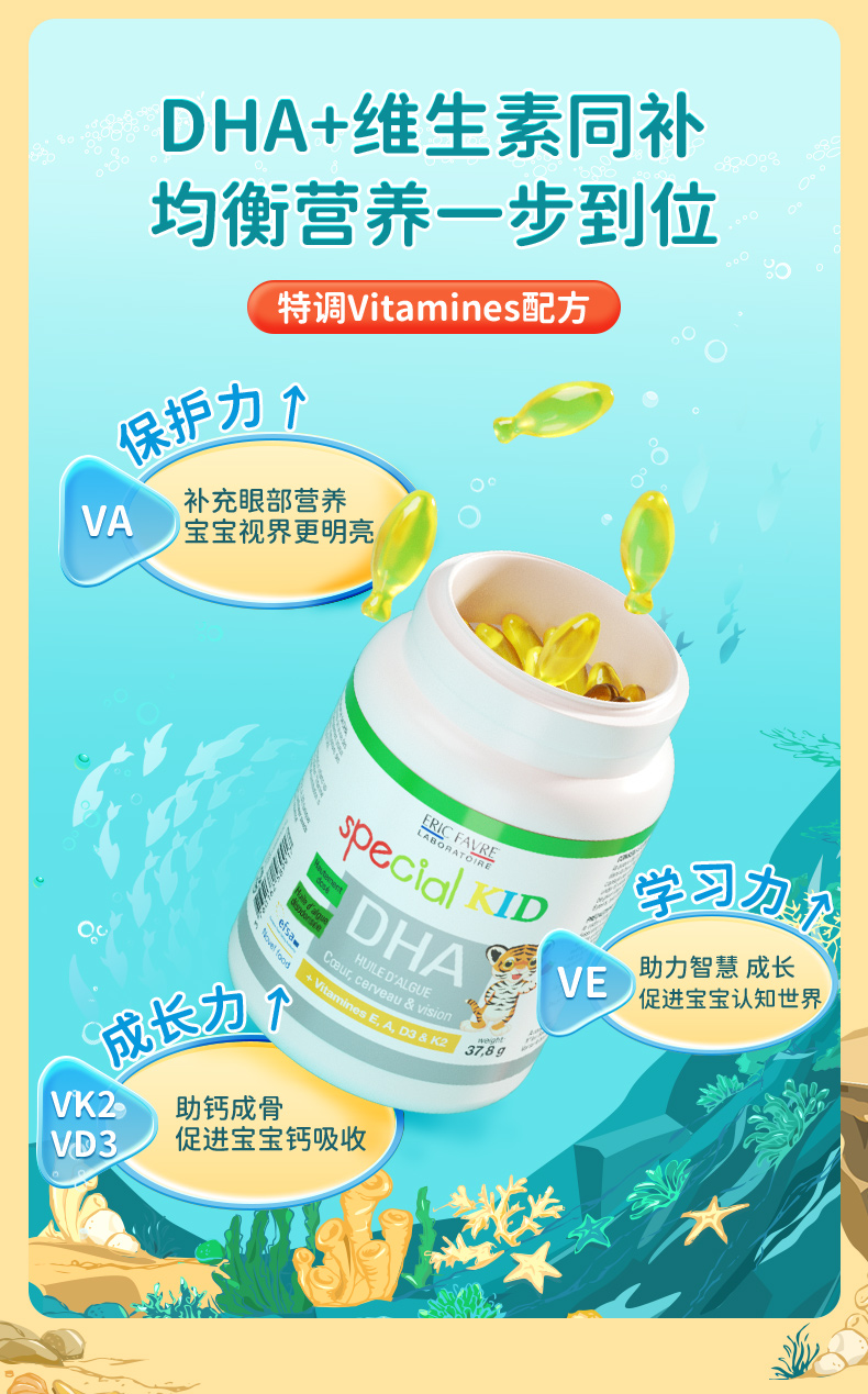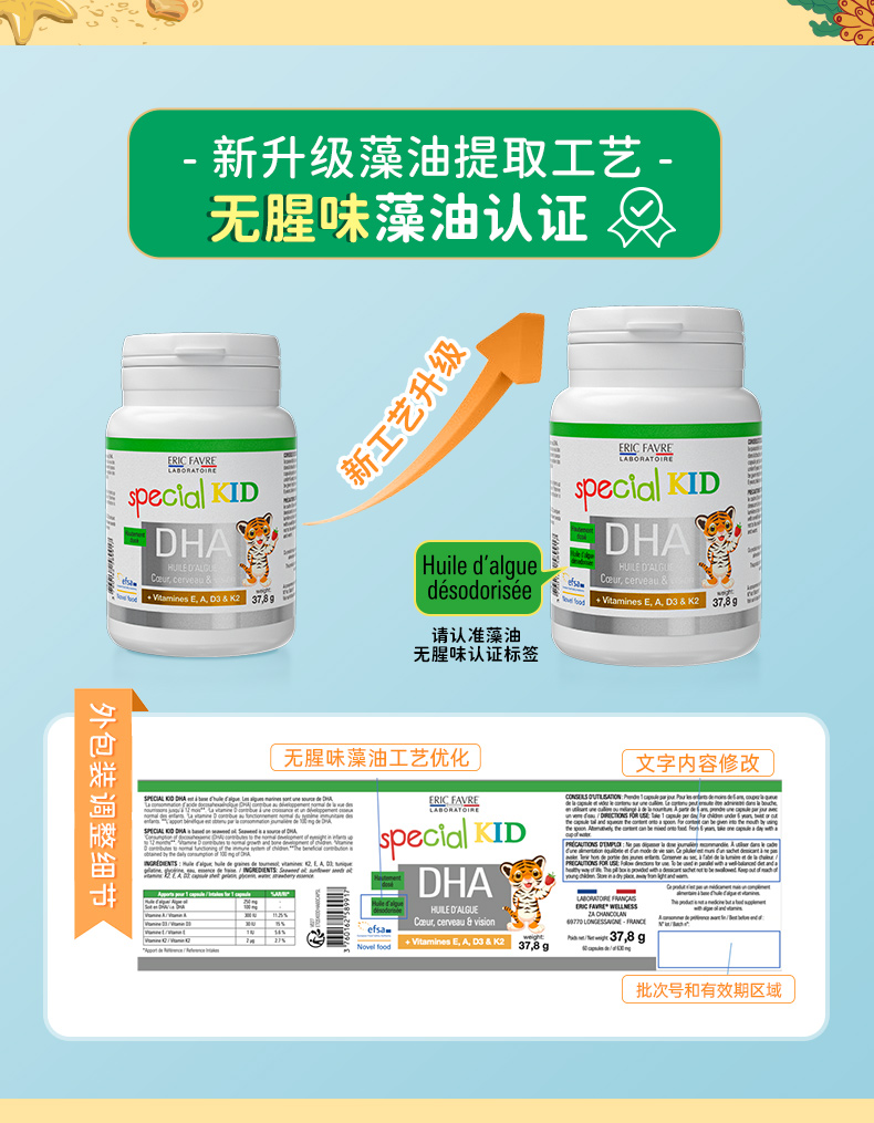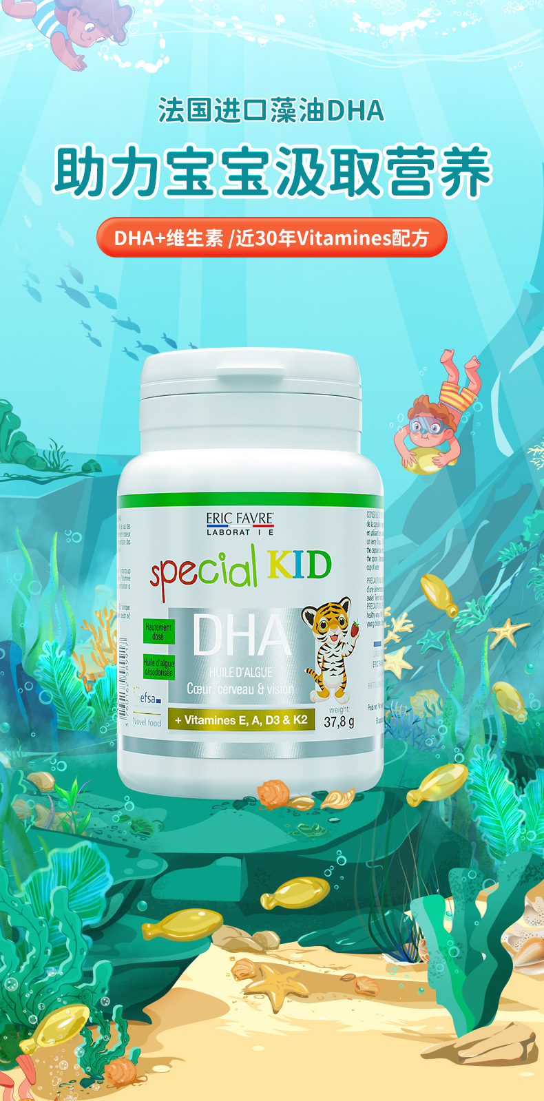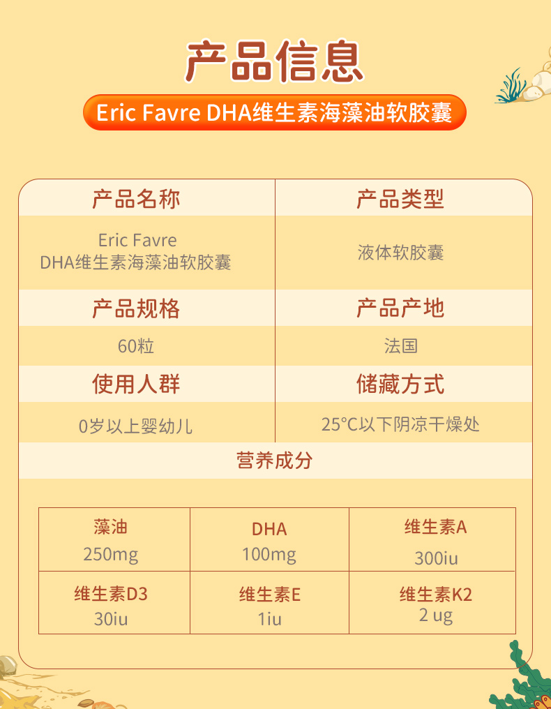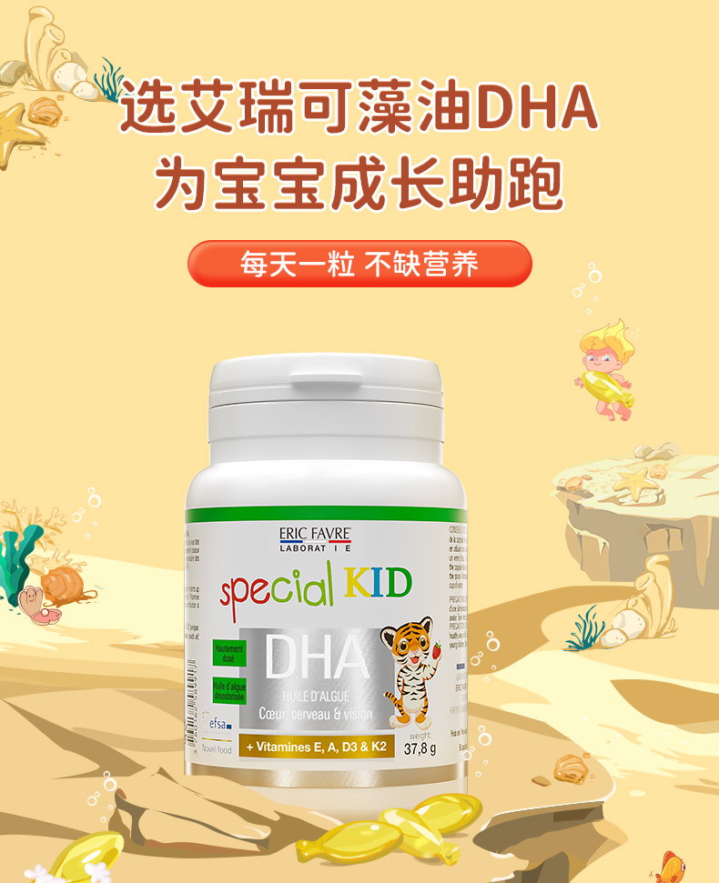 【保税仓】法国Eric Favre儿童DHA海藻油胶囊 60粒(有效期至26年4月)