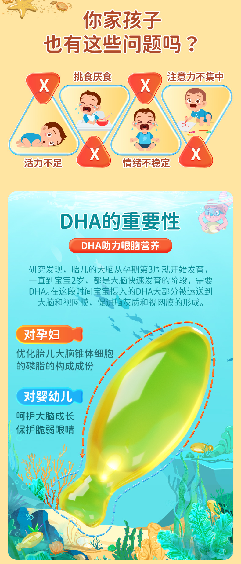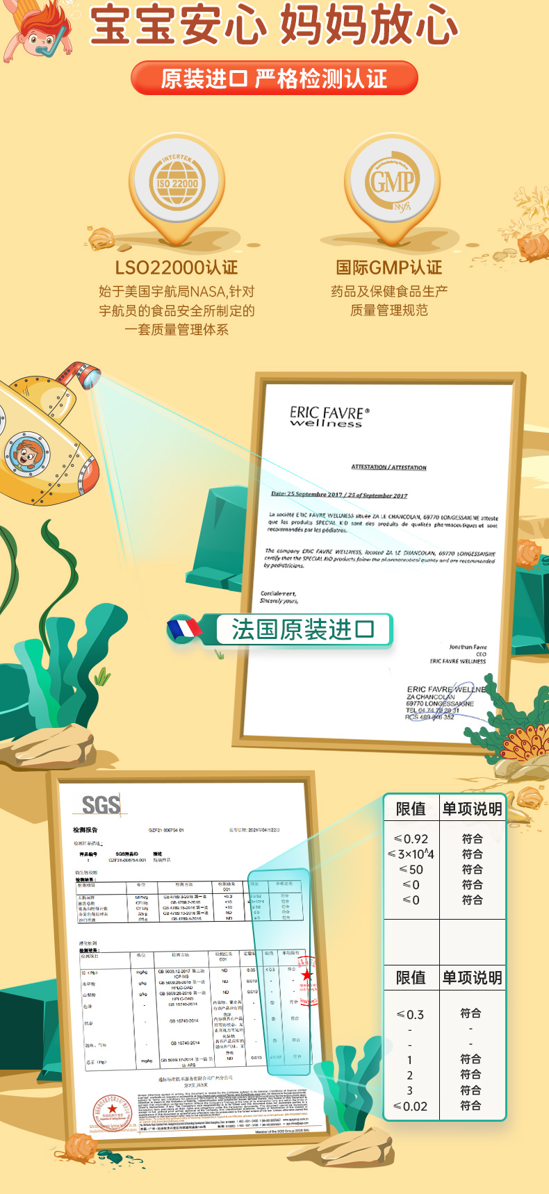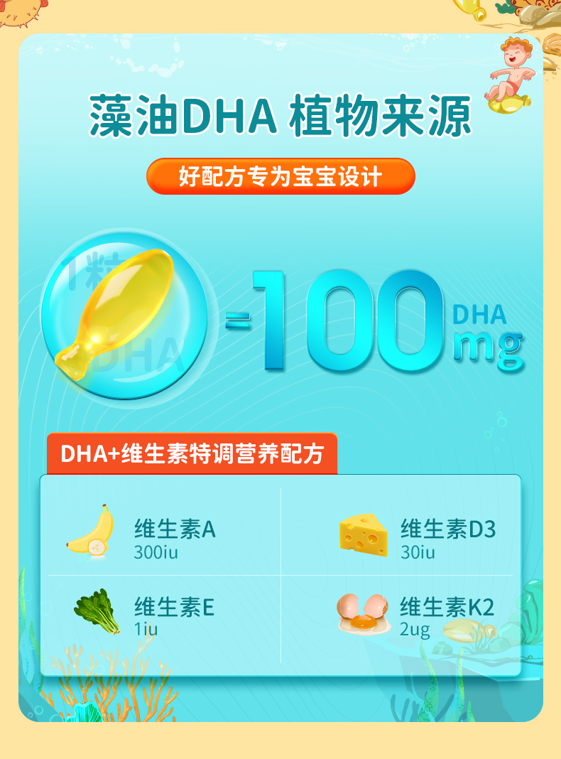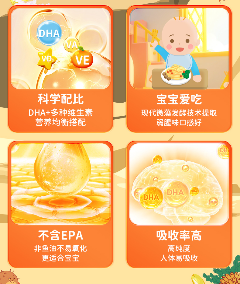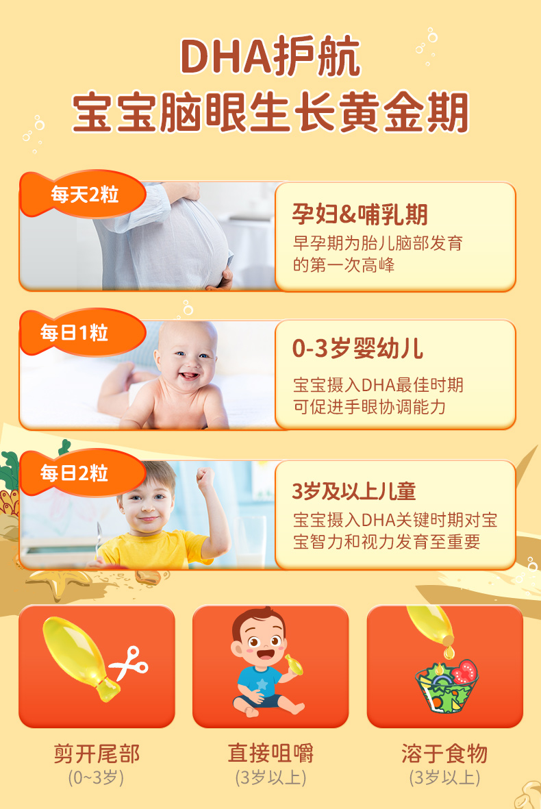 【保税仓】法国Eric Favre儿童DHA海藻油胶囊 60粒(有效期至26年4月)
