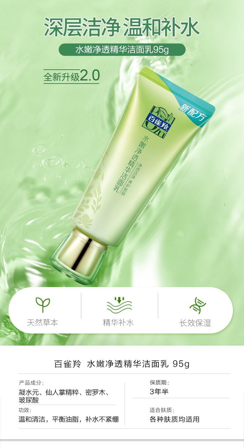 百雀羚水嫩净透精华洁面乳95g