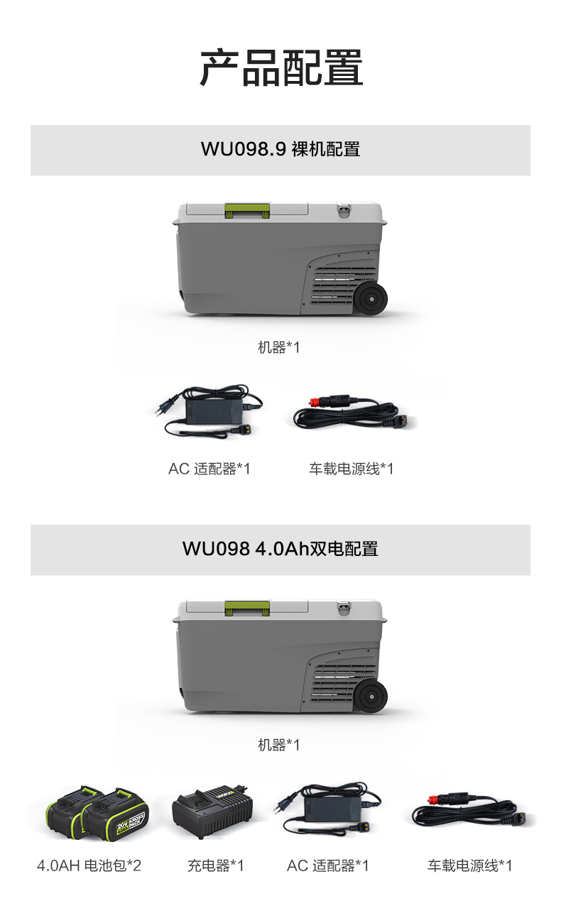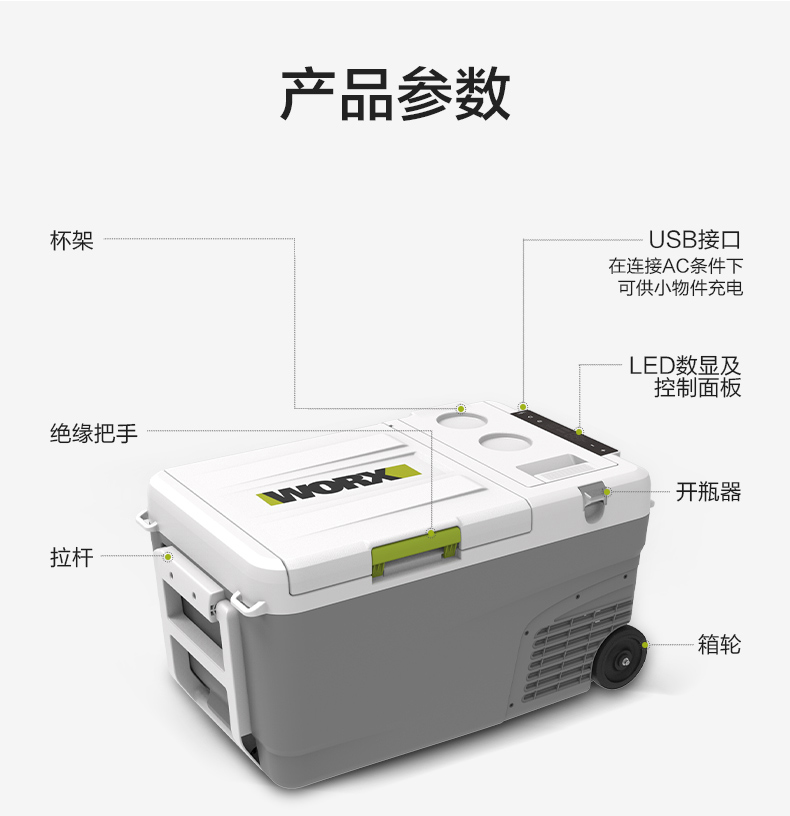 威克士车载冰箱家车两用WU098便携移动户外露营冷冻冷藏小冰箱