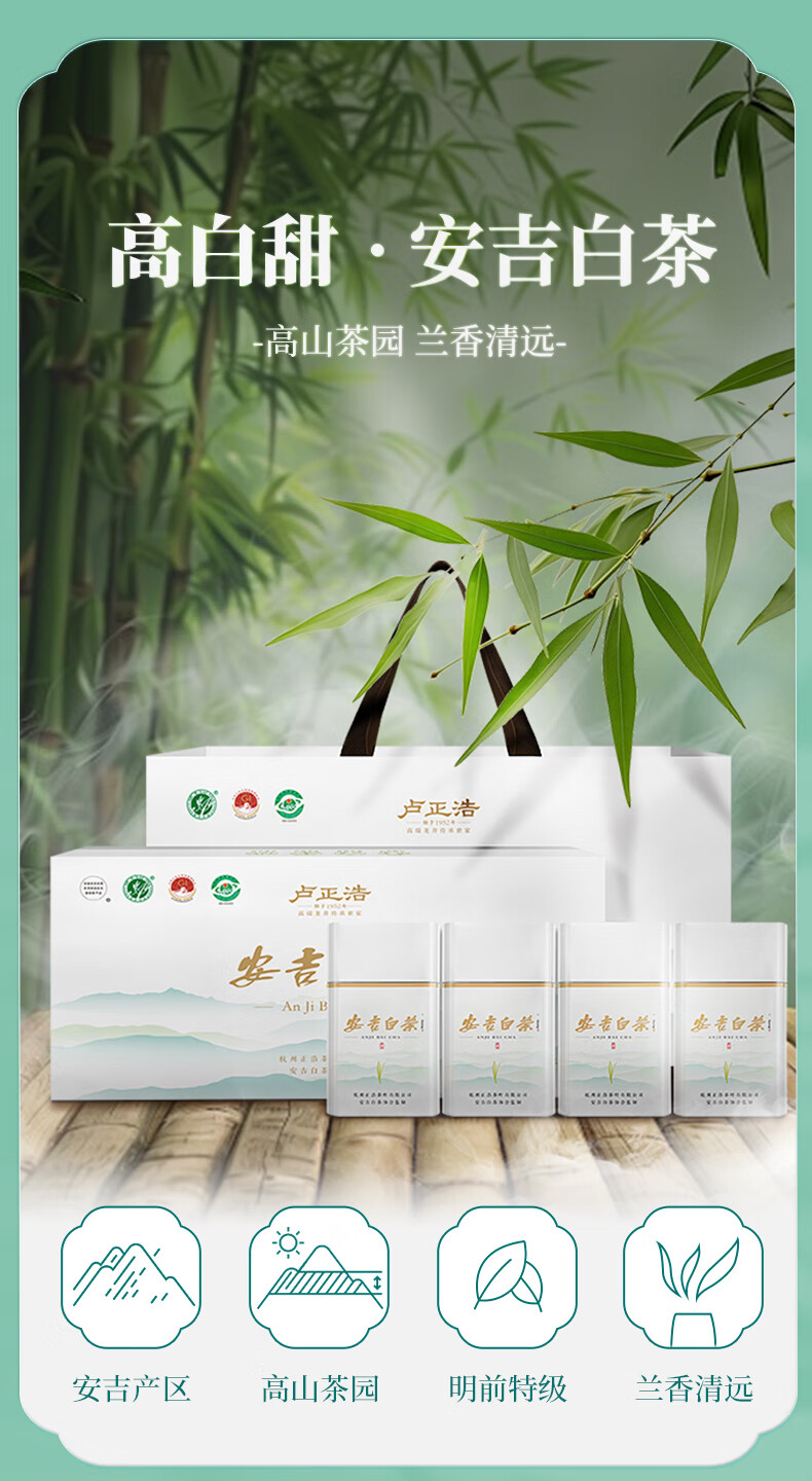 【2026年新茶】卢正浩绿茶正宗安吉白茶特级200g新茶明前高山茶叶礼盒春茶长辈实用送礼
