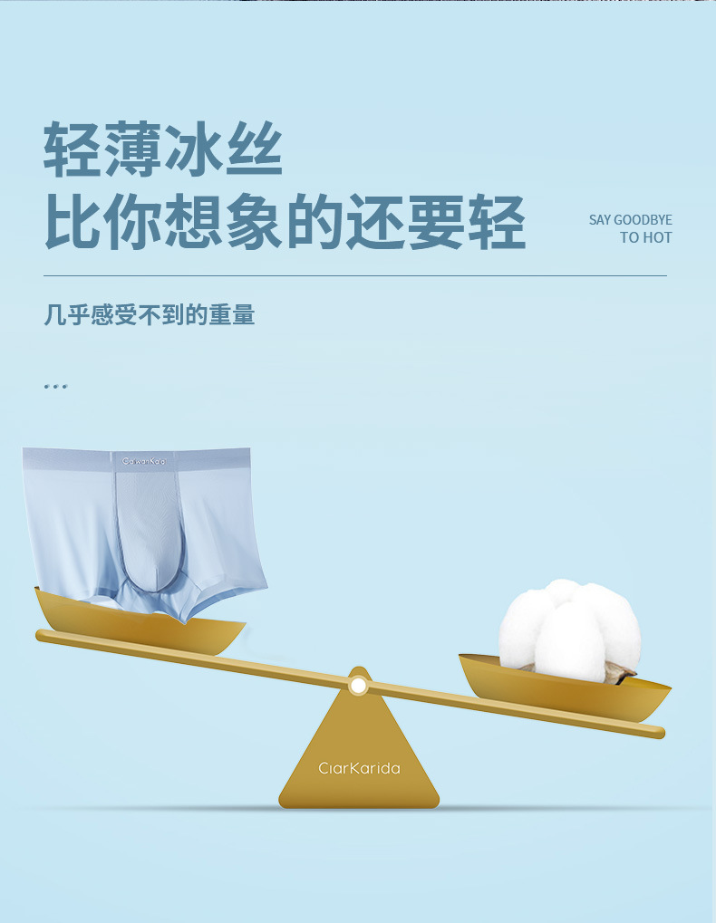 100元/3件 冰丝无痕裸感透气高弹男士平角内裤