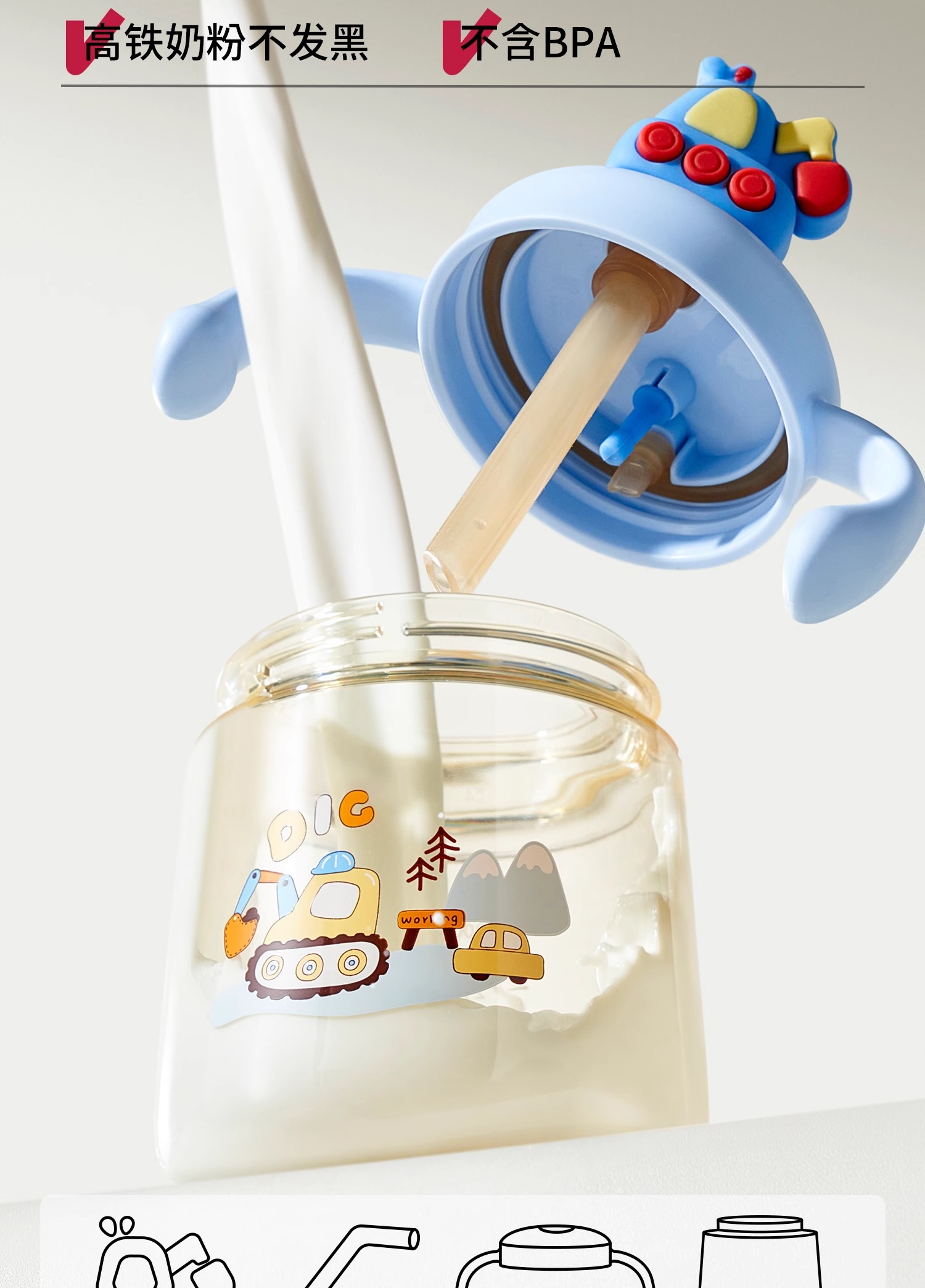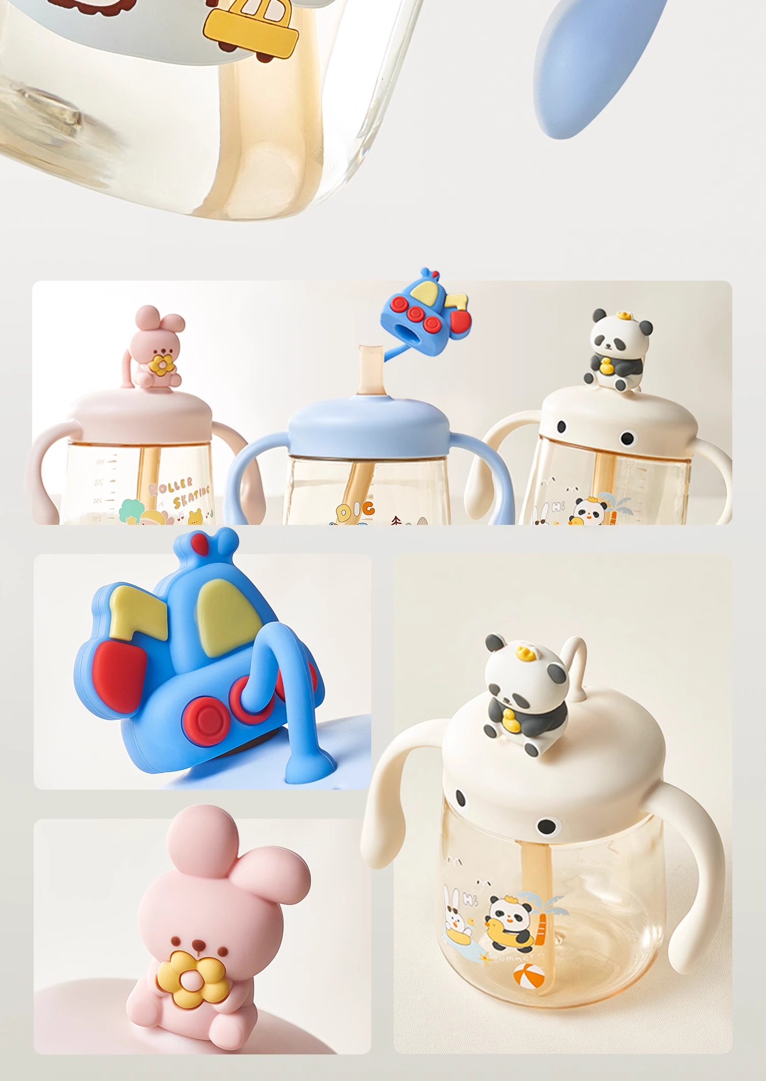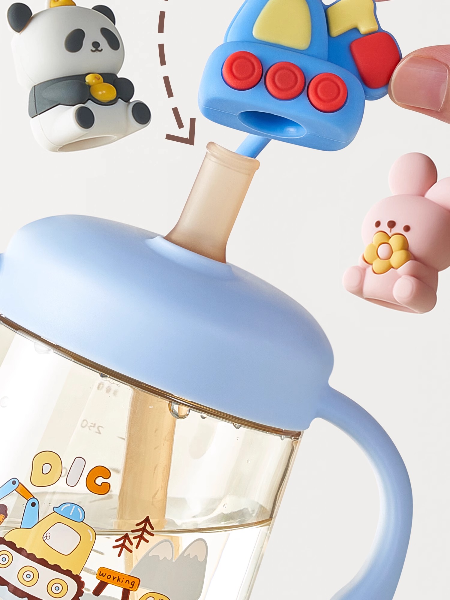 科巢PPSU儿童公仔牛奶杯原装配件 杯盖 吸管套餐 背带