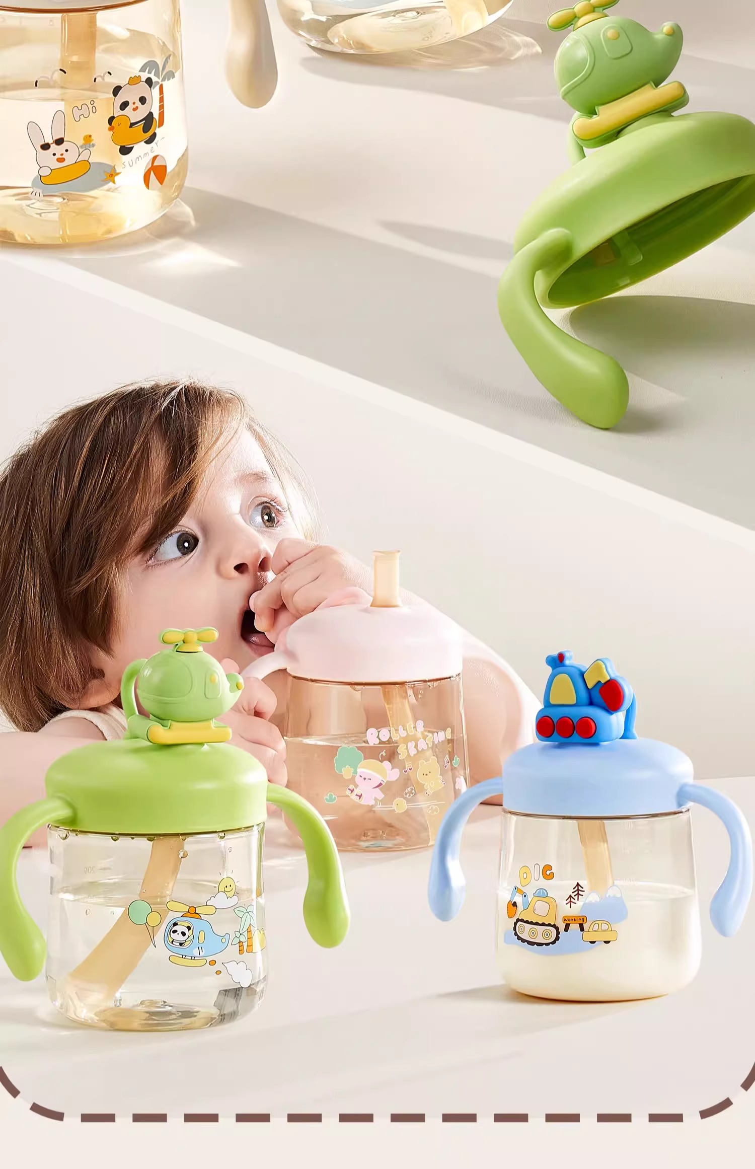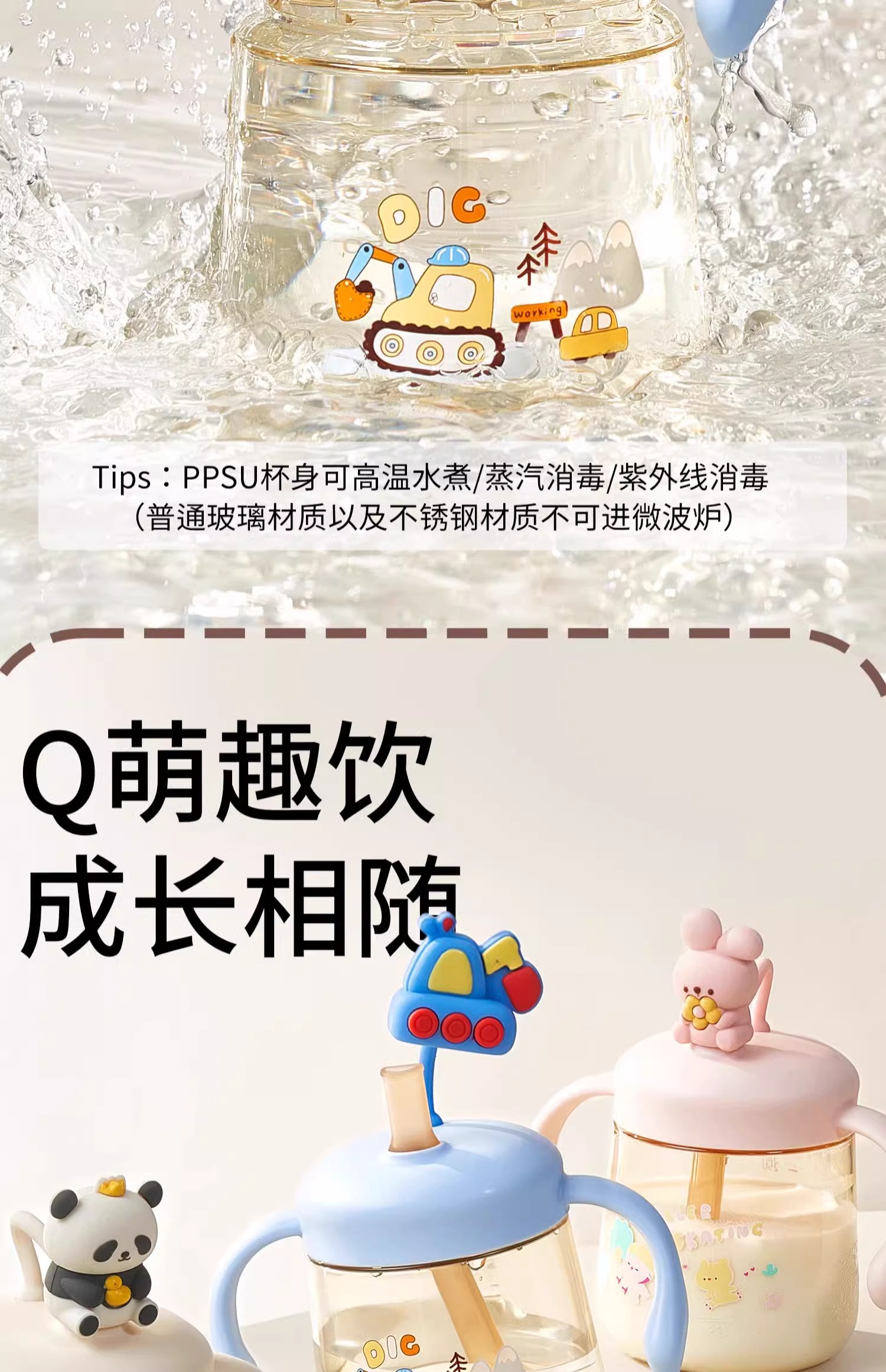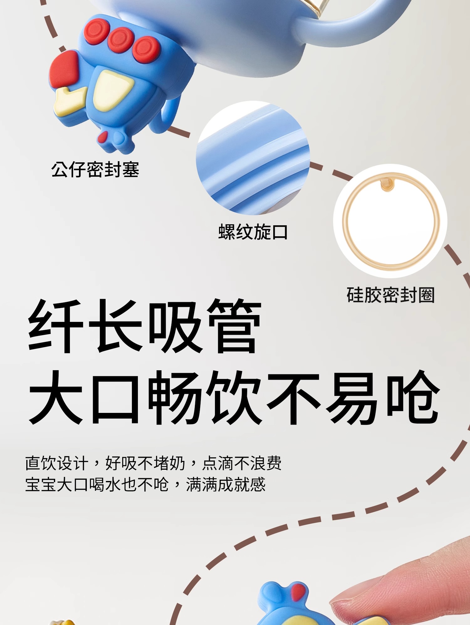 科巢PPSU儿童公仔牛奶杯原装配件 杯盖 吸管套餐 背带