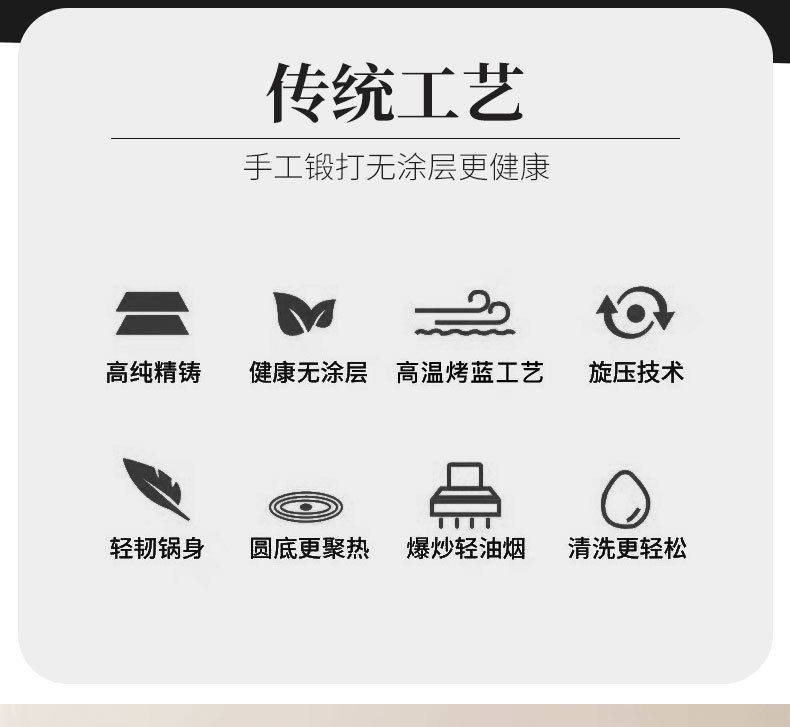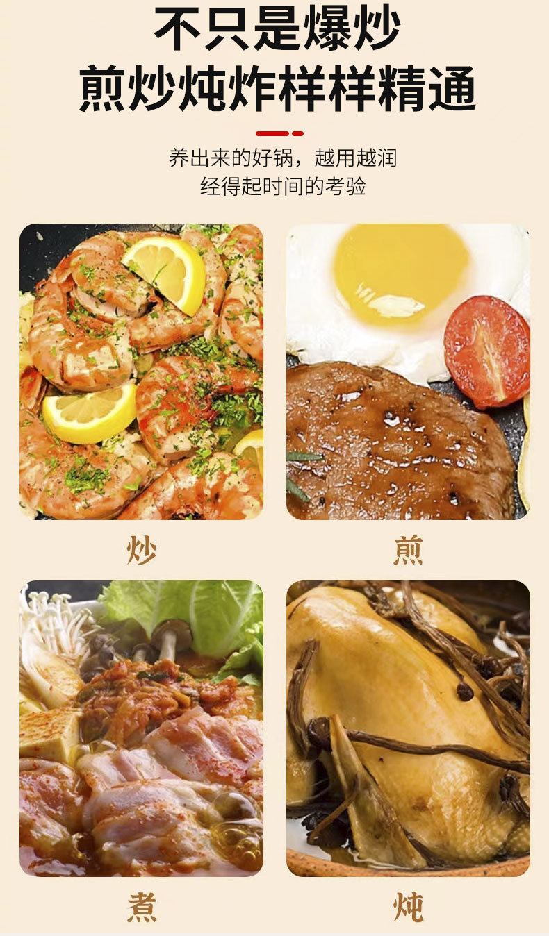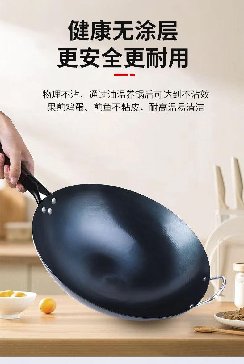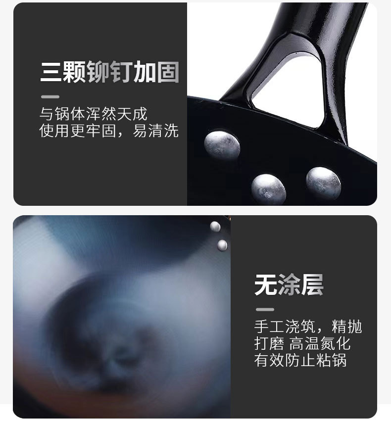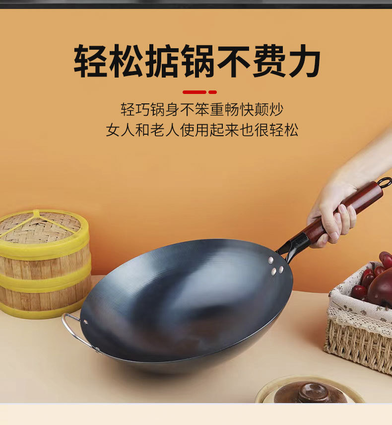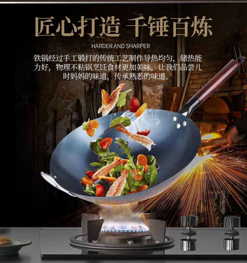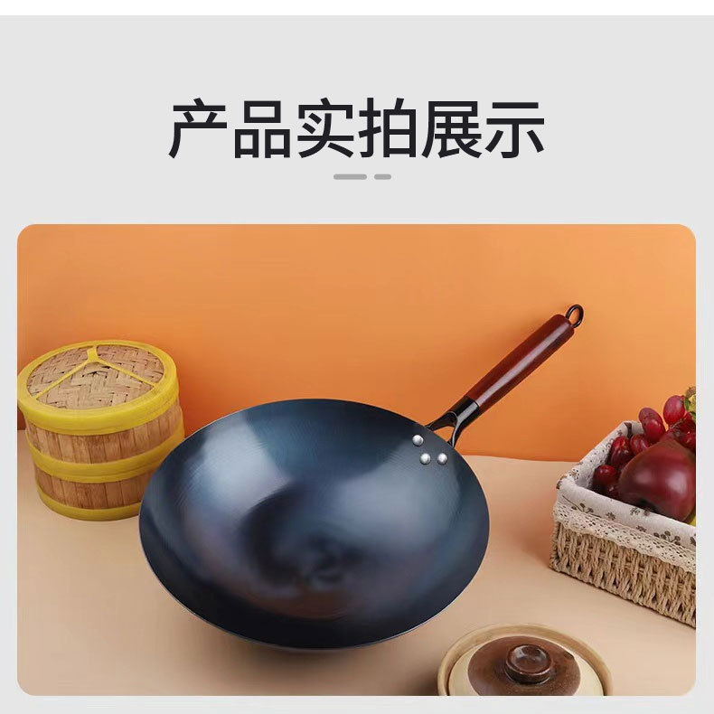 舌尖3同款炒锅 章丘同款老式铁锅 圆底炒锅不粘 锻打无涂层 燃气灶厨师家用熟铁锅