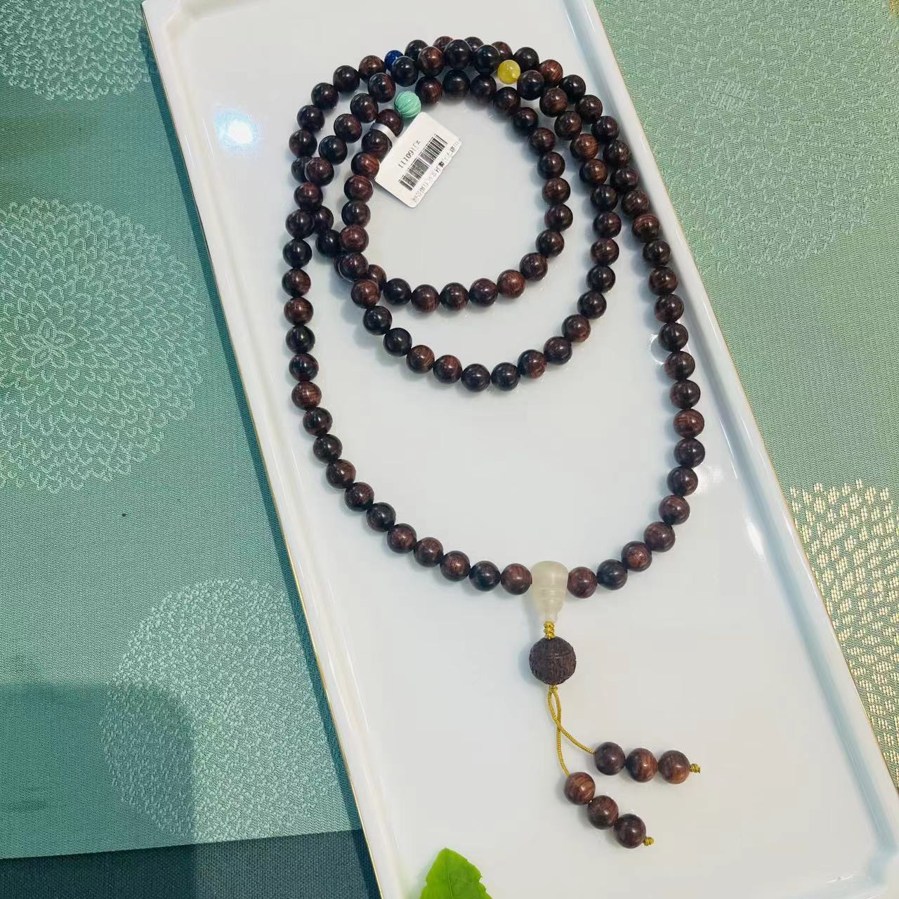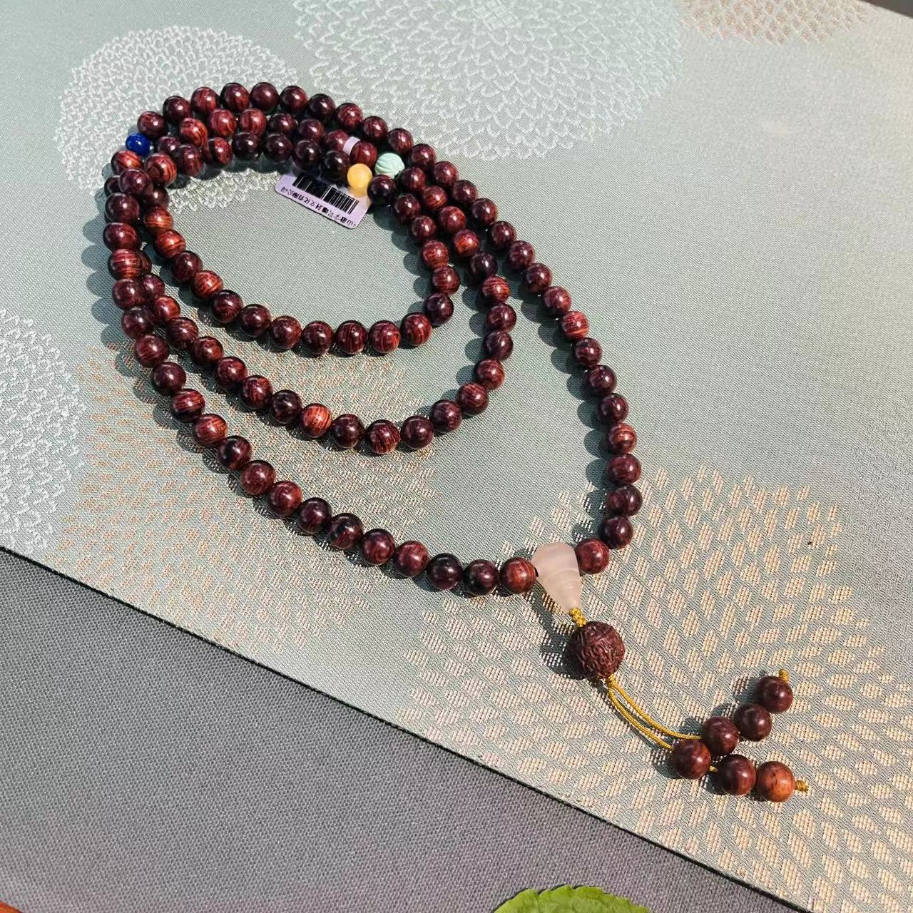 0.8圆珠海南黄花梨手持珠串-如意纹款