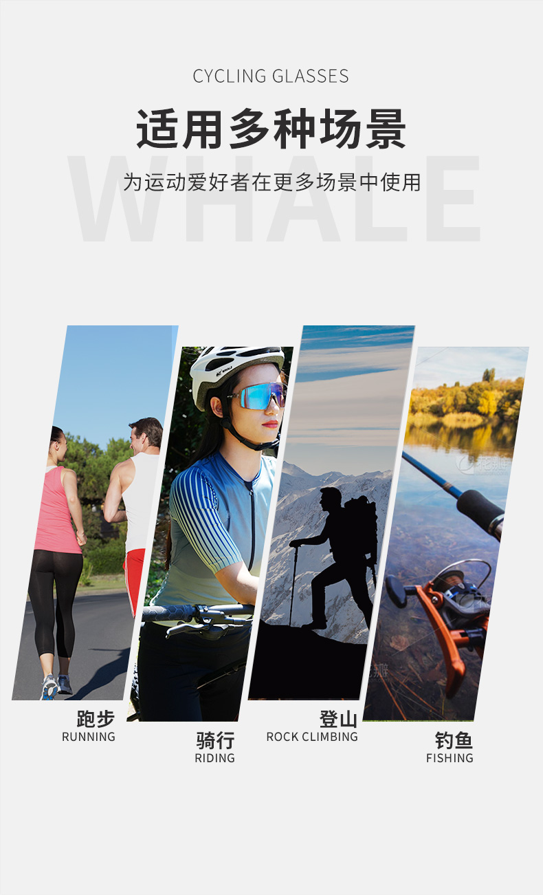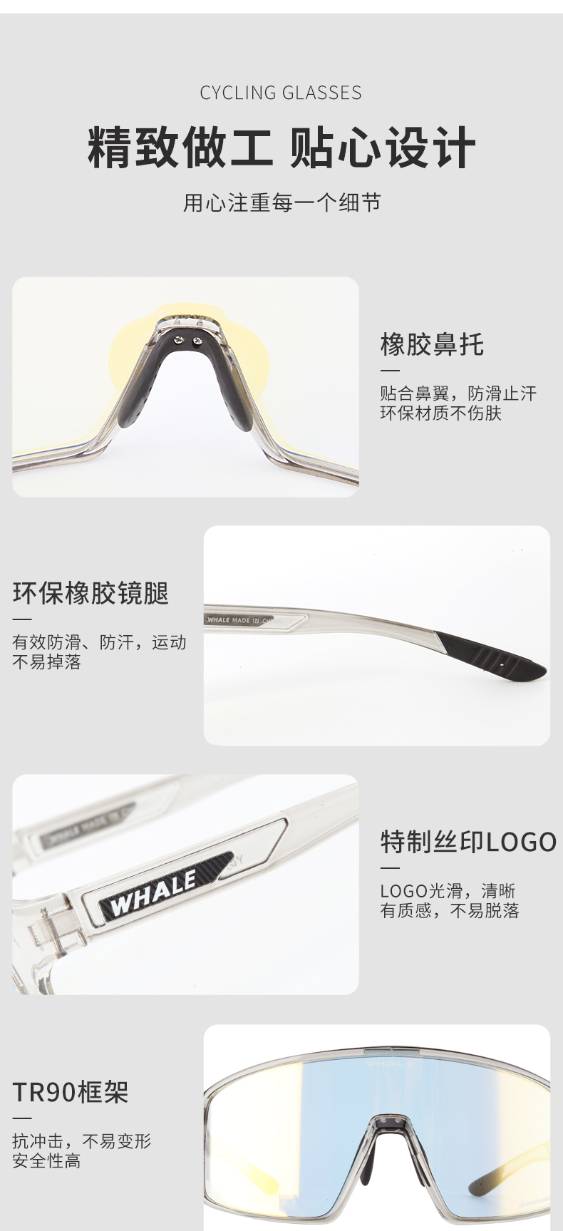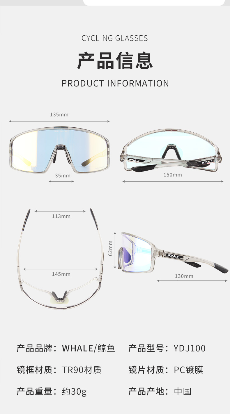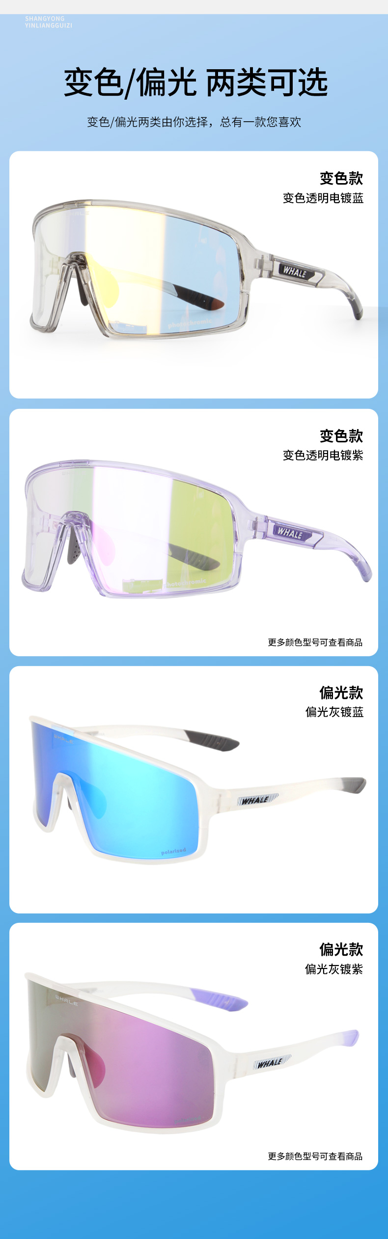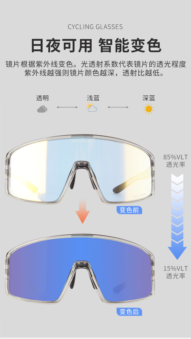 鲸鱼运动变色眼镜专业防风跑步偏光骑行眼镜户外运动风镜骑车护目