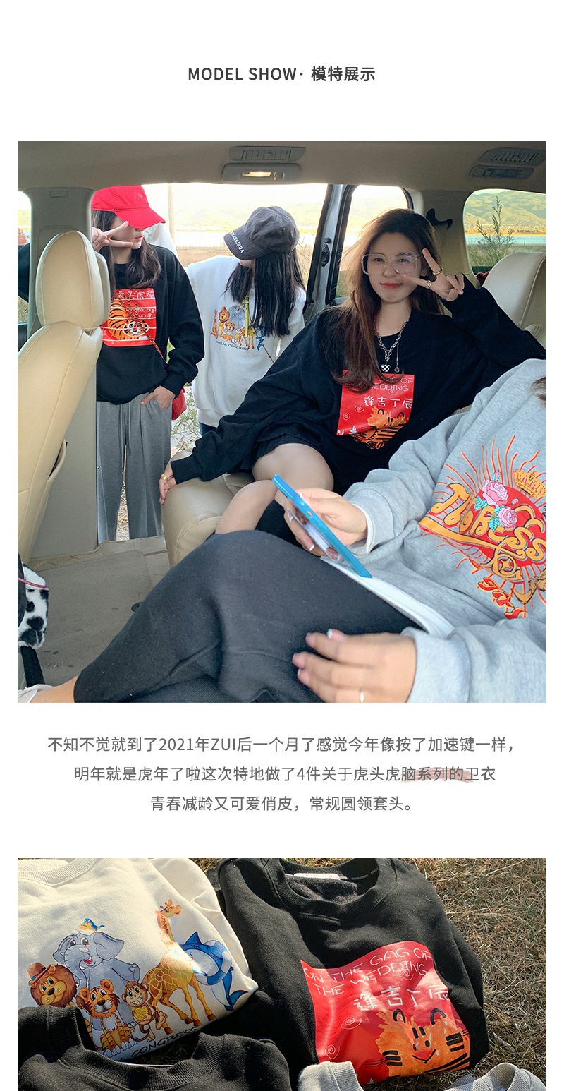 宽松韩版情侣款老虎印花新年衣服潮