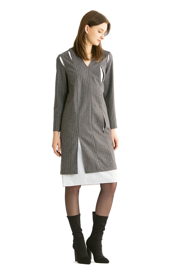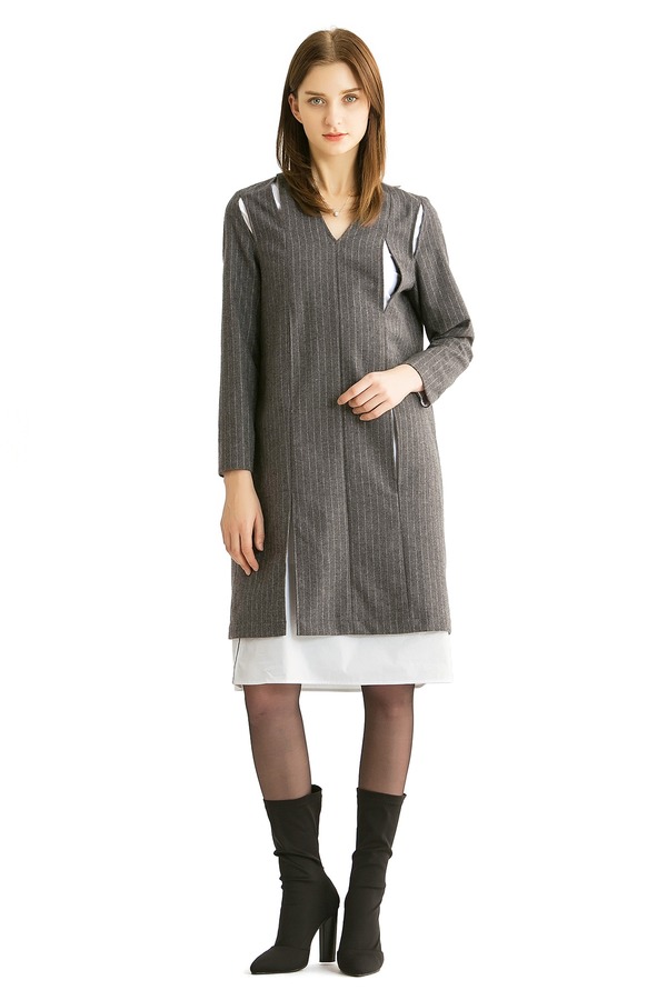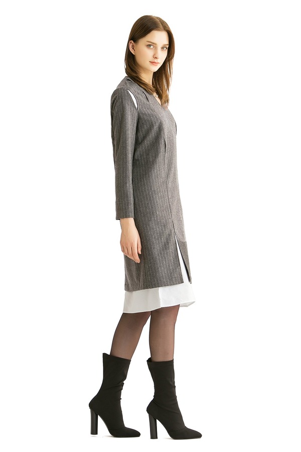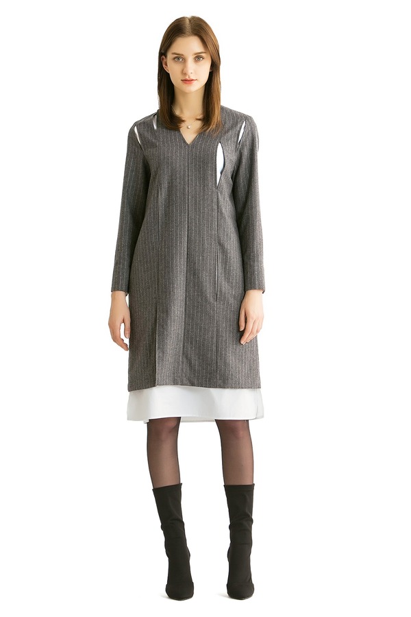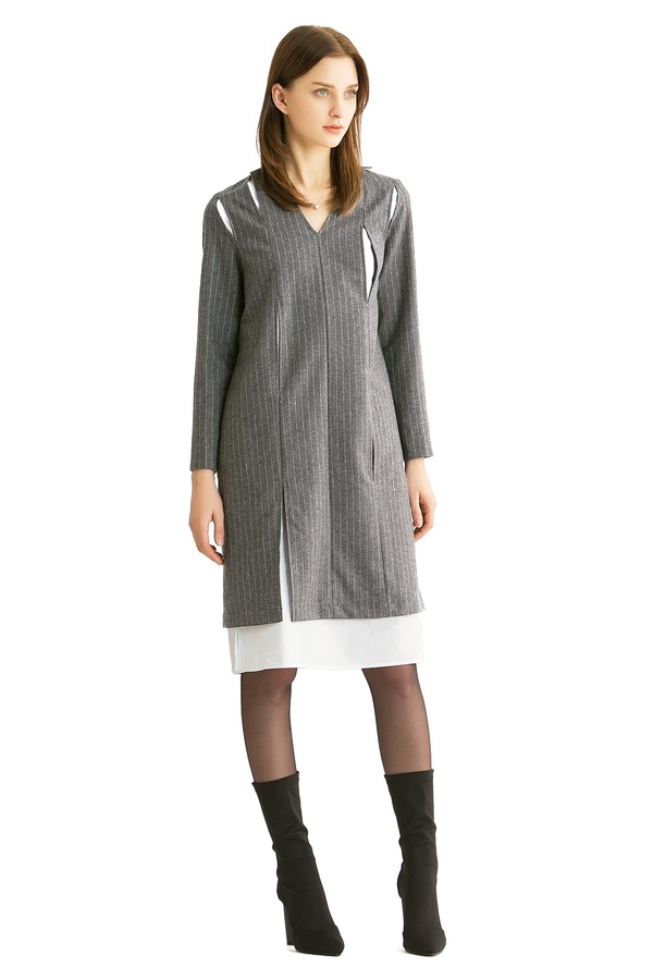 ELLA JADE 假两件灰色条纹连衣裙 300