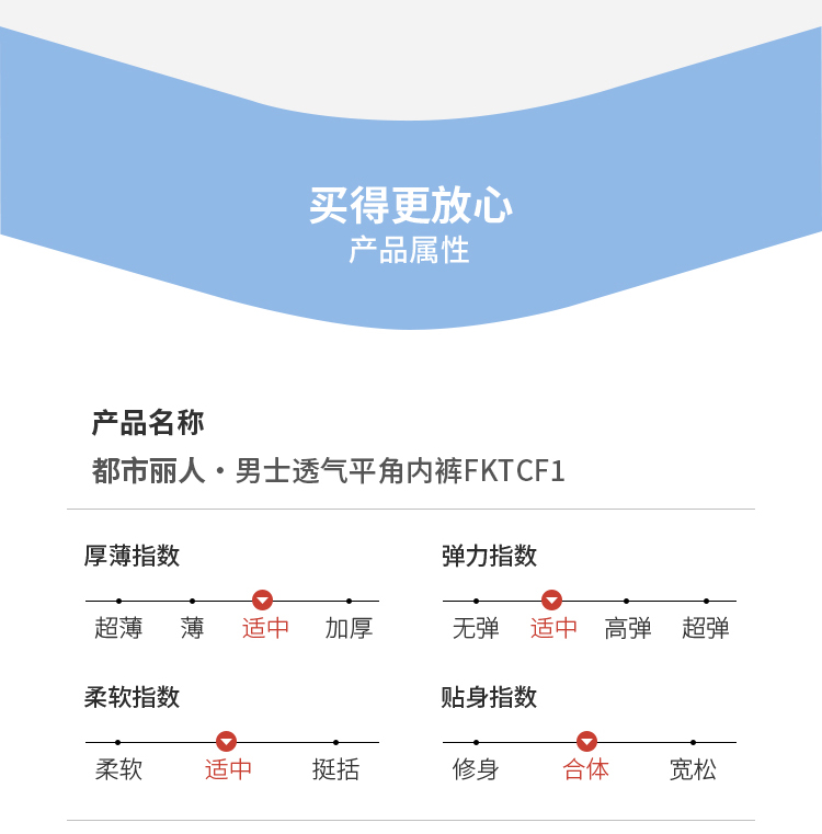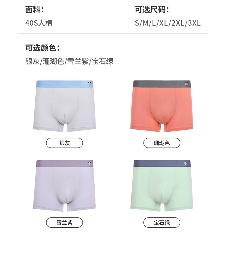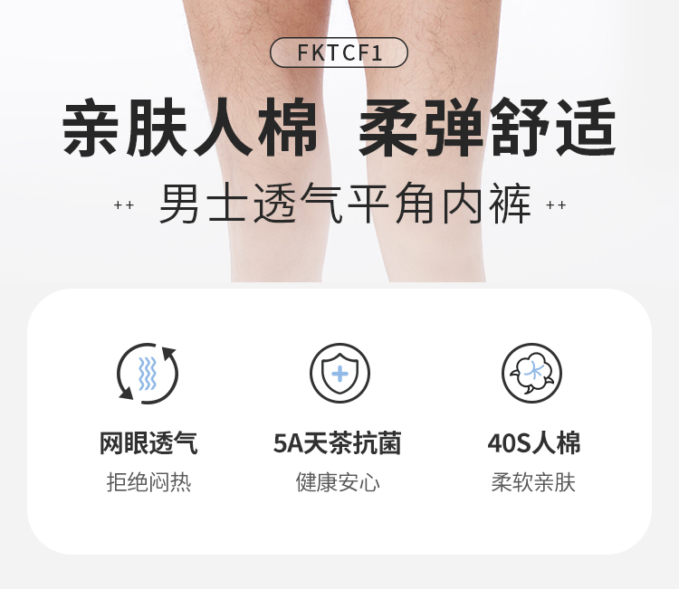 都市丽人都市锋尚内裤简约基础平角裤40S人棉男士内裤FKTCF1