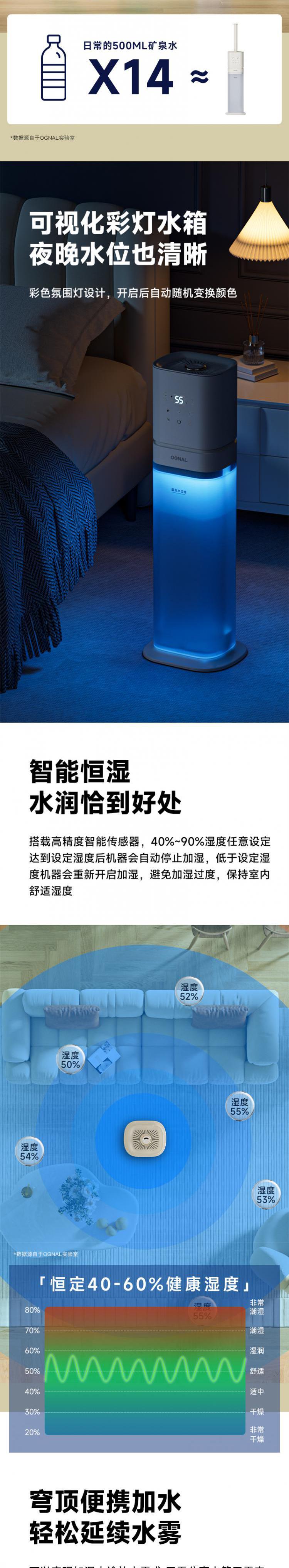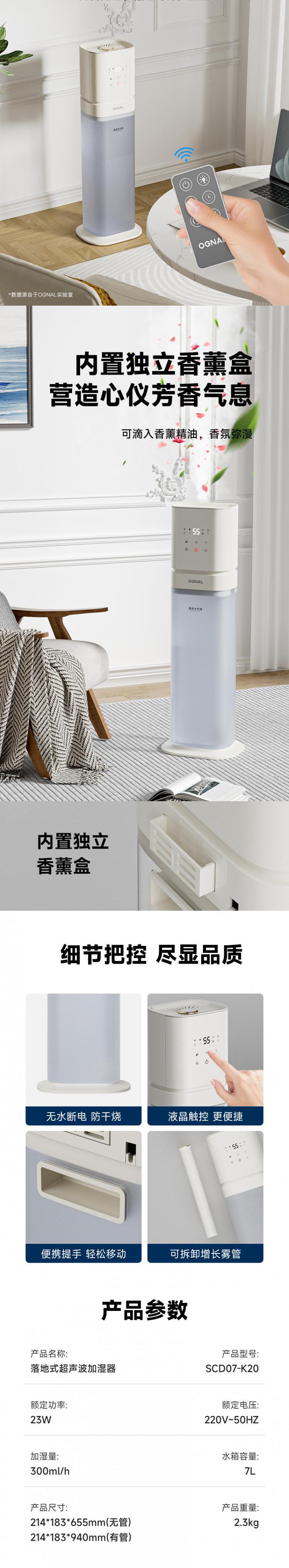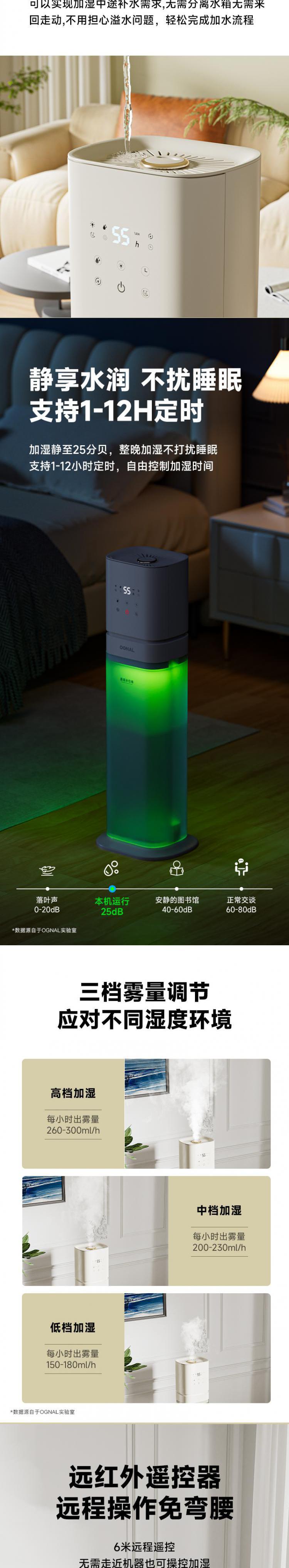 奥戈那 加湿器大雾量卧室办公室家用便携上加水大容量加湿底噪雾化器 SCD07-K20
