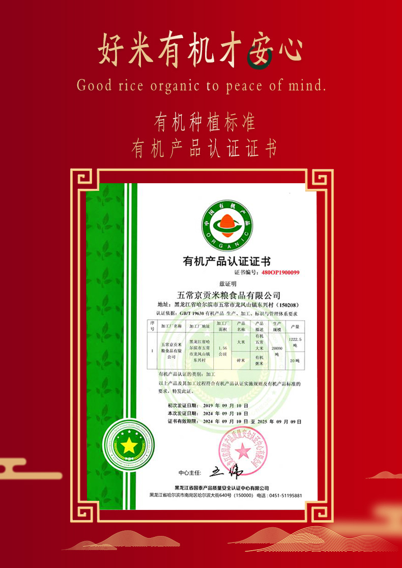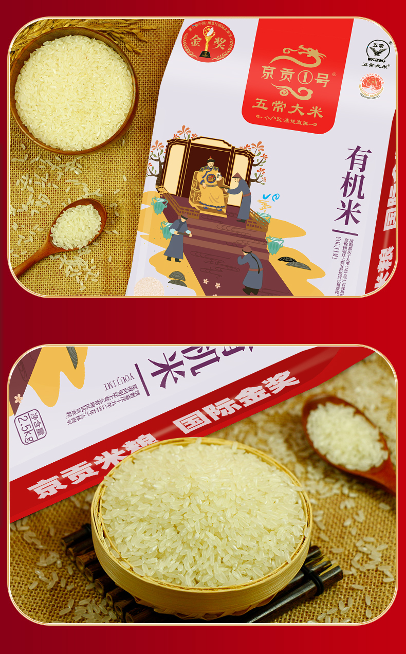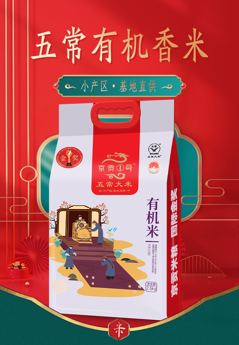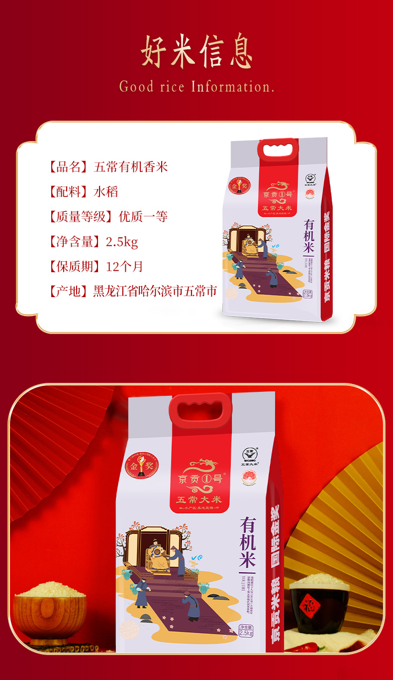 【自营】京贡1号五常有机米2.5kg真空袋
