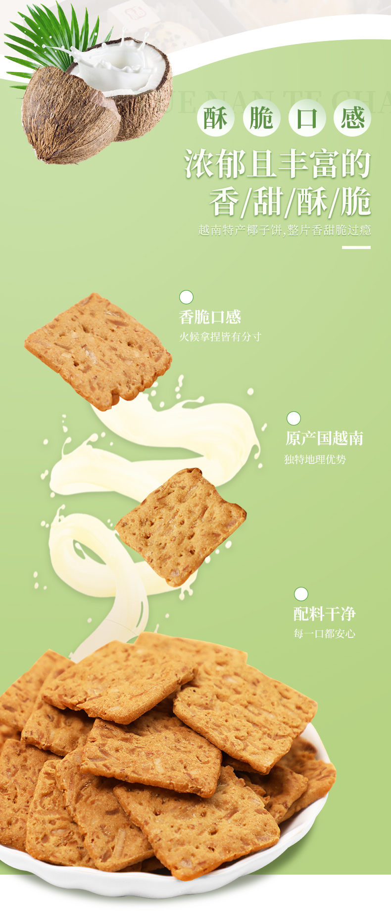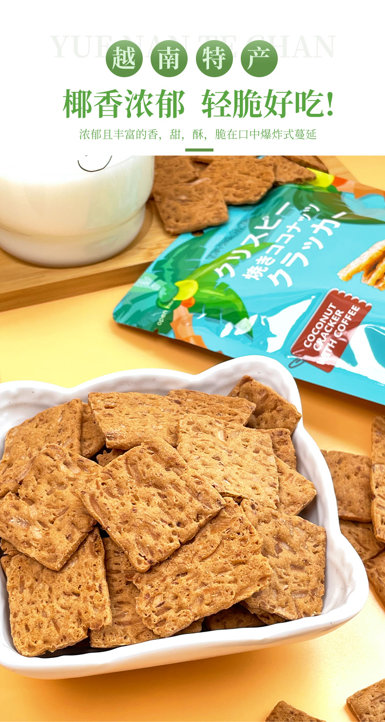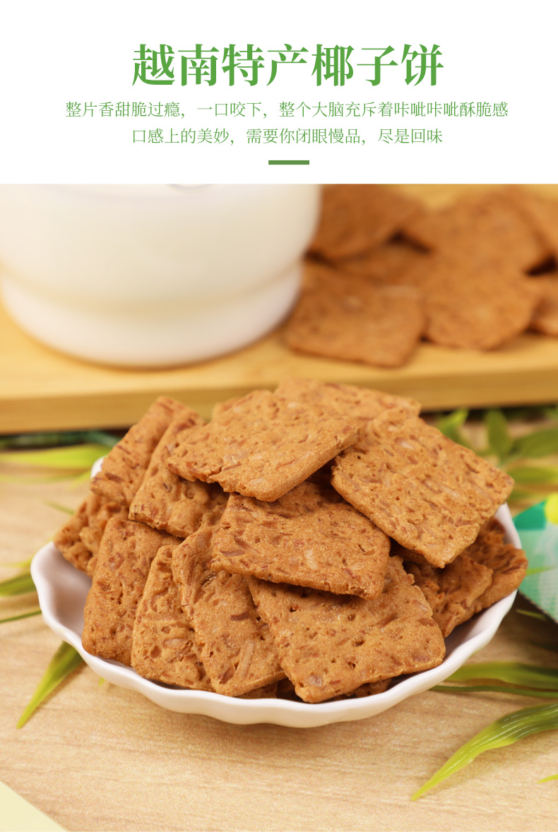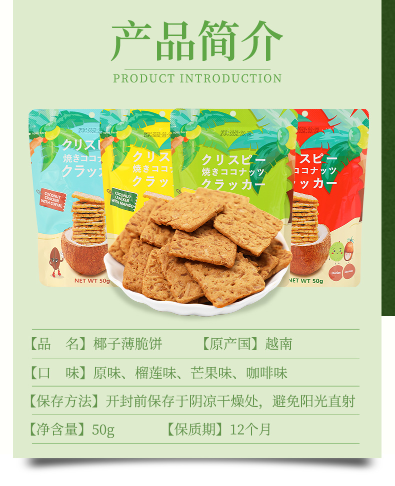 越南进口MY PHUONG椰子薄脆饼干(原味、咖啡味、芒果味、榴莲味混装)50g*4