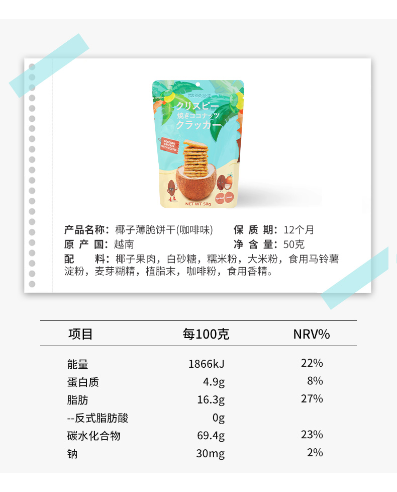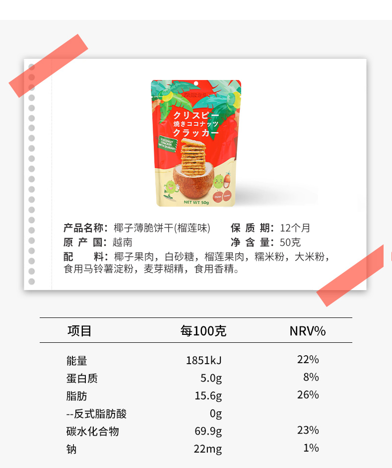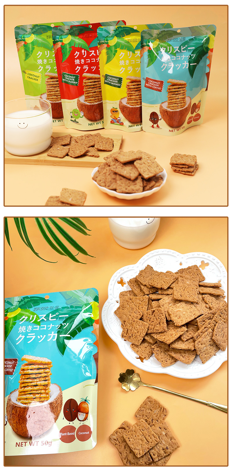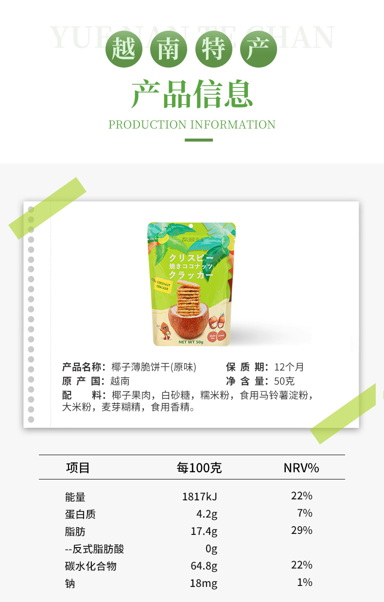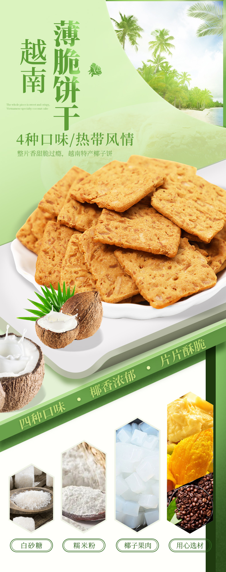 越南进口MY PHUONG椰子薄脆饼干(原味、咖啡味、芒果味、榴莲味混装)50g*4
