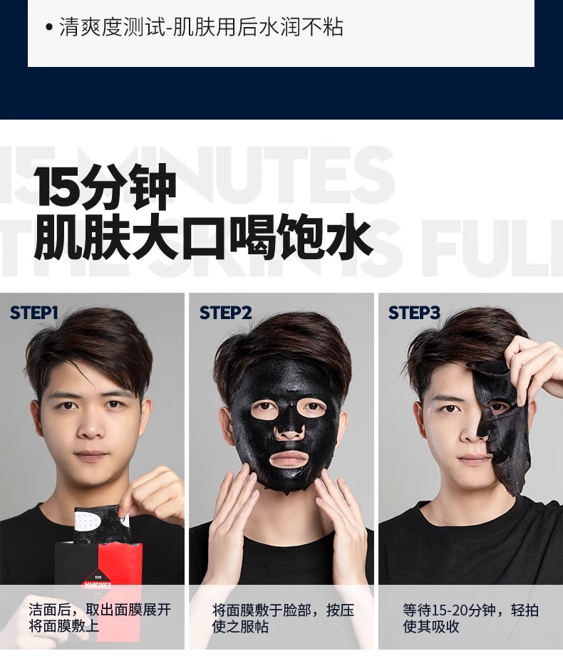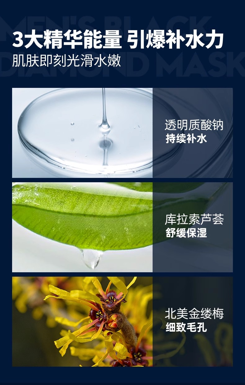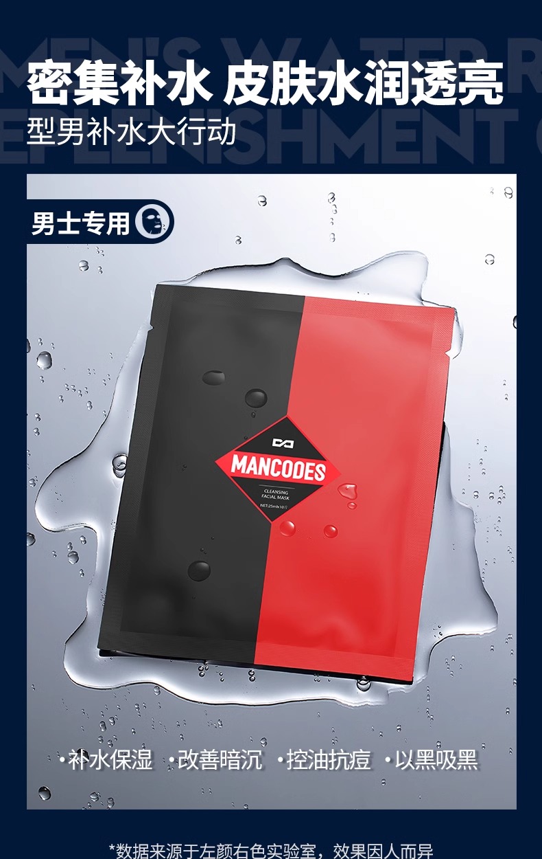 【自营】左颜右色 男士面膜黑钻竹萃净澈补水保湿去黑提亮肤色免洗面膜25ml*10片