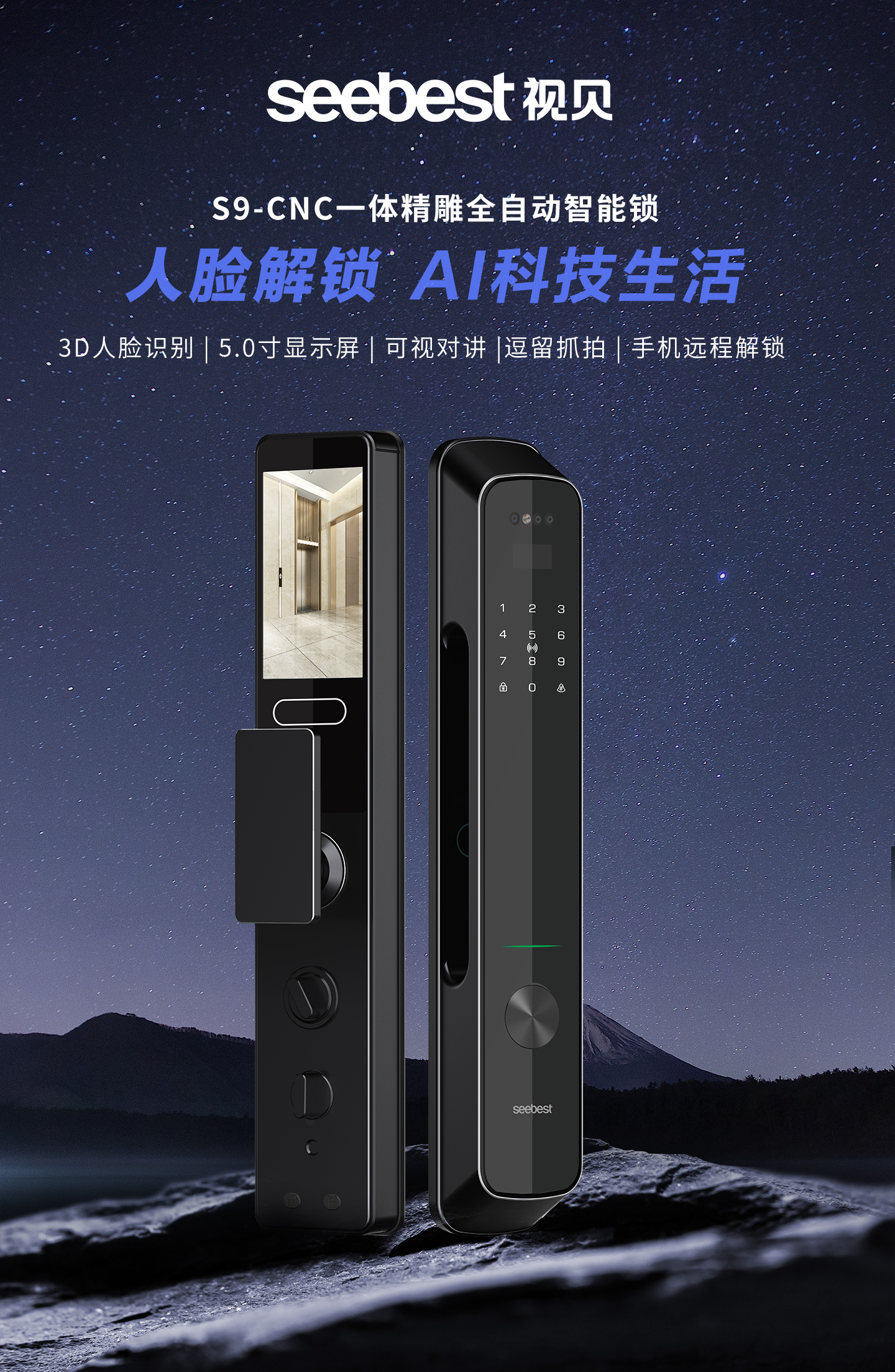 自动人脸识别智能锁S9