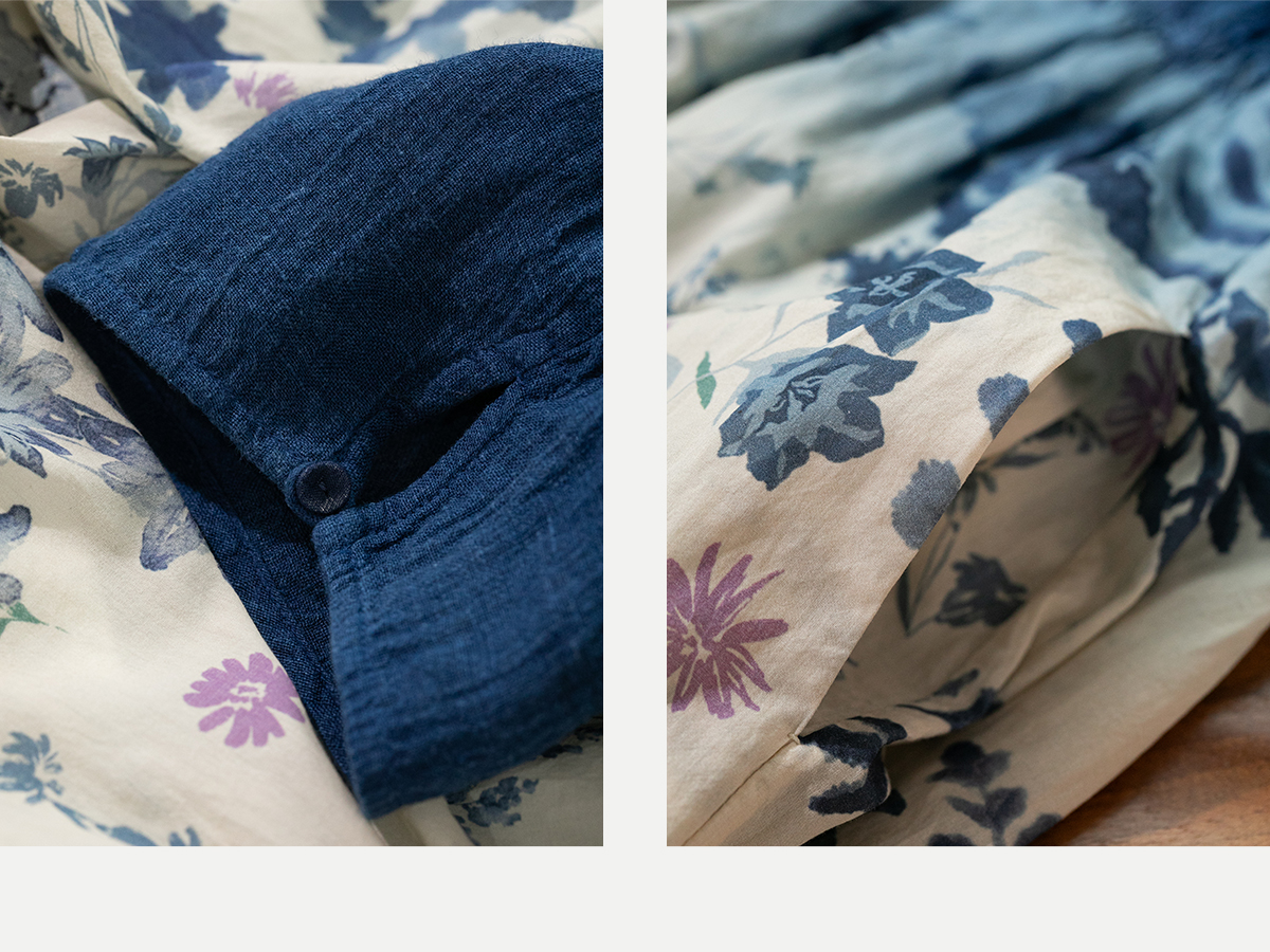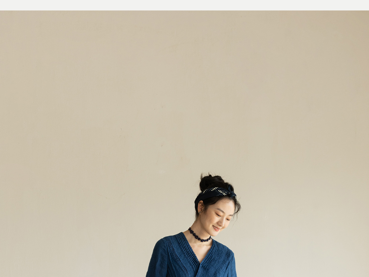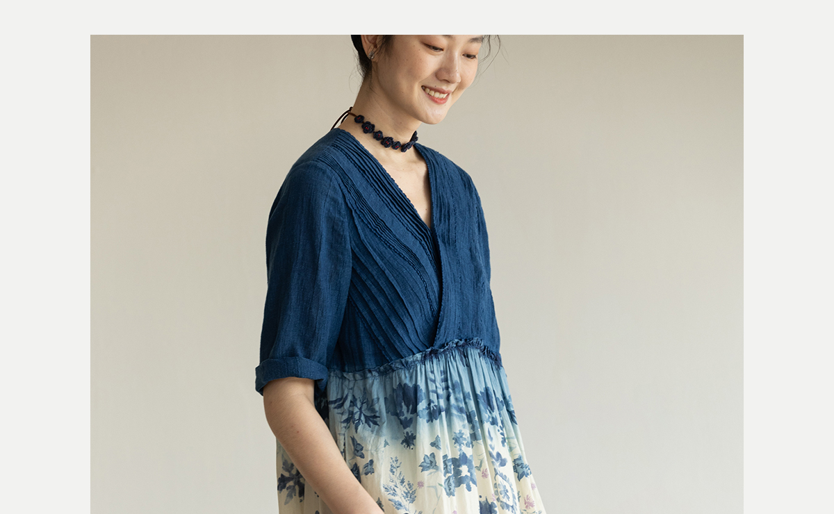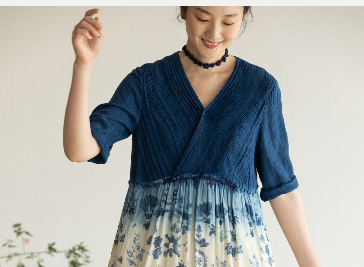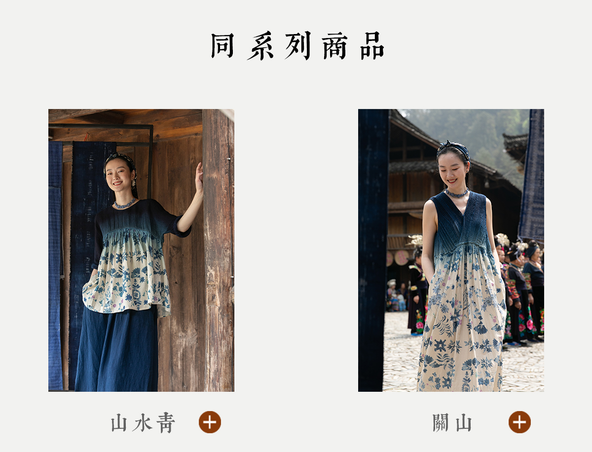 牧衣游原创 吊染蓝染印花亚麻连衣裙打条渐变质朴文艺长裙 秘境