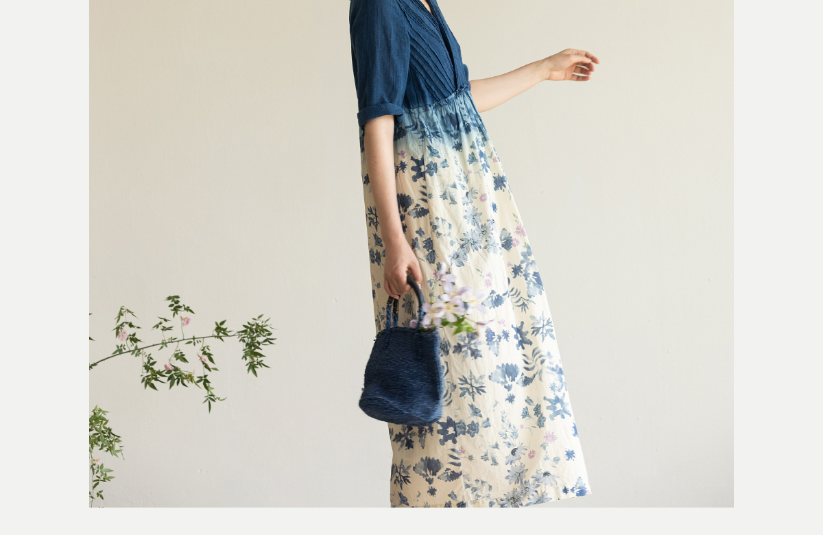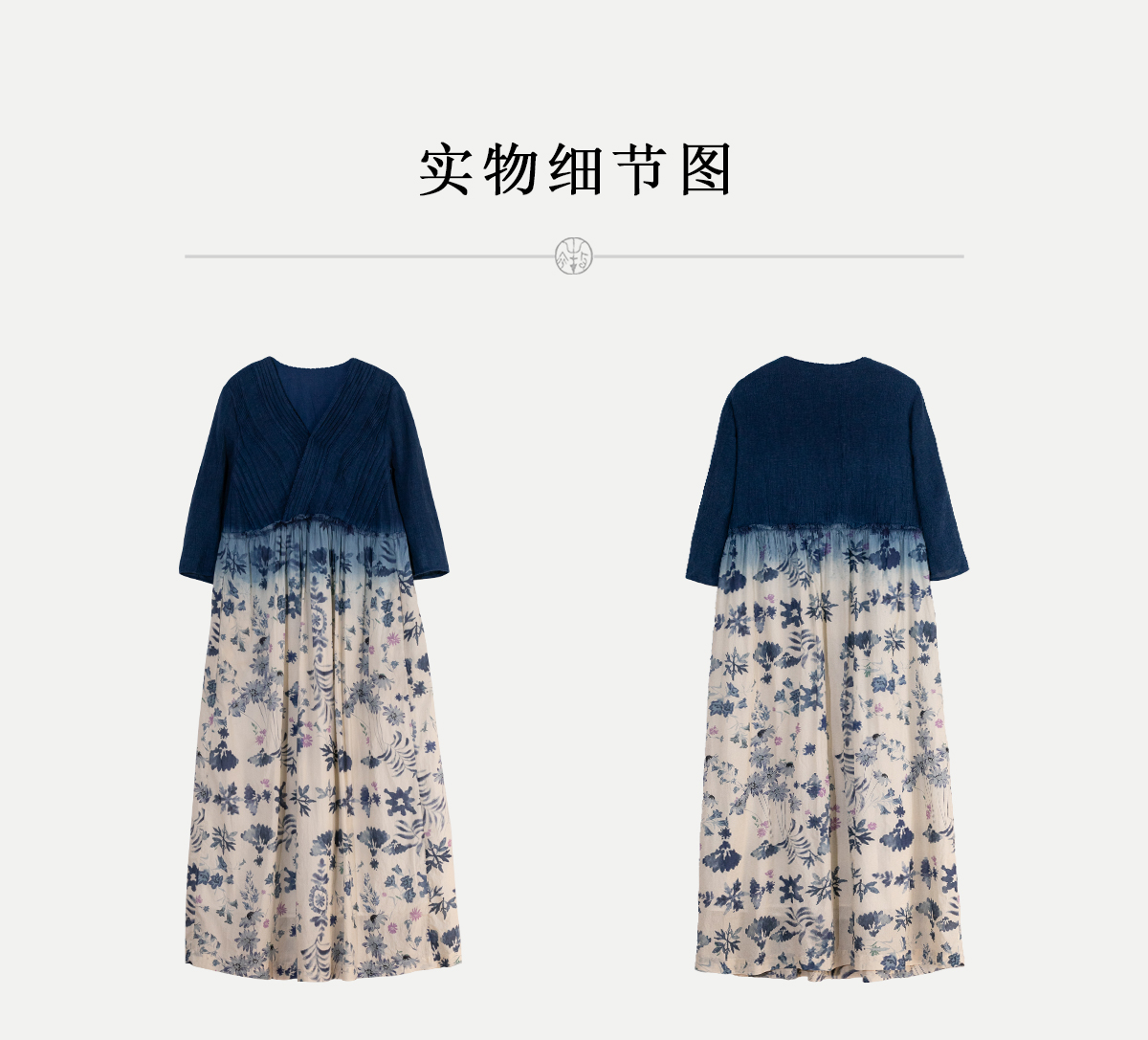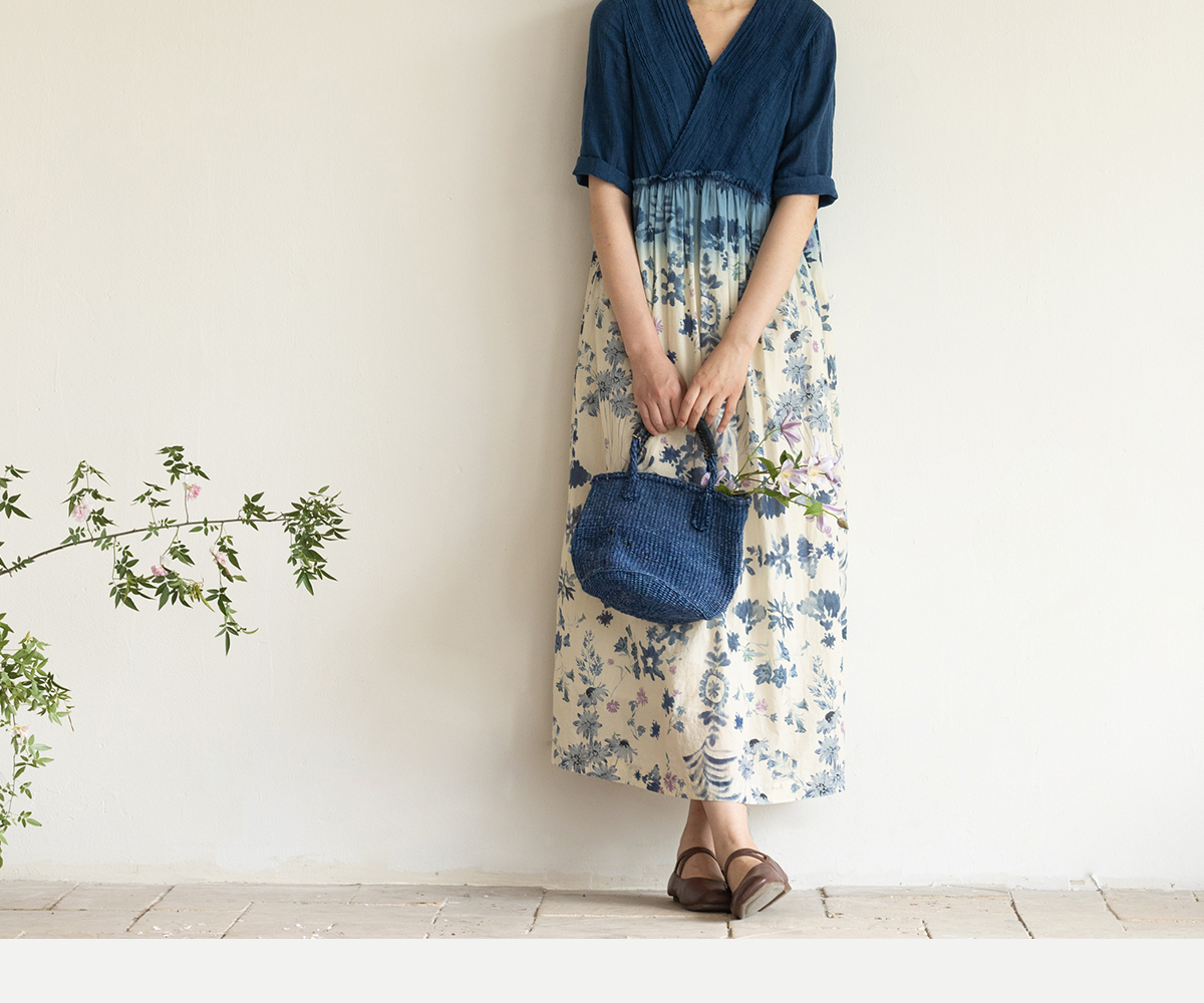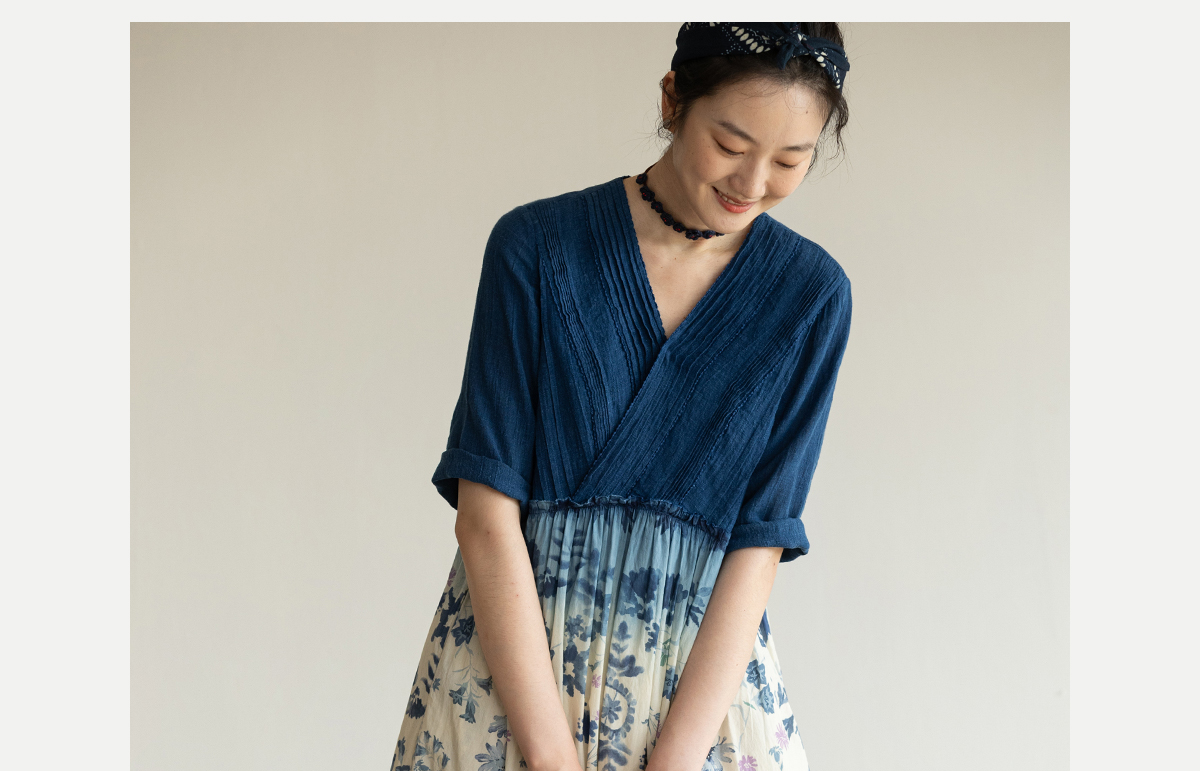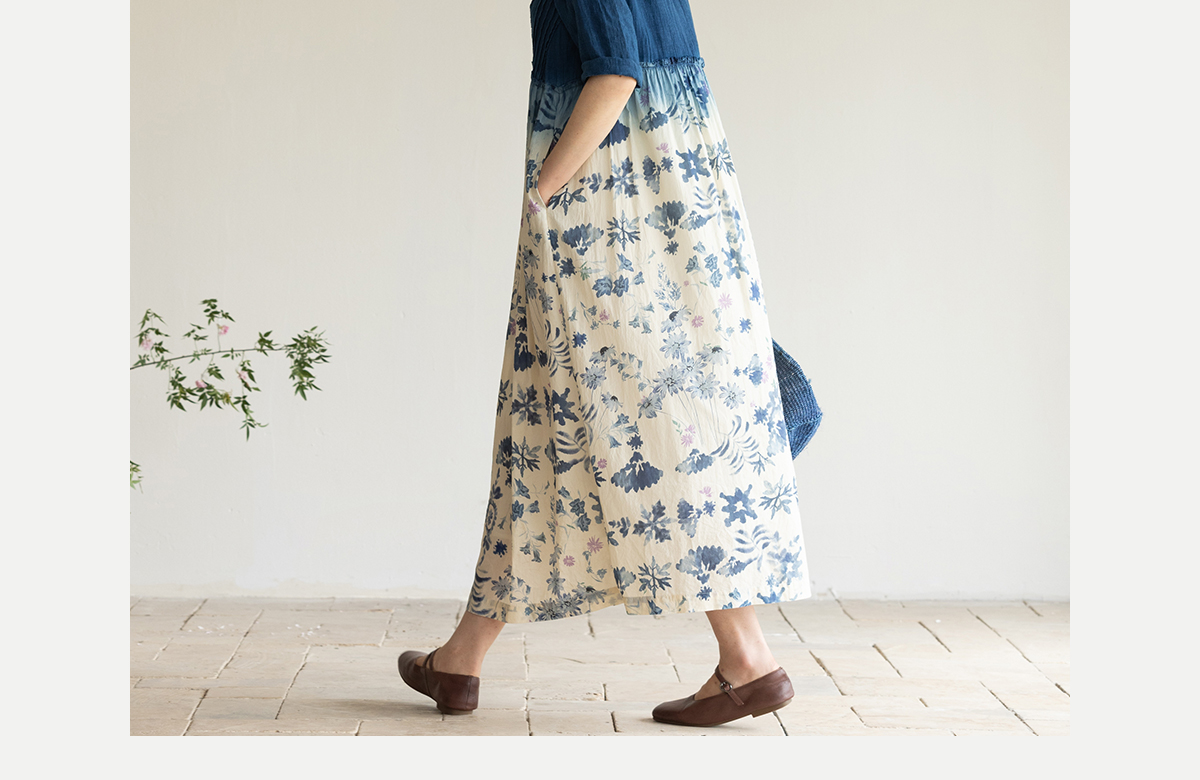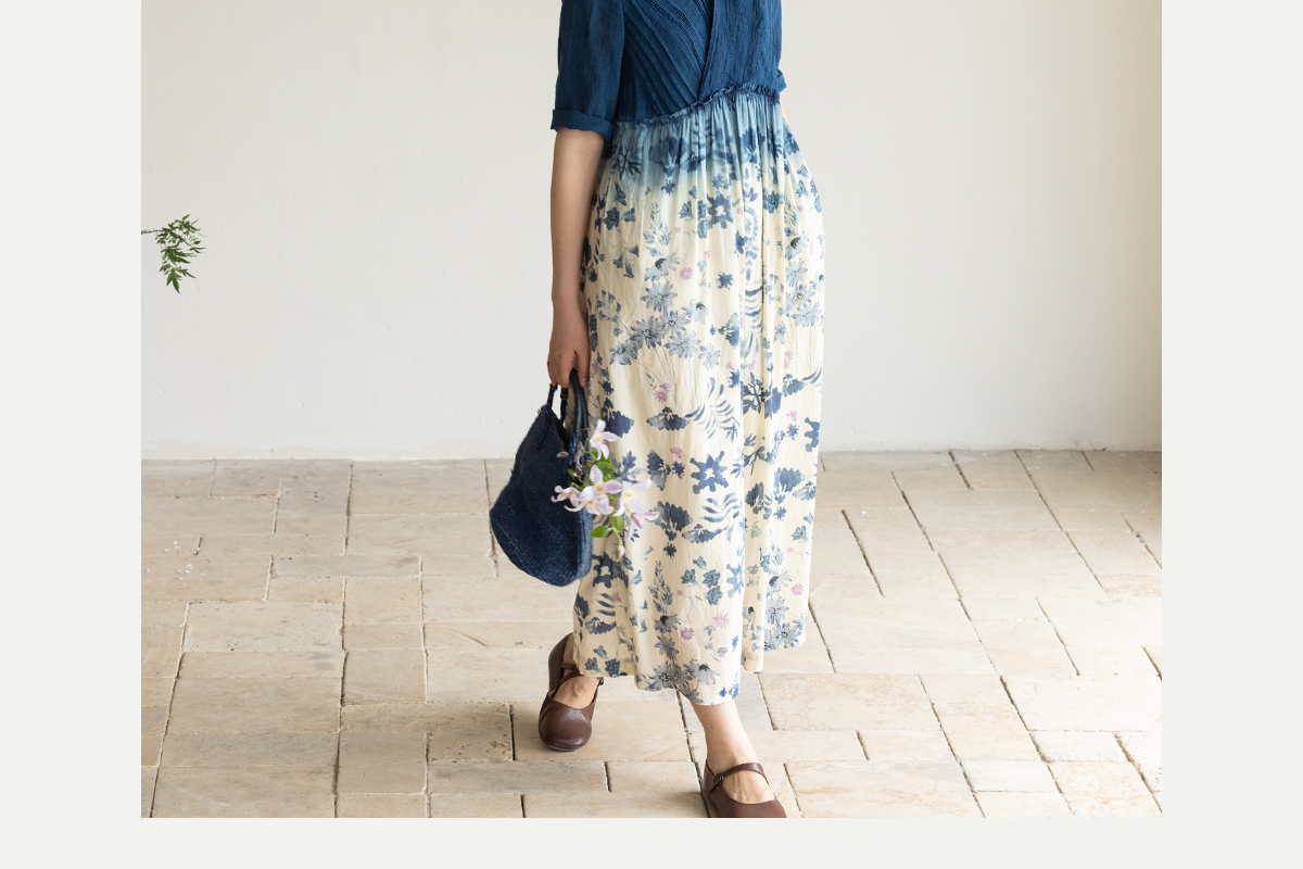 牧衣游原创 吊染蓝染印花亚麻连衣裙打条渐变质朴文艺长裙 秘境