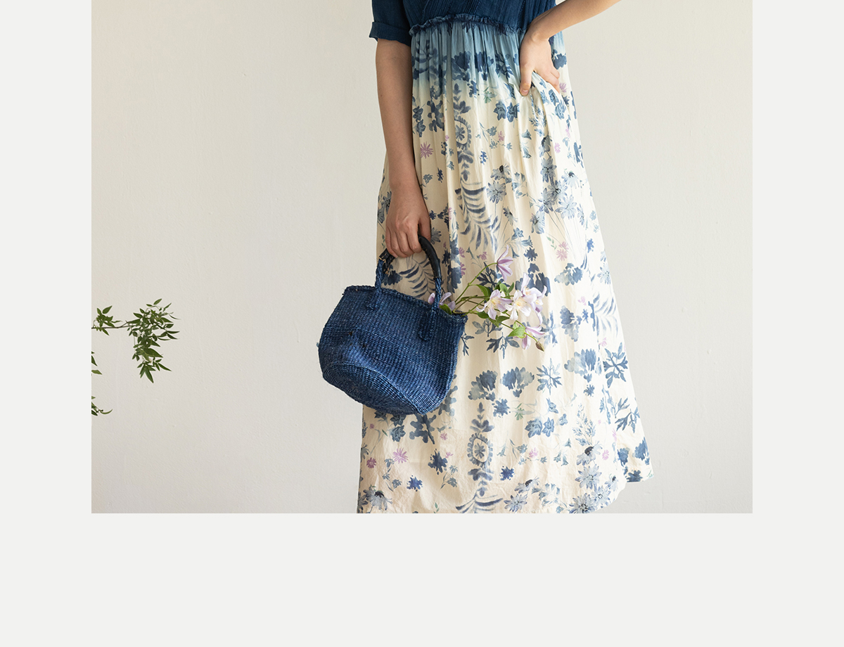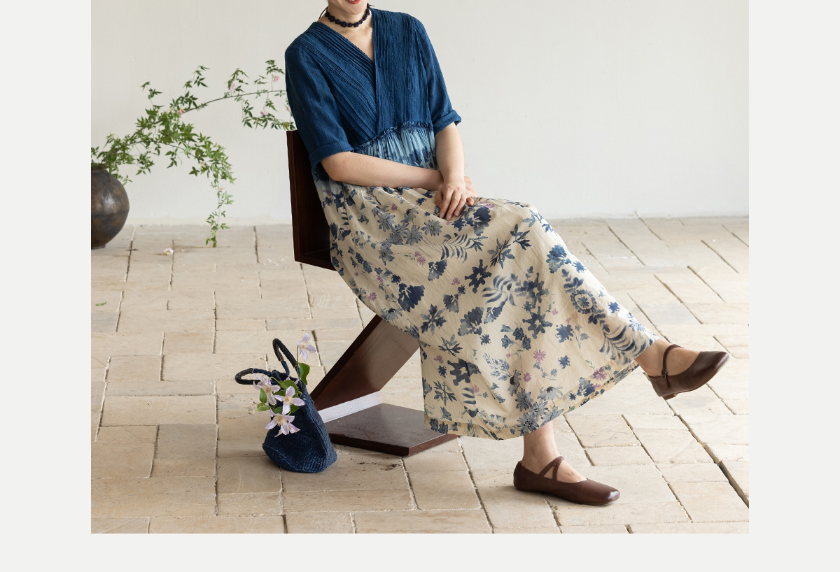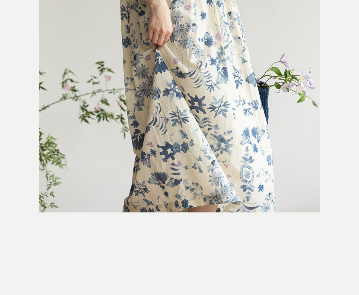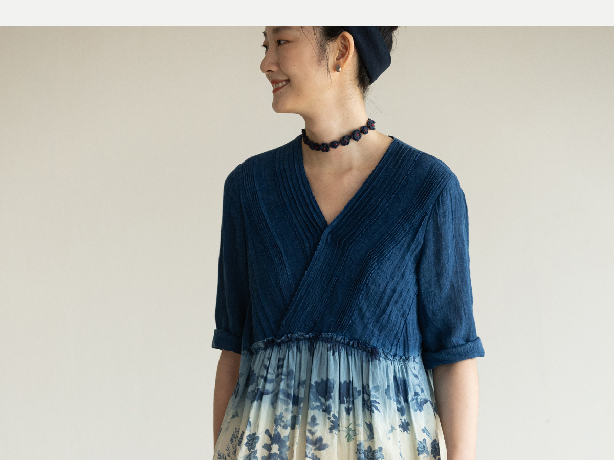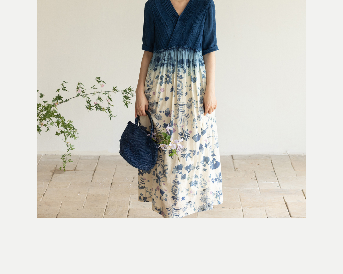 牧衣游原创 吊染蓝染印花亚麻连衣裙打条渐变质朴文艺长裙 秘境