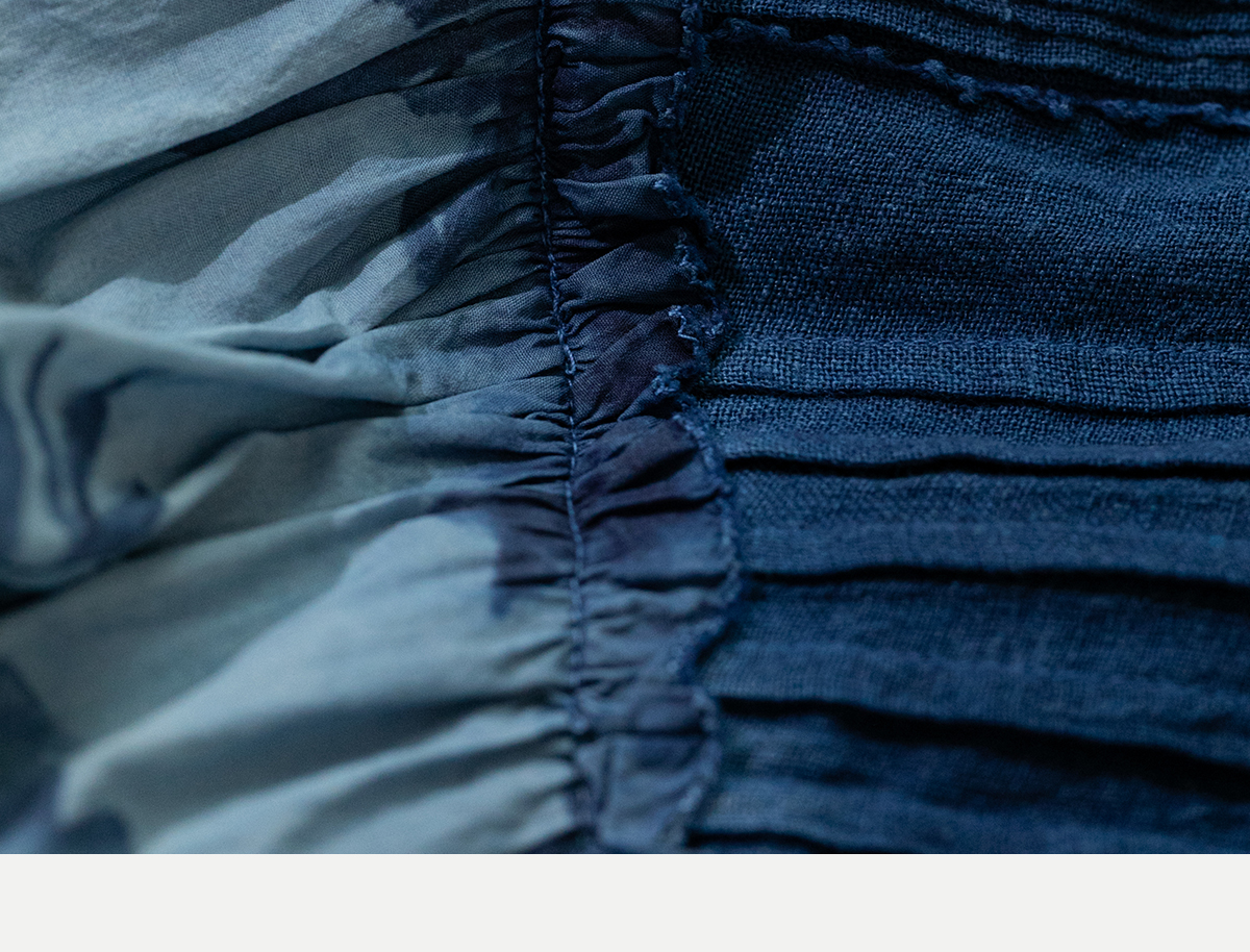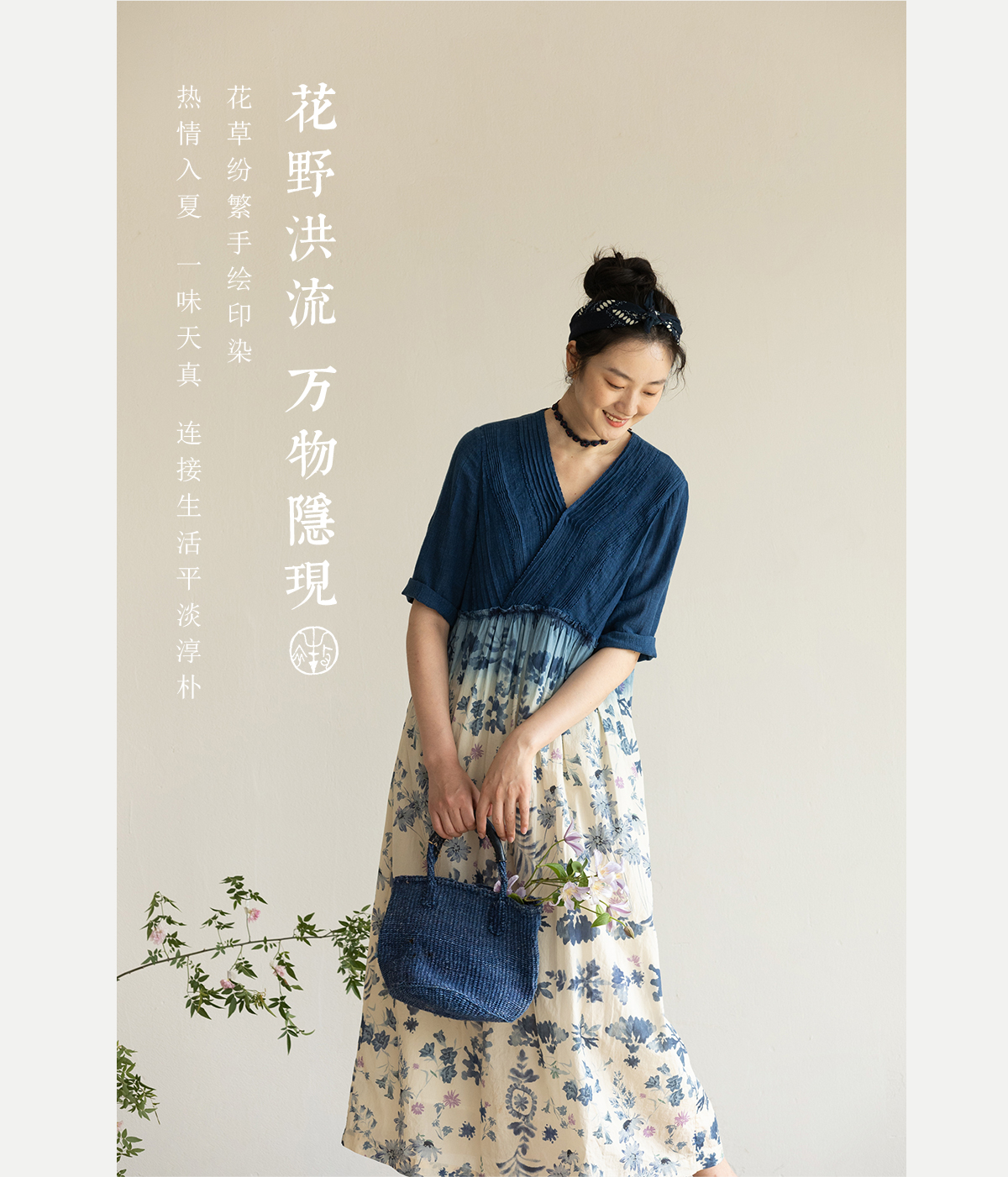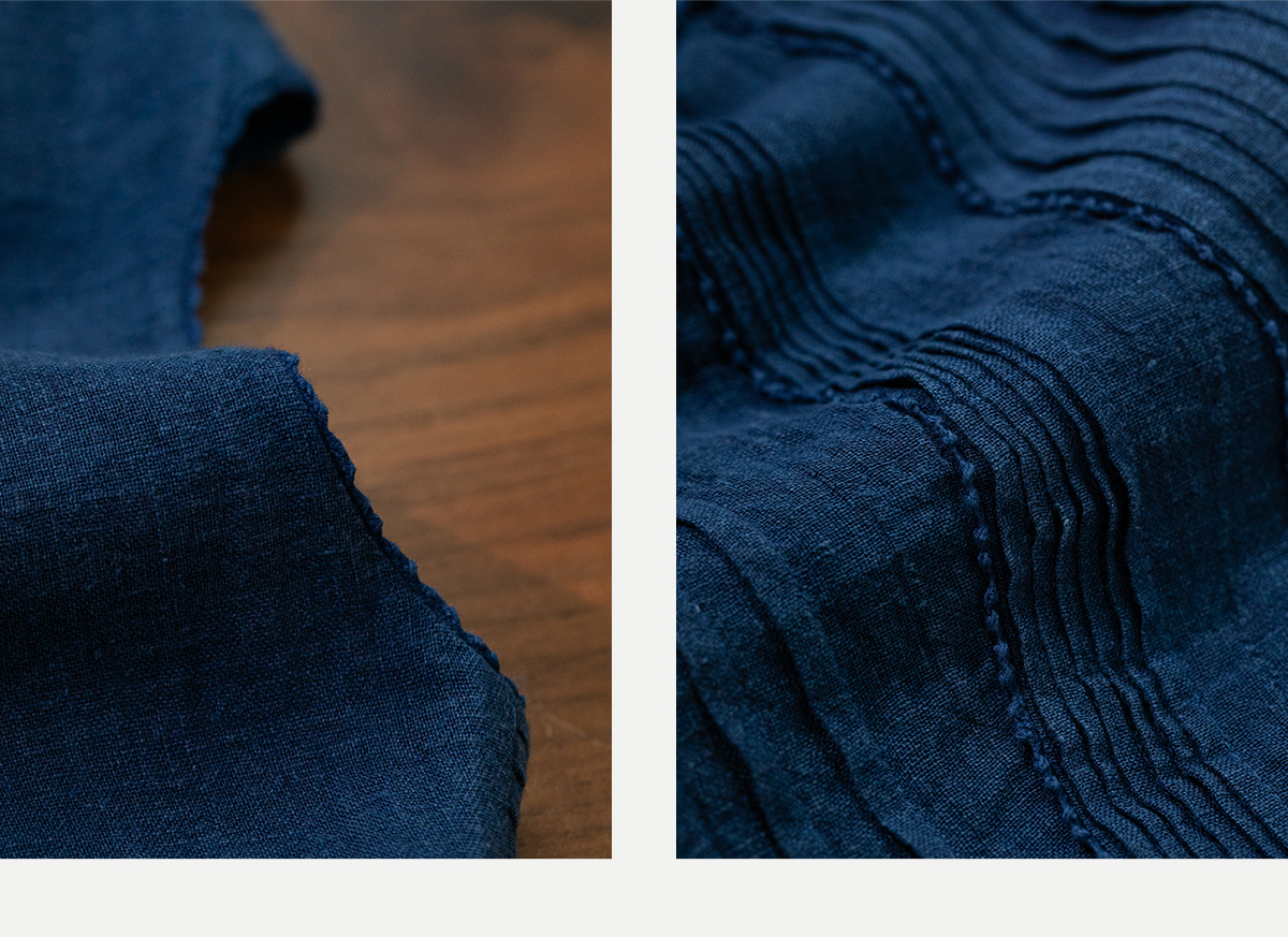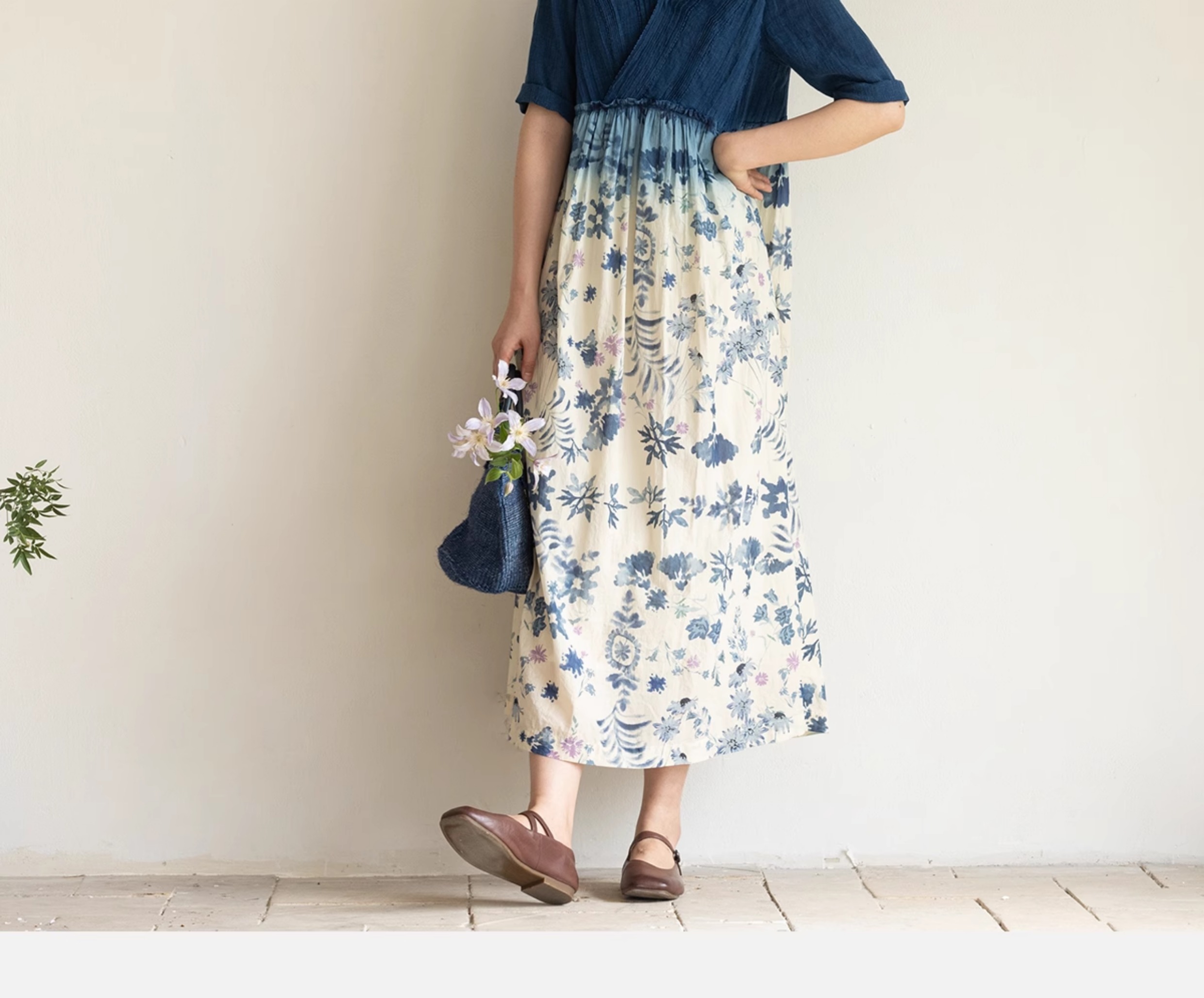 牧衣游原创 吊染蓝染印花亚麻连衣裙打条渐变质朴文艺长裙 秘境