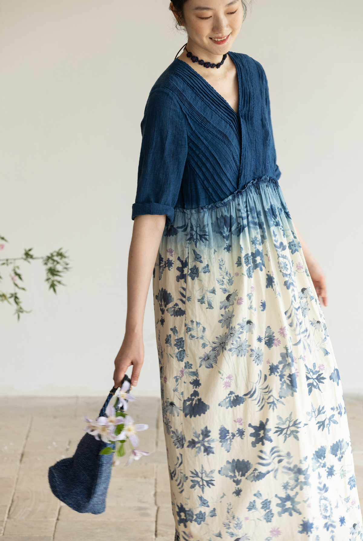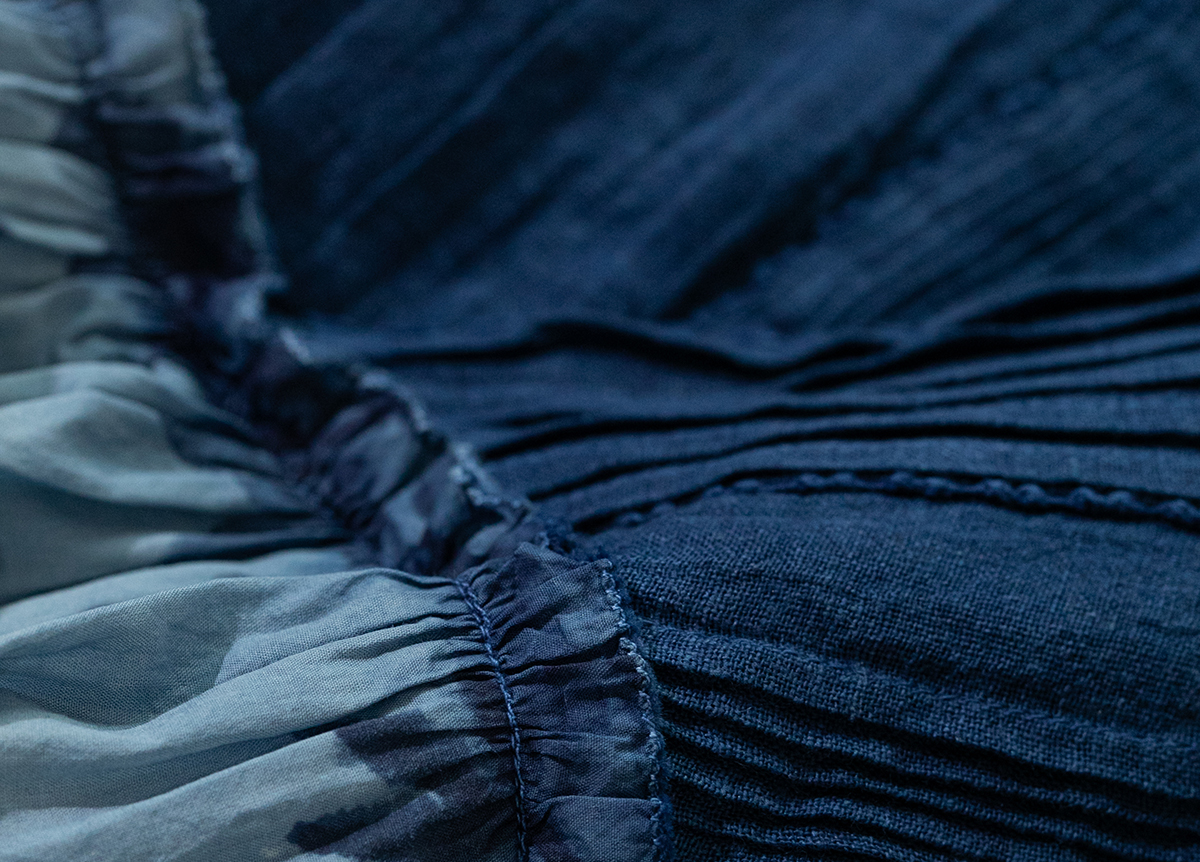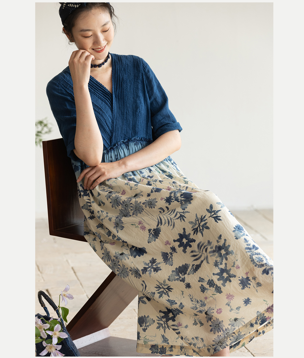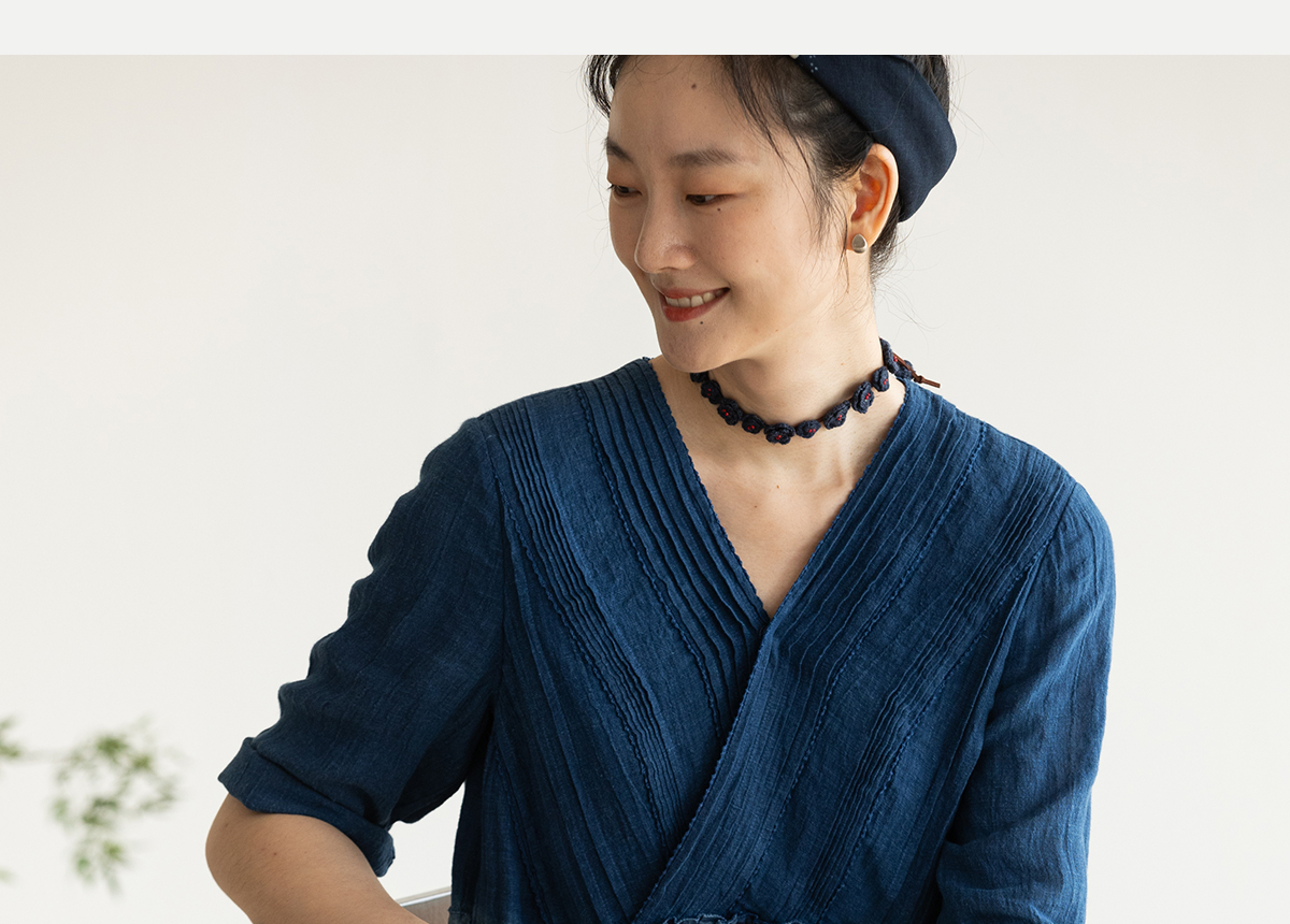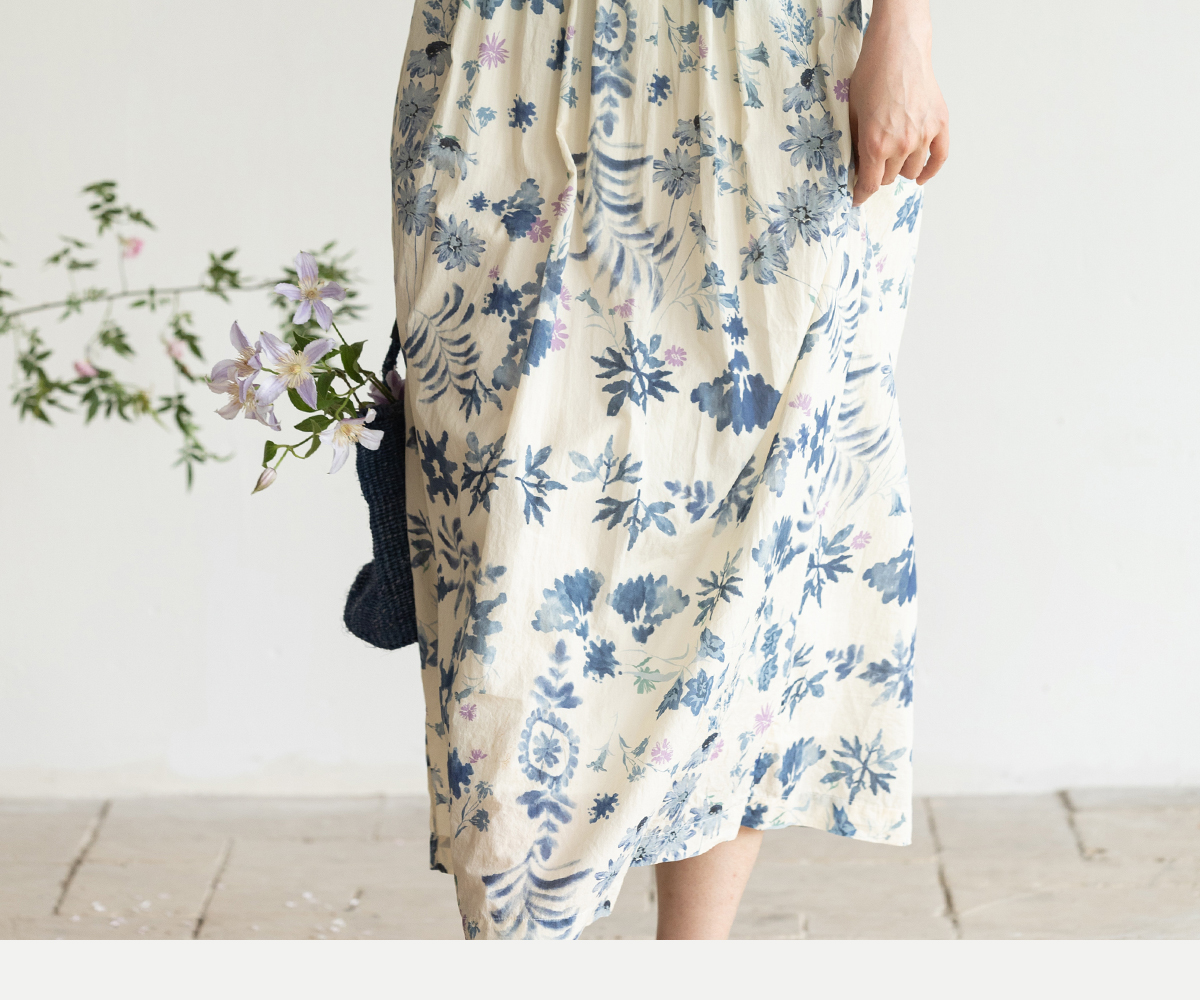 牧衣游原创 吊染蓝染印花亚麻连衣裙打条渐变质朴文艺长裙 秘境