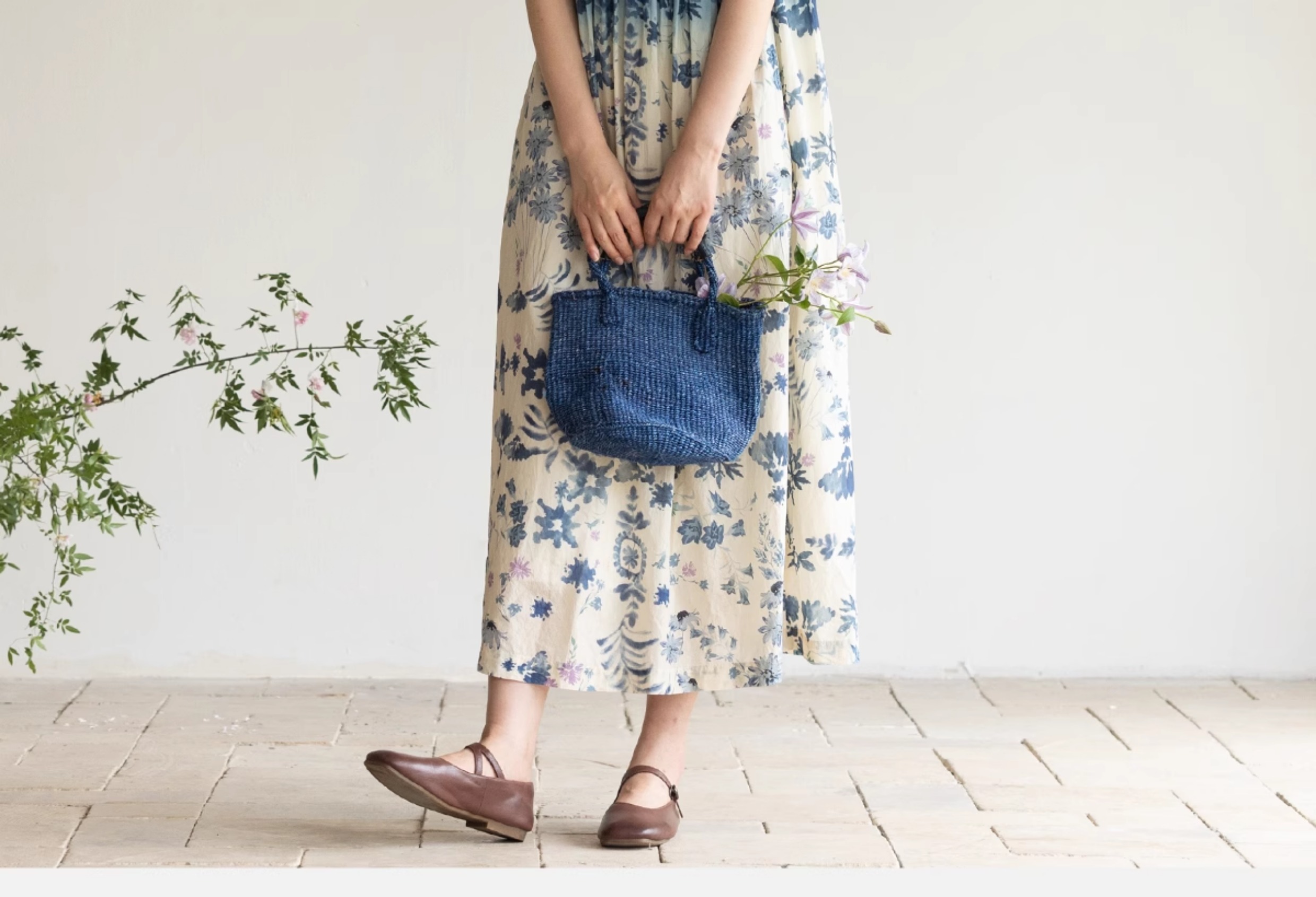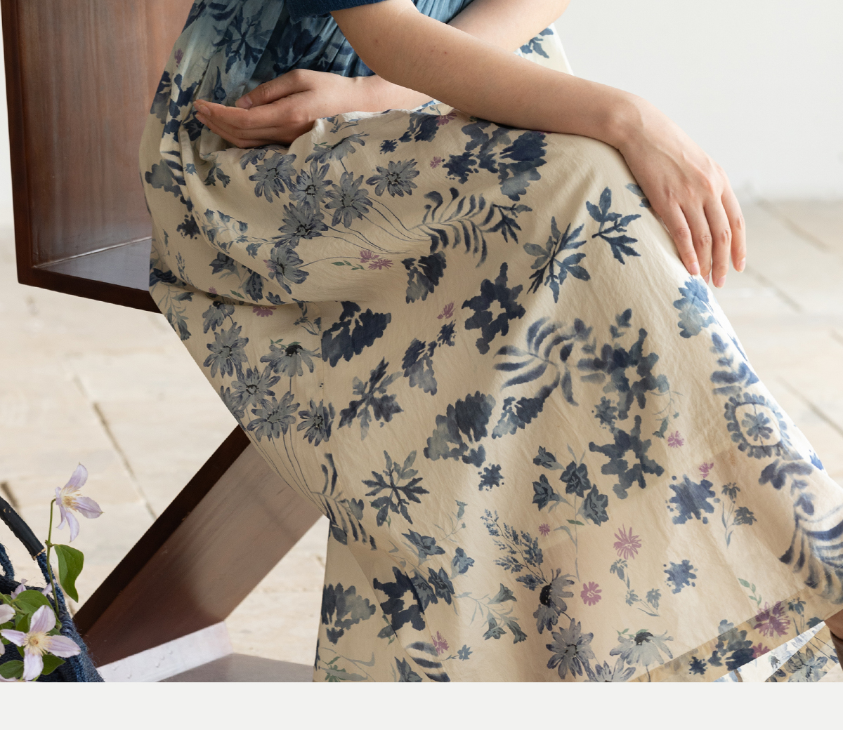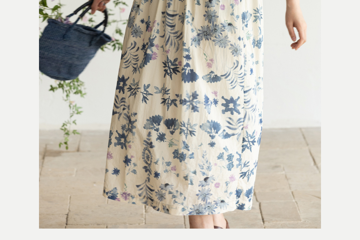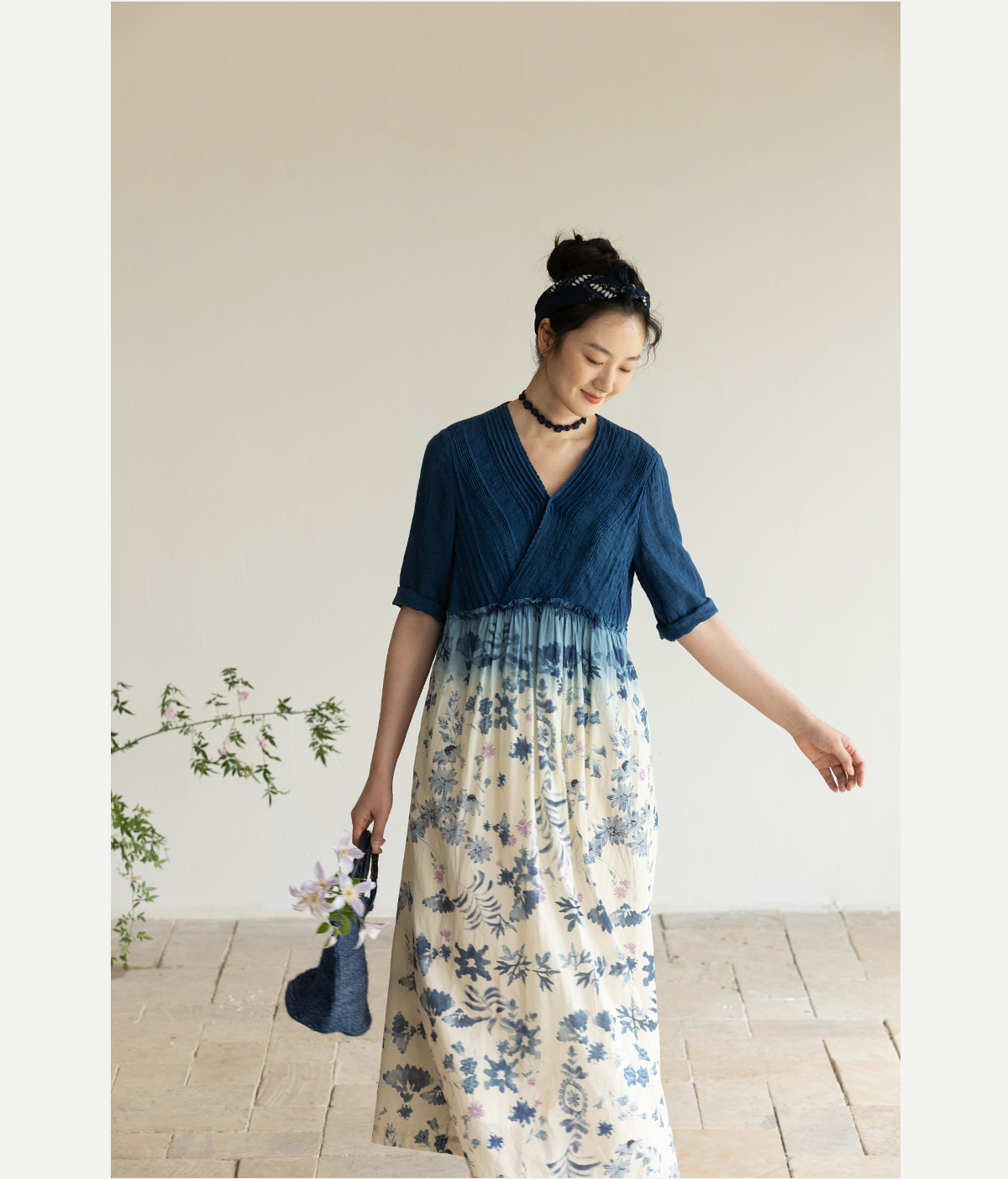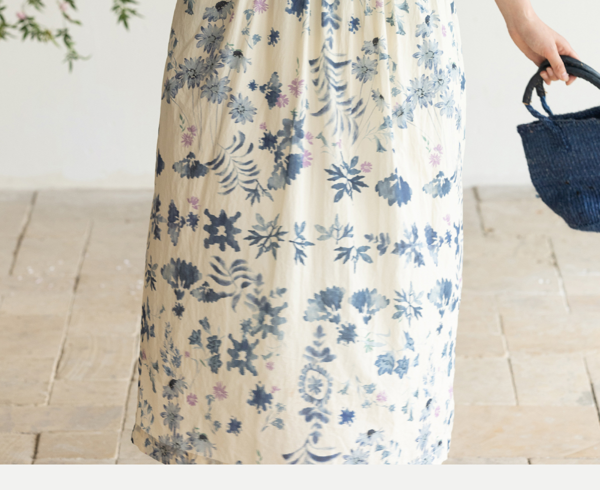 牧衣游原创 吊染蓝染印花亚麻连衣裙打条渐变质朴文艺长裙 秘境