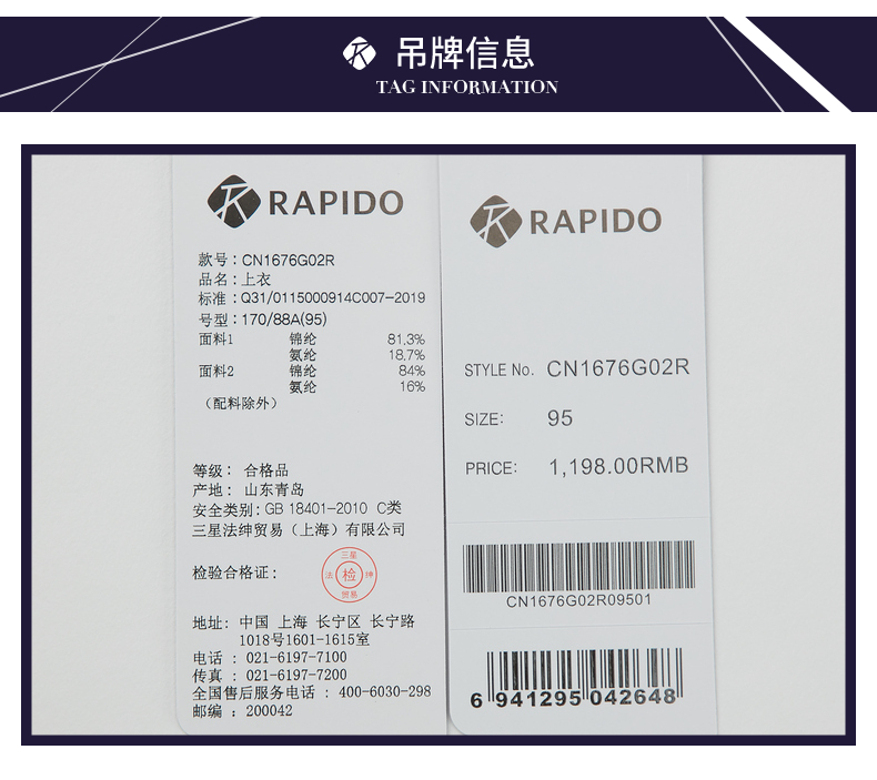 RAPIDO雳霹道2021春秋季男士撞色领口修身弹性休闲立领外套CN1676G02R