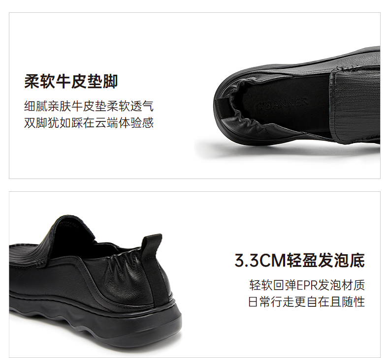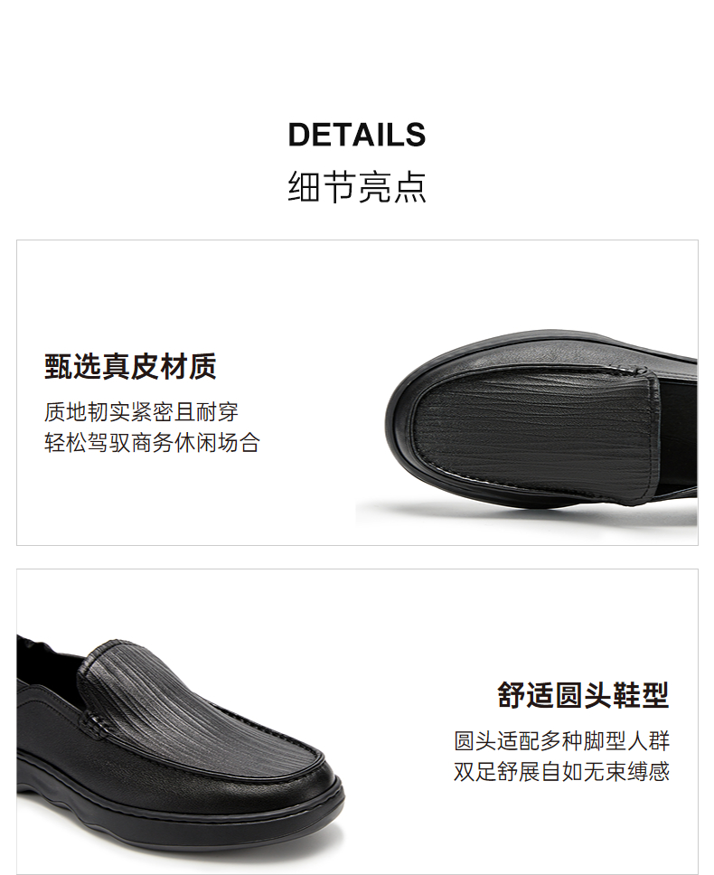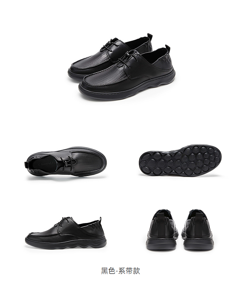 千百度男鞋黑色休闲皮鞋厚底轻便男士一脚蹬两穿皮鞋A25162903