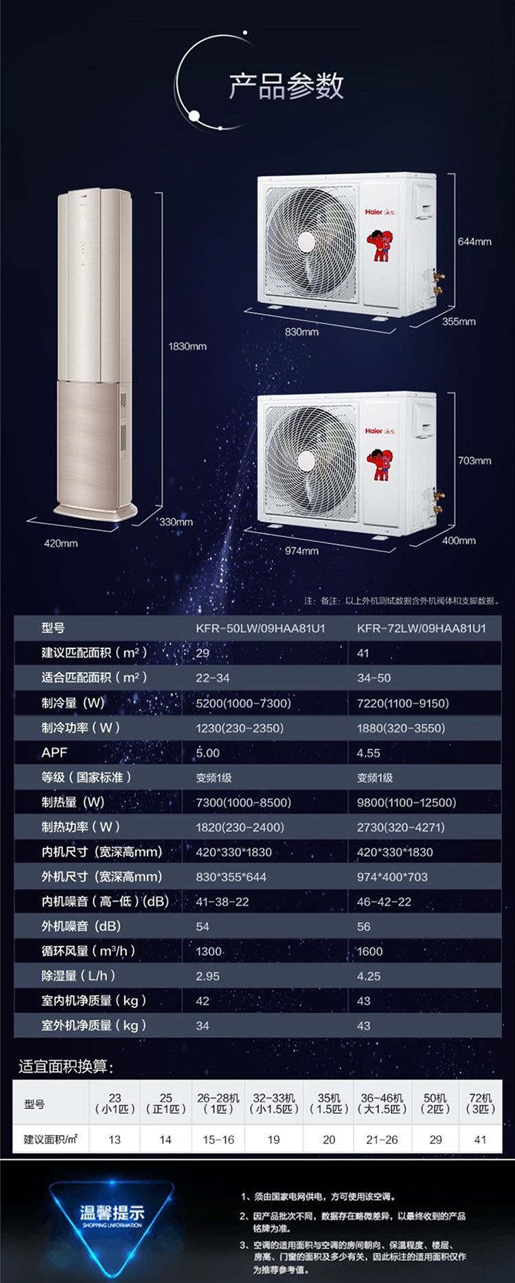 海尔新一级变频 2匹客厅立式智能空调高端柜机 洗空气 风随人动 离子除菌 2匹KFR-50LW/09HAA81U1