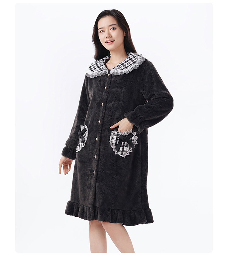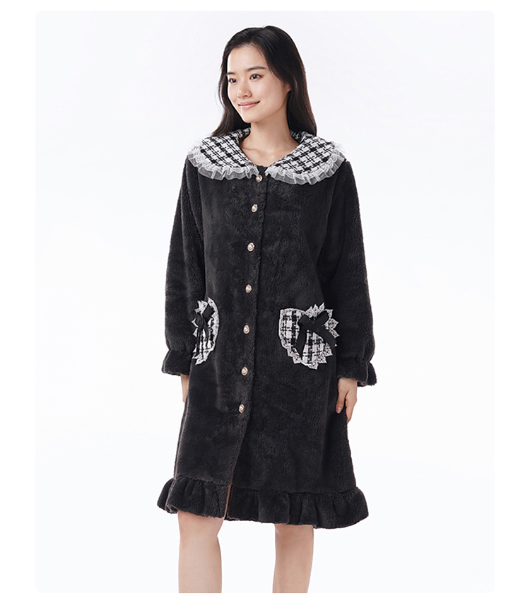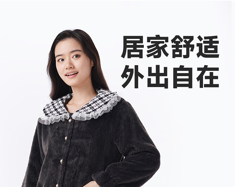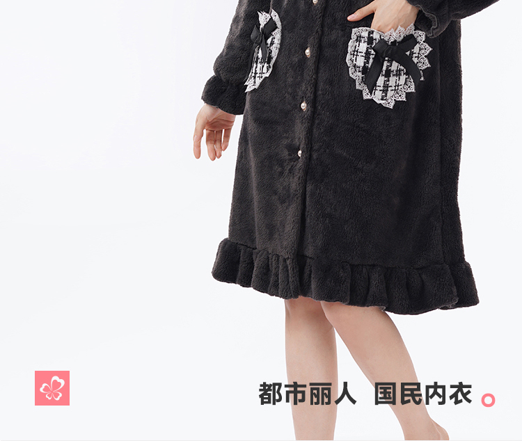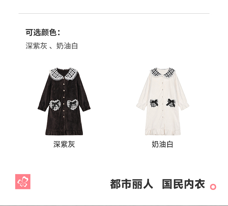 都市丽人女士睡衣女装雪花绒睡衣女士家居服法兰绒单件袍LHH7B6