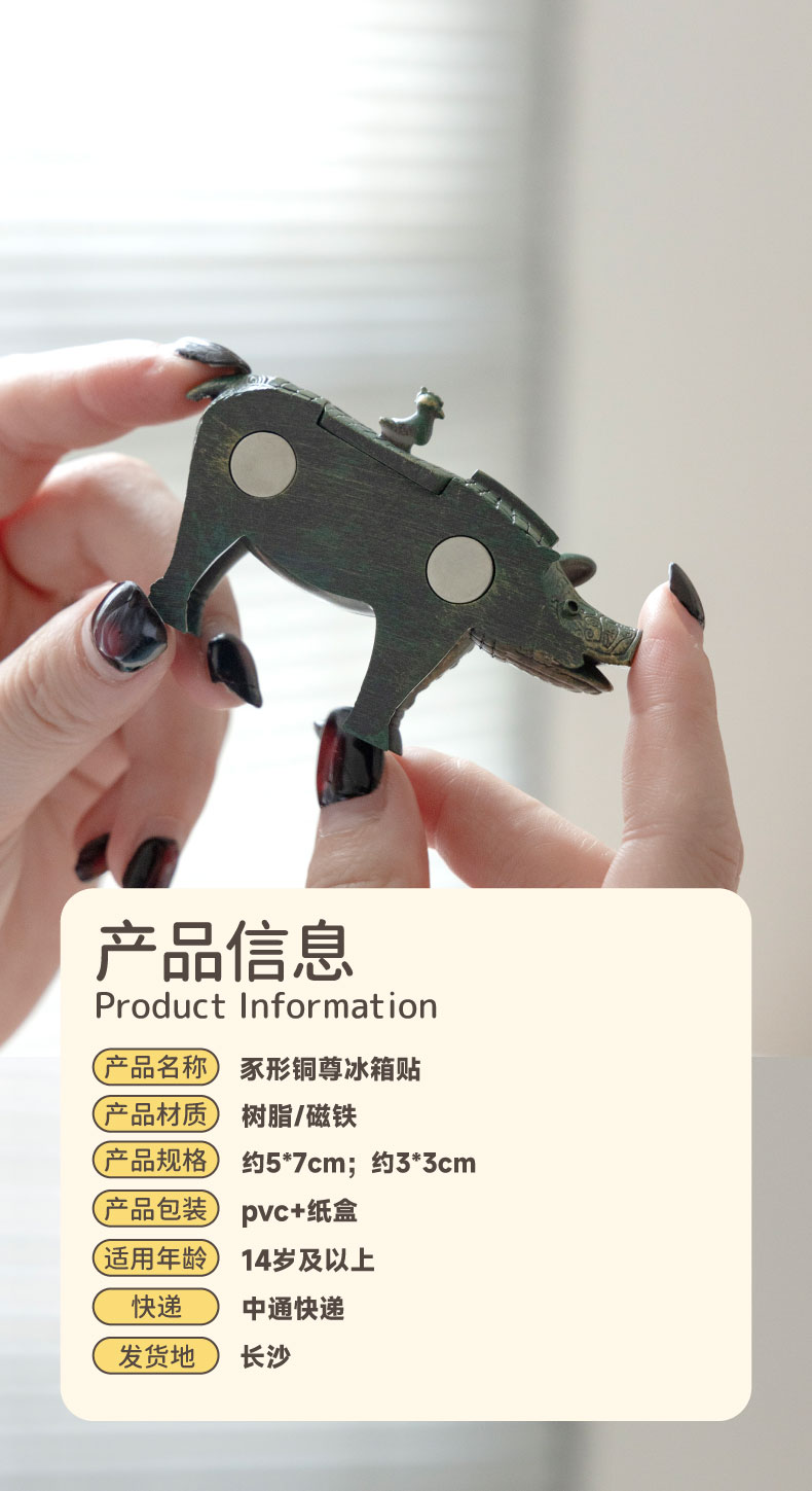 豕形铜尊冰箱贴 文创立体磁吸冰箱贴国风创意纪念品