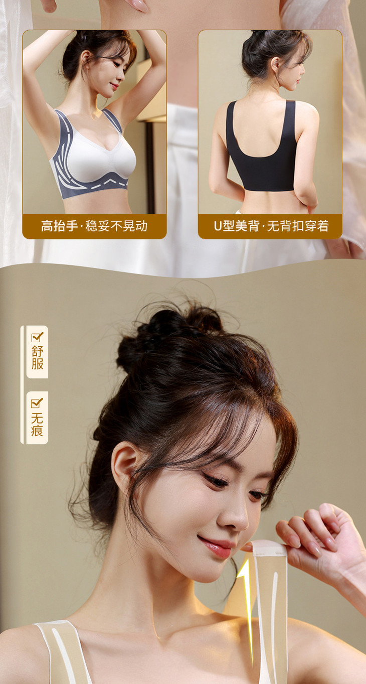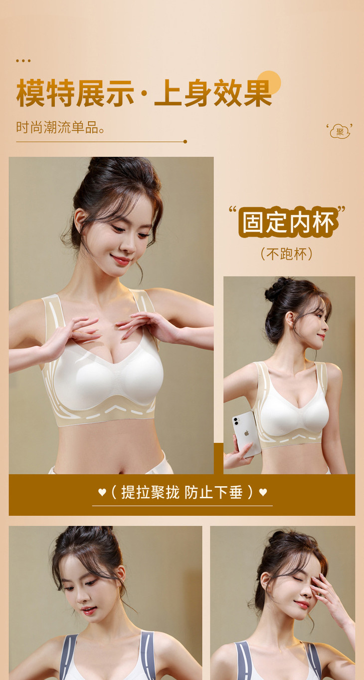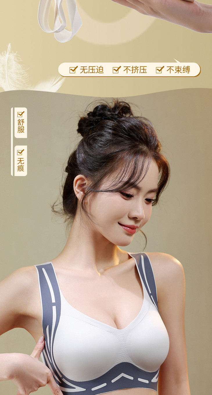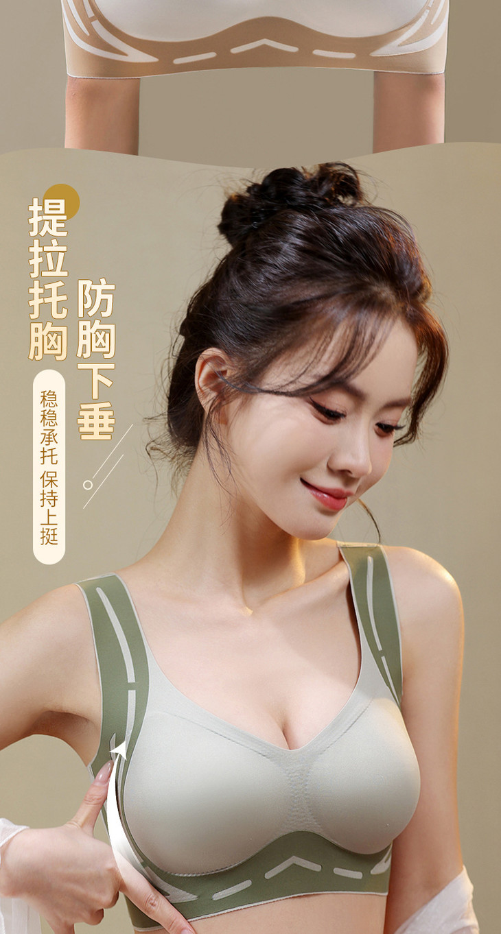美背提拉上托无痕内衣女固定杯收副乳防下垂聚拢背心式文胸女