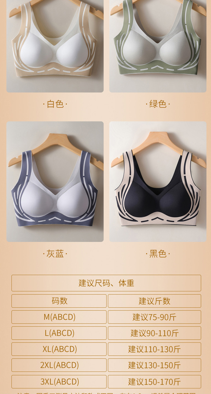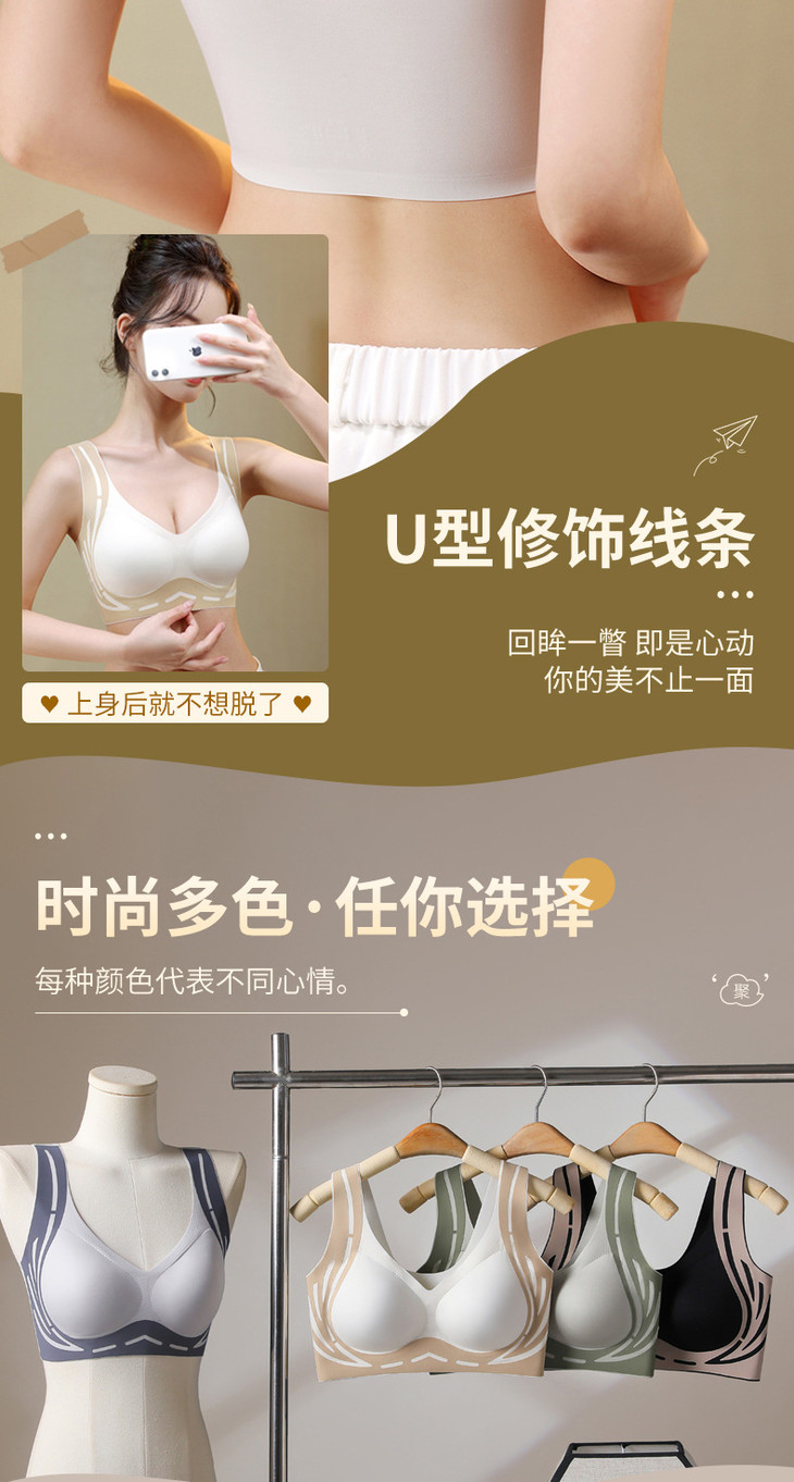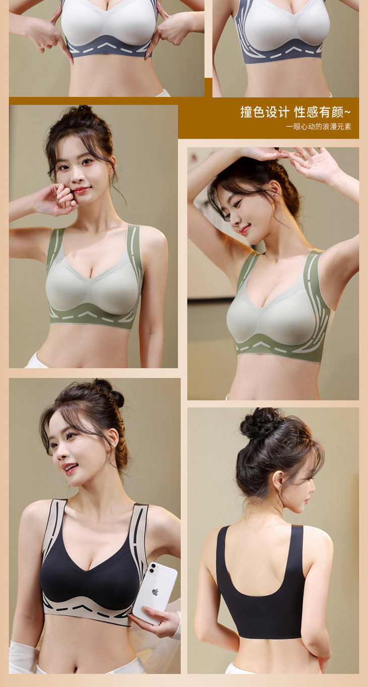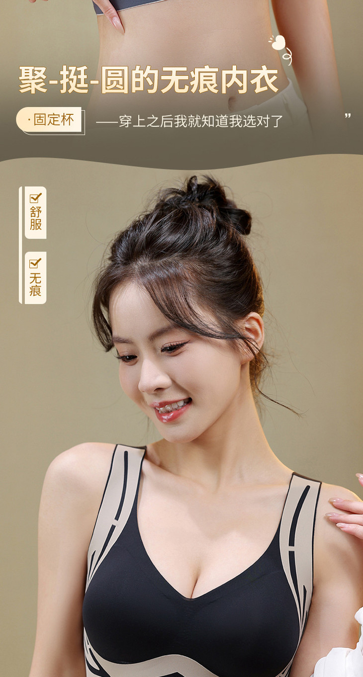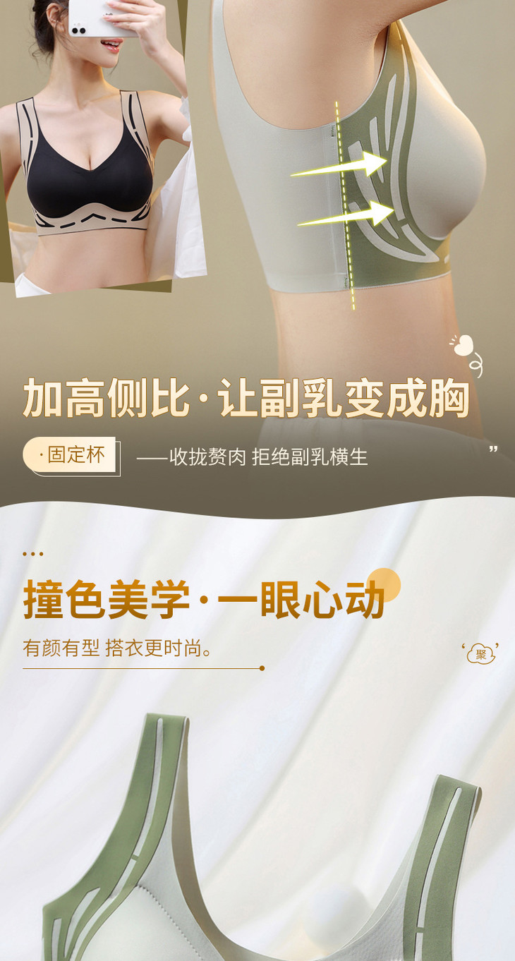 美背提拉上托无痕内衣女固定杯收副乳防下垂聚拢背心式文胸女