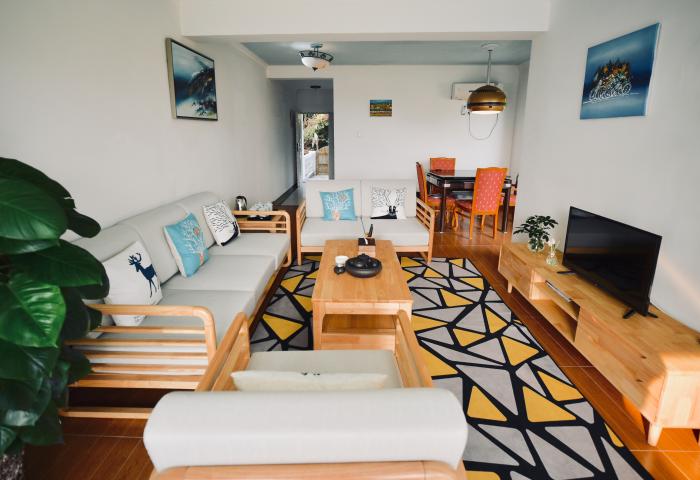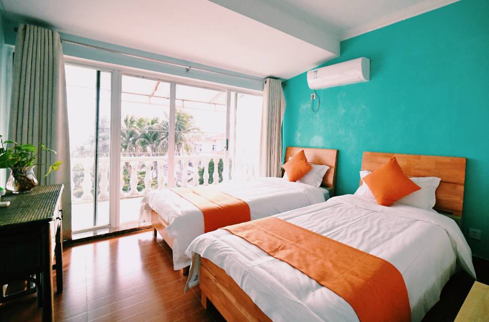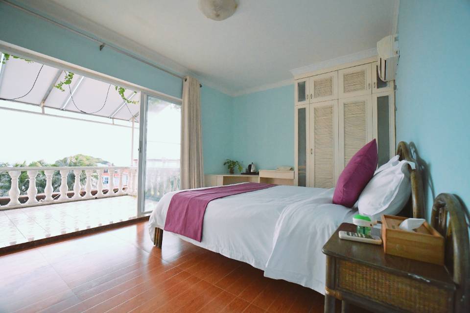 房型介绍:海景四房一厅联排别墅、配备三间为两张1.1米双床房、一间为1.5米大床房,空调、电视、一次洗洗漱用品、吹风筒、四个洗手间、自动麻将机,一栋别墅限住成人不能超过8位,小孩最多8岁且不能超过4位。