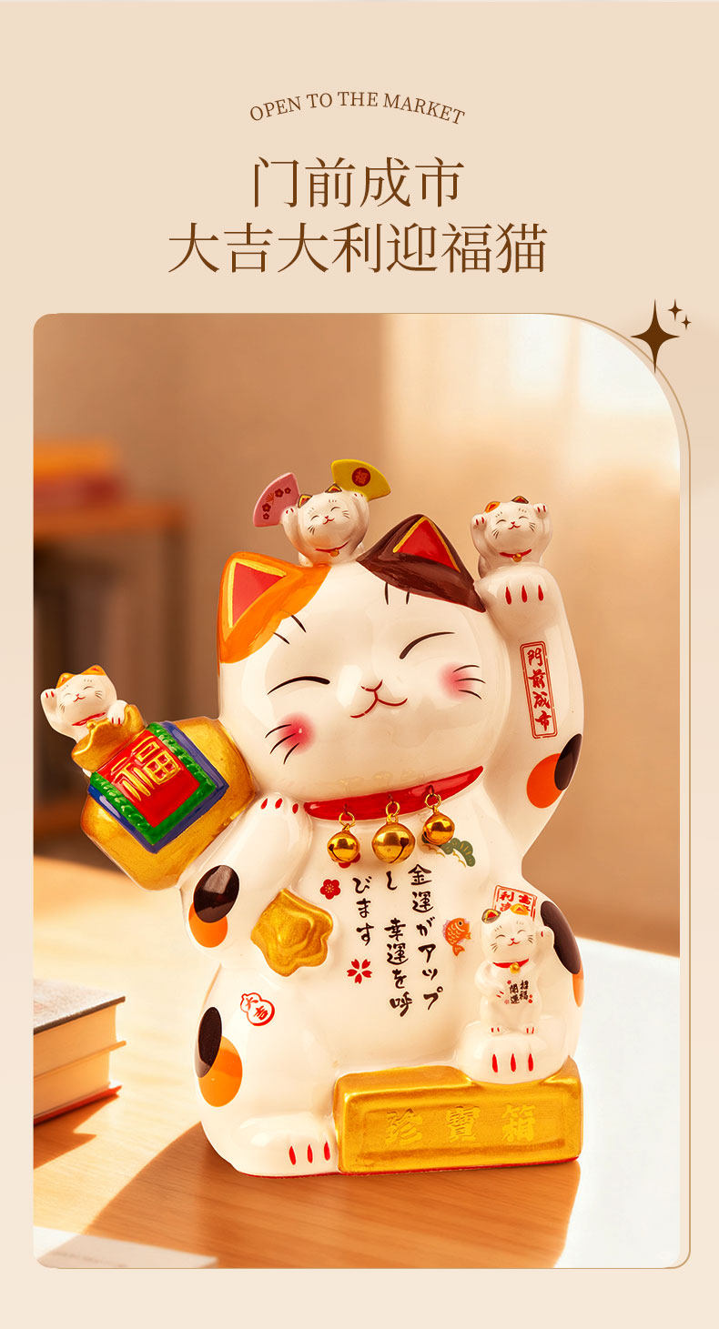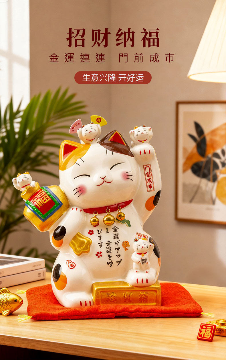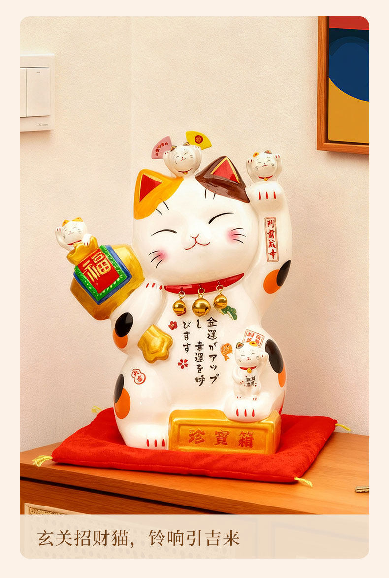 【4月优享】喵侍开运宝盒招财猫摆件大小号店铺收银台前台家居客厅发财猫礼物喵侍开运宝盒招财猫(小号)