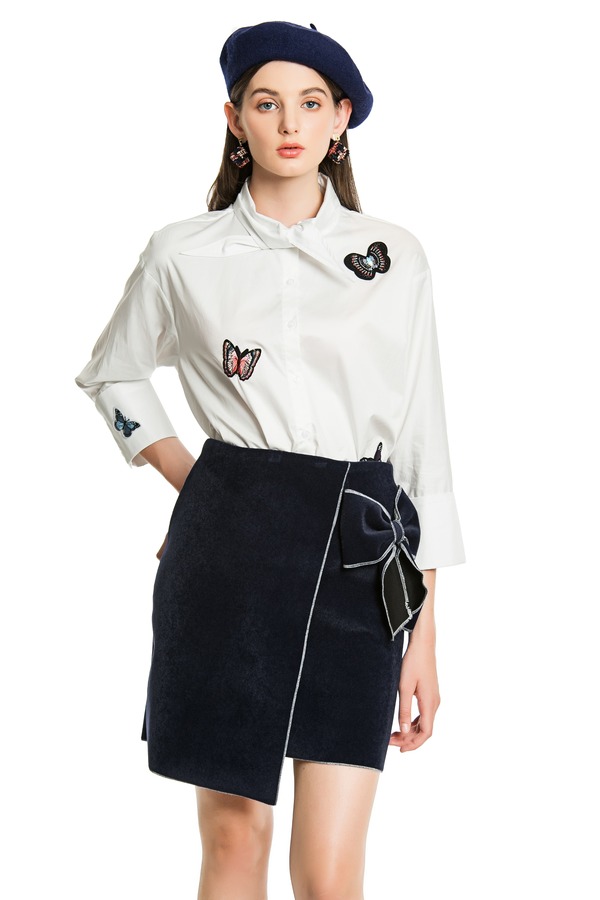 SUMMER & SAGE 蝴蝶刺绣系带上衣 4513