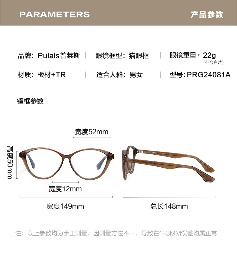 普莱斯光学镜框PRG24081A TR+板材镜框 复古猫眼 男女同款 双色可选