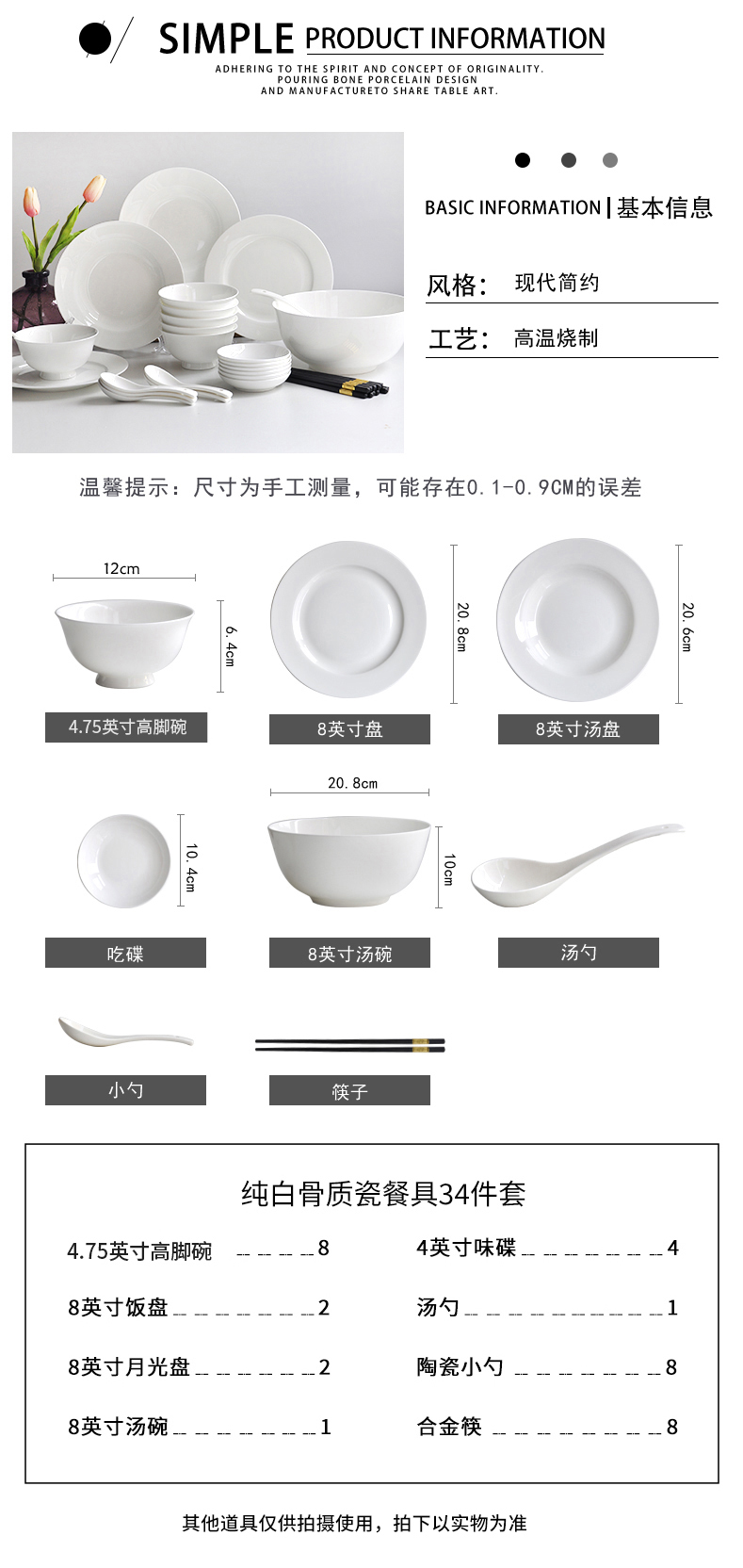 好来宝HLB-MY04 纯白骨瓷34件套套装