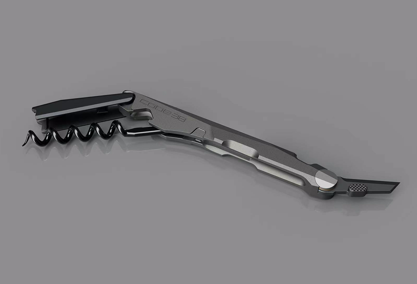设计说明:钛金款式X系列在设计和⽣产能⼒⽅⾯都达到了极致,新款桥接开槽式杠杆⽀架由⼀块实⼼钛⾦⾮常精细地研磨⽽成,然后完成蓝⾊氧化加⼯。钛⾦⼑身通过CNC数码加⼯⼯艺铣削凹槽进⼀步减轻了机身的重量,在这种材料上加⼯凹槽算是⼀种突破。它使⽤了世界上醉好的机床、切削油和严谨的⼯艺来达到这⼀⽔平,这些⼯艺和材料通常只应⽤于航空航天和医疗领域。螺旋钻头在新的桥接开槽式杠杆⽀架折叠时也可以打开(T型开瓶),为葡萄酒服务艺术增加了另⼀层次的效率和格调。从使用上,Code 38比拉吉奥开瓶更快更丝滑。拉吉奥刚开始会有点笨笨的感觉。从设计风格上,拉吉奥有点淡淡的法式vintage风。采用高级木材、牛角等天然材料做手柄,有原生态美感。Code 38就是是简洁明了的工业风,兼具了现代感和机械感。从价格上,入门款Code 38略微贵一些,两种酒刀都有几千上万的顶级款。从可得性上,Code 38比拉吉奥难买,数量更少,以后的增值空间也更大。也有人说,年轻时喜欢Code 38,年纪大了喜欢拉吉奥。小孩子才做选择,成年人all in 。设计师的初衷是设计一把可以经久耐用,家族传承的酒刀。每把酒刀配有一个小礼盒,很多人用来送礼给喜欢葡萄酒的朋友,这可比送拉菲有意思多了。