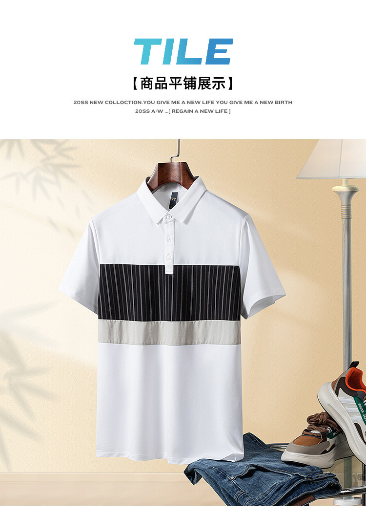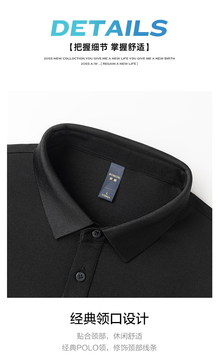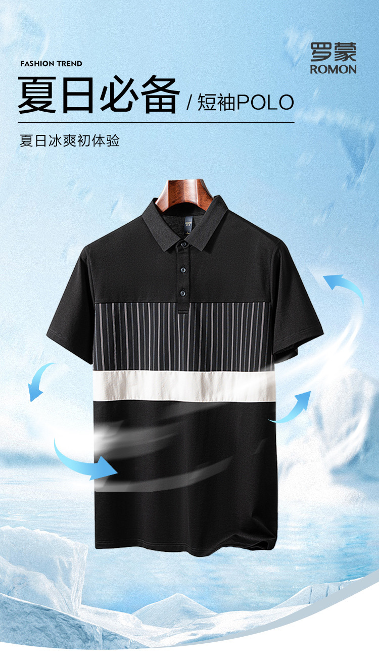 【含桑蚕丝&亚麻】罗蒙男士夏季商务休闲时尚撞色舒适男士t恤短袖polo衫
